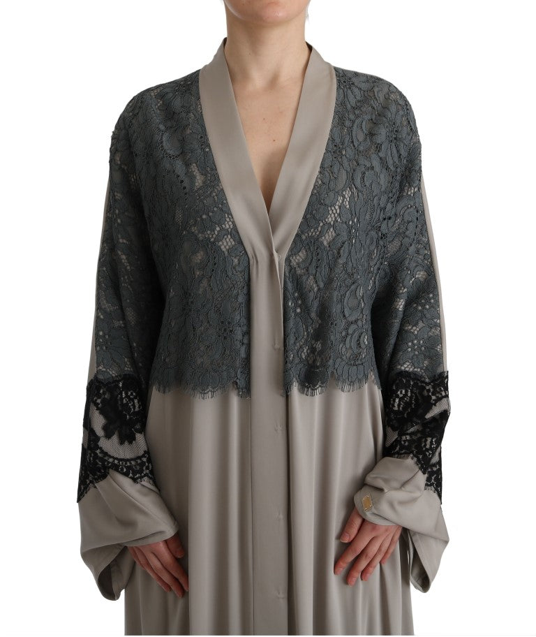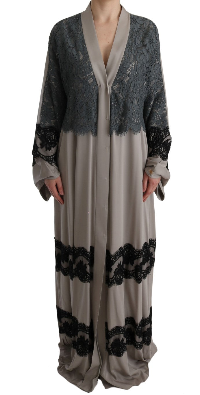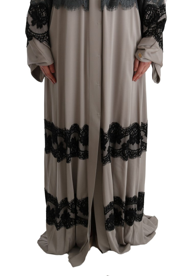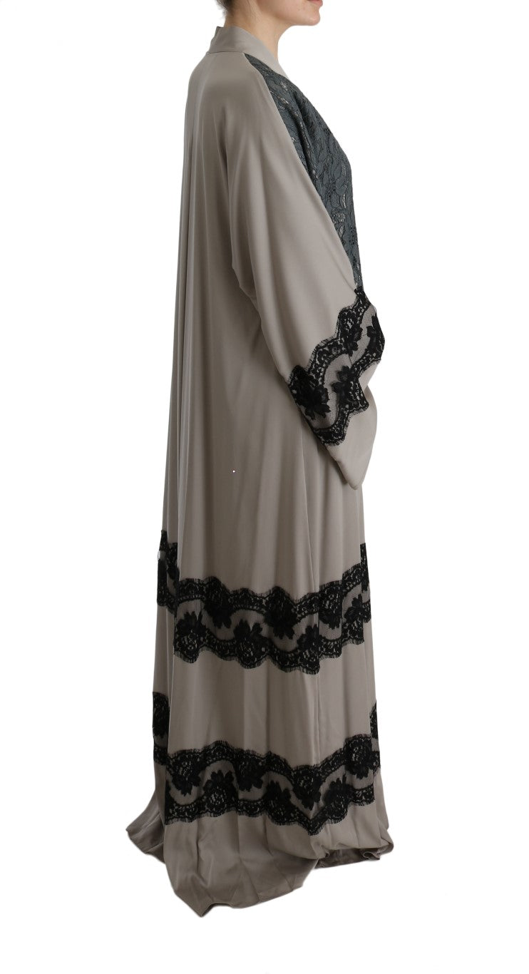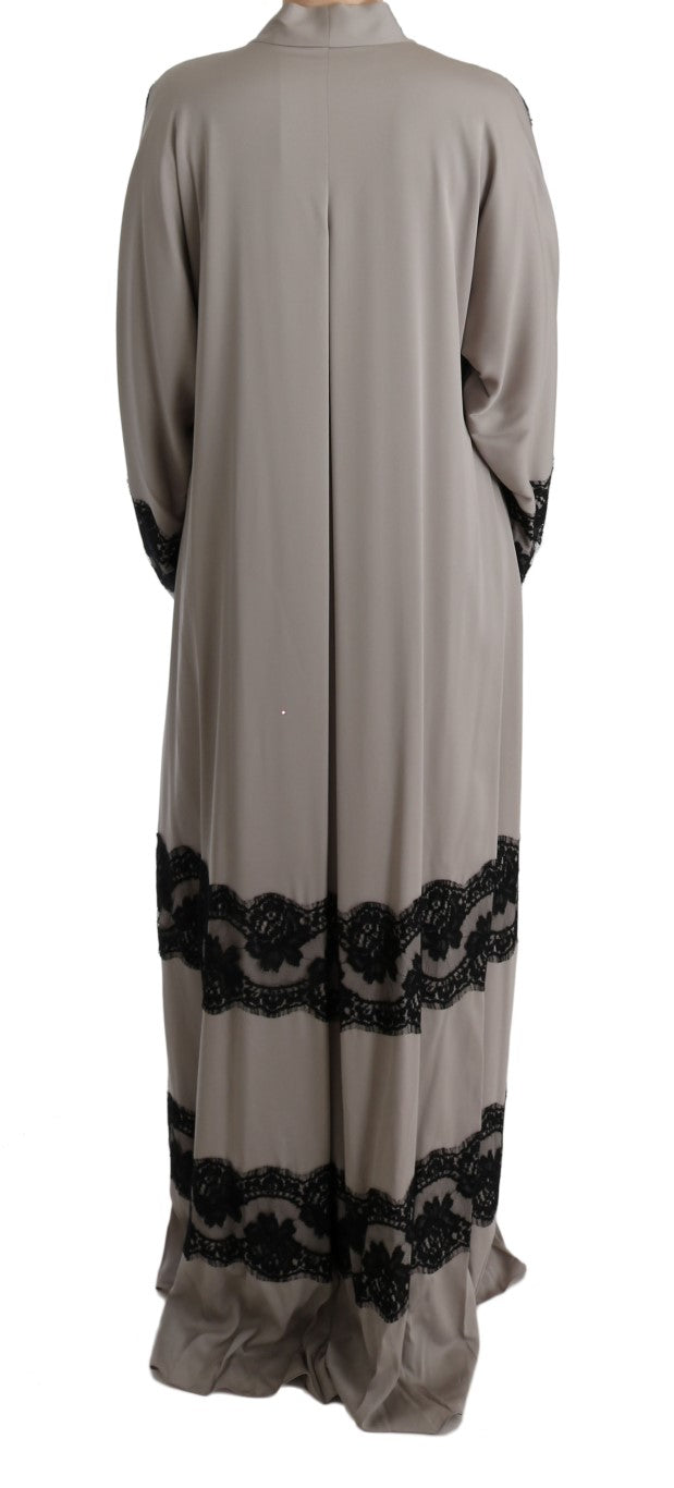 Elegant Gray Cape Kaftan Dress with Lace Detail