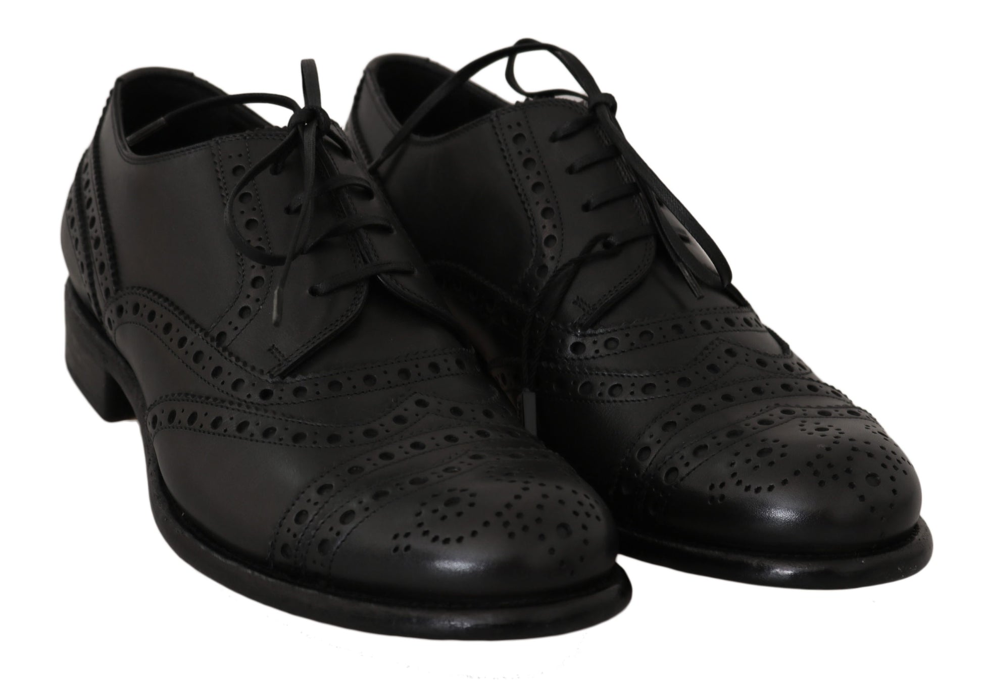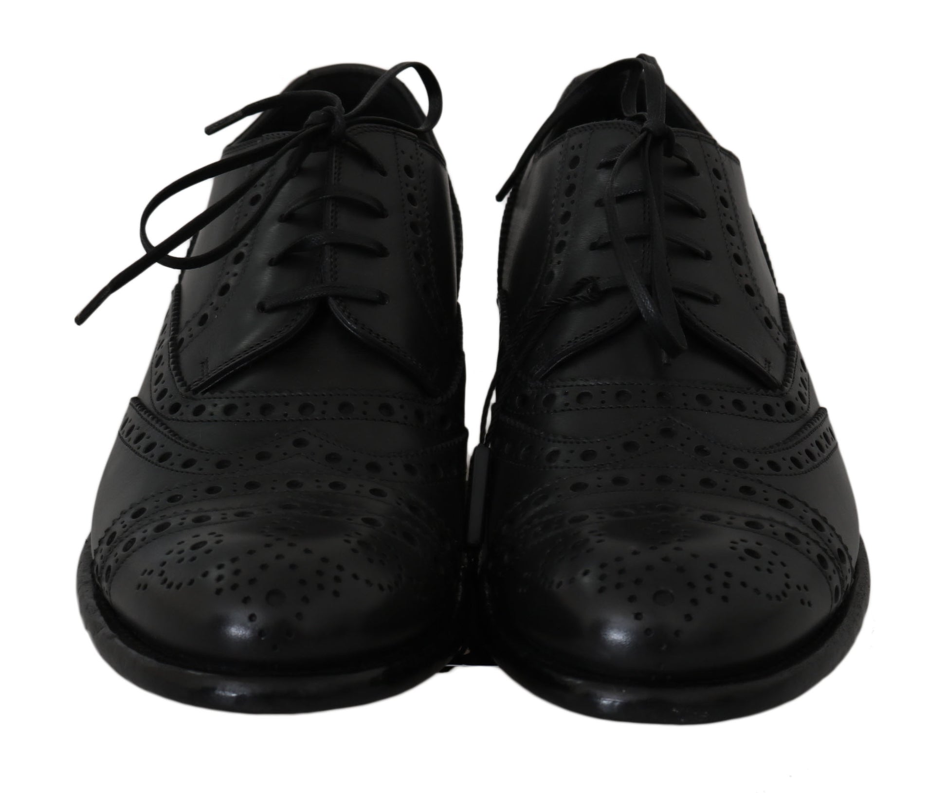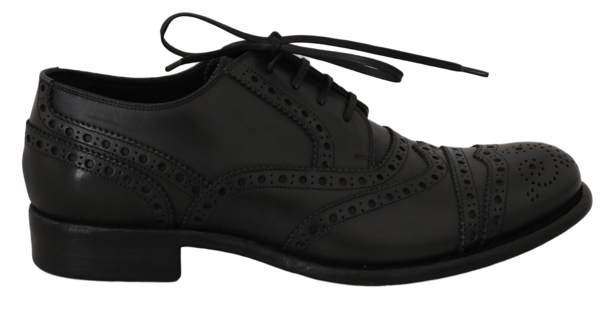 Step into sophistication with these exquisite Dolce & Gabbana Derby Taormina wingtip dress shoes. Perfect for formal occasions, these luxurious shoes are sure to elevate any ensemble. Made with premium leather, they ensure both comfort and style. Handcrafted in Italy, they embody elegance and craftsmanship. Don’t just dress, make a statement with these impeccable shoes.