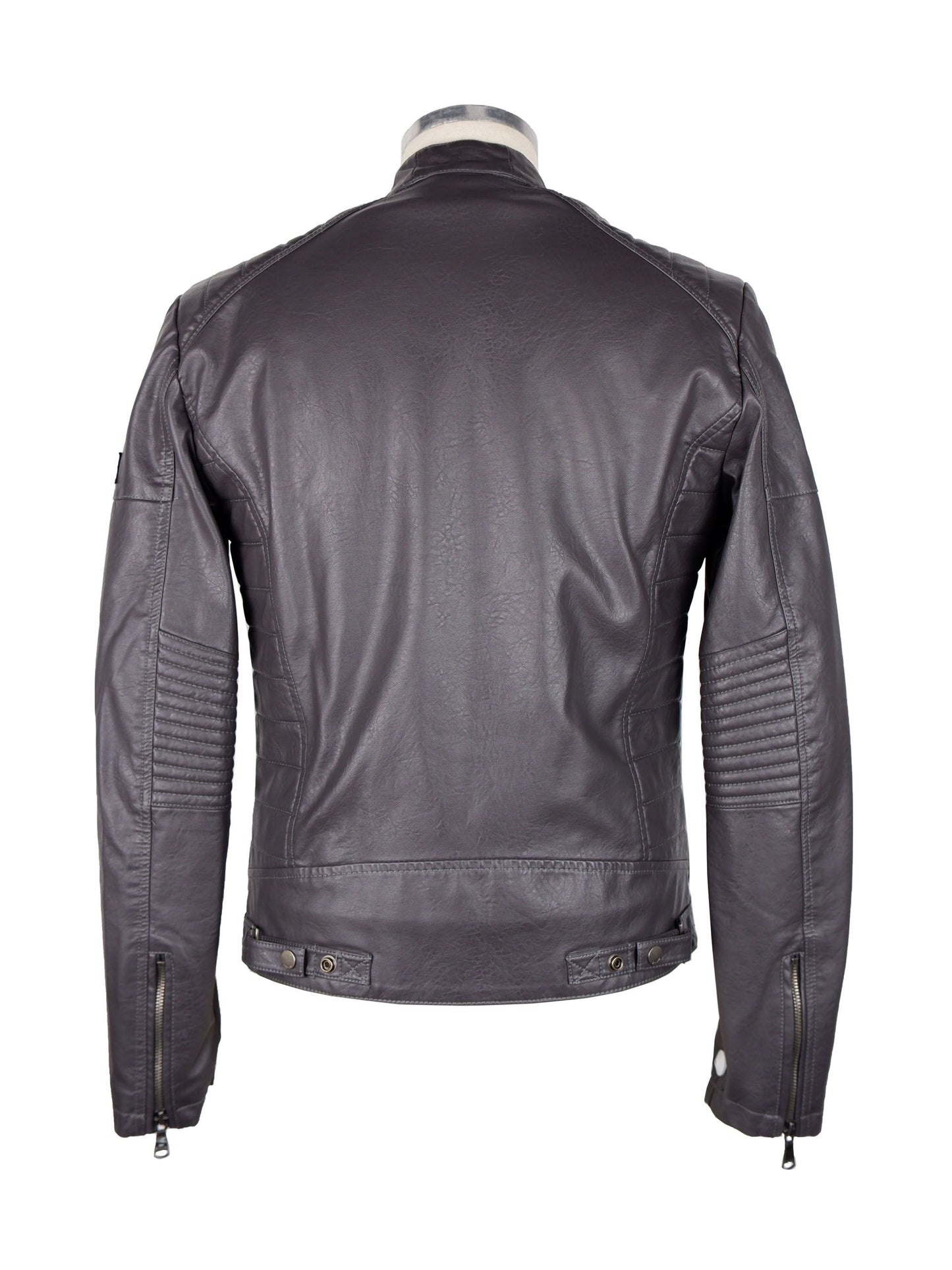 Elevate your style with this dark grey eco-leather jacket, boasting a sleek 3-pocket design and a subtle brand logo accent on the left side. Perfect for adding a touch of sophistication to any outfit.