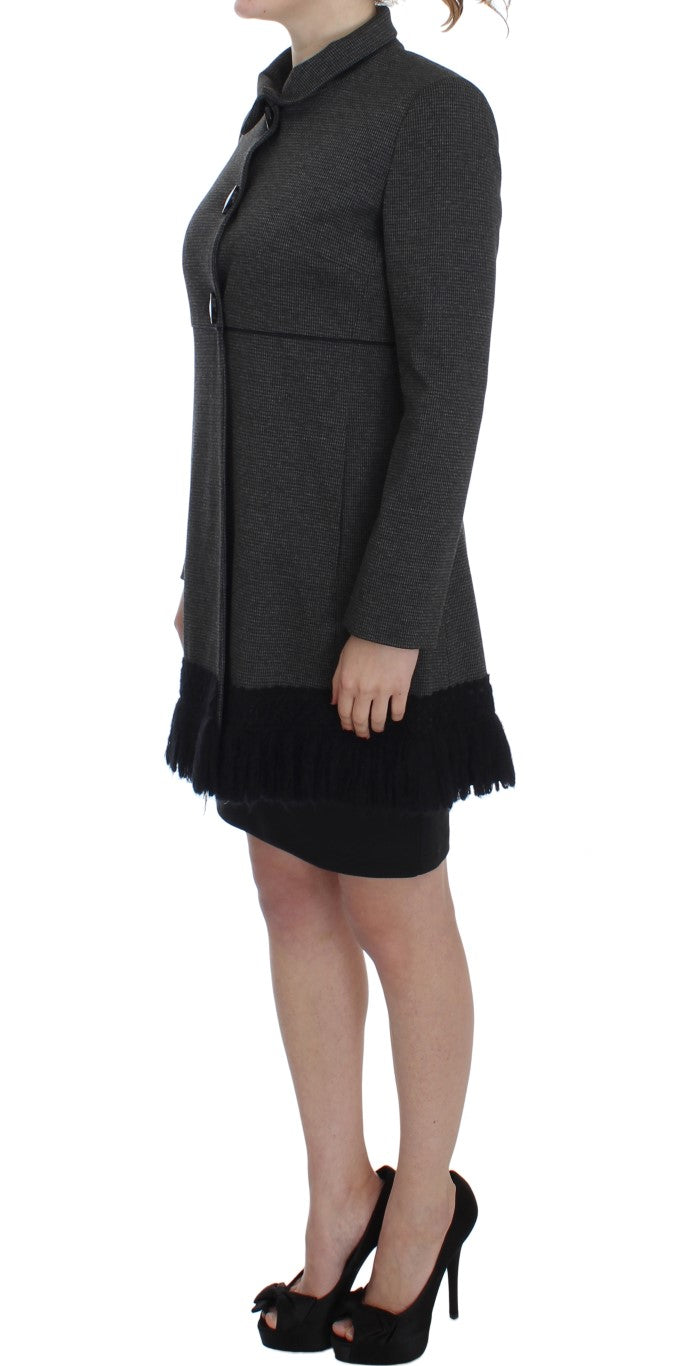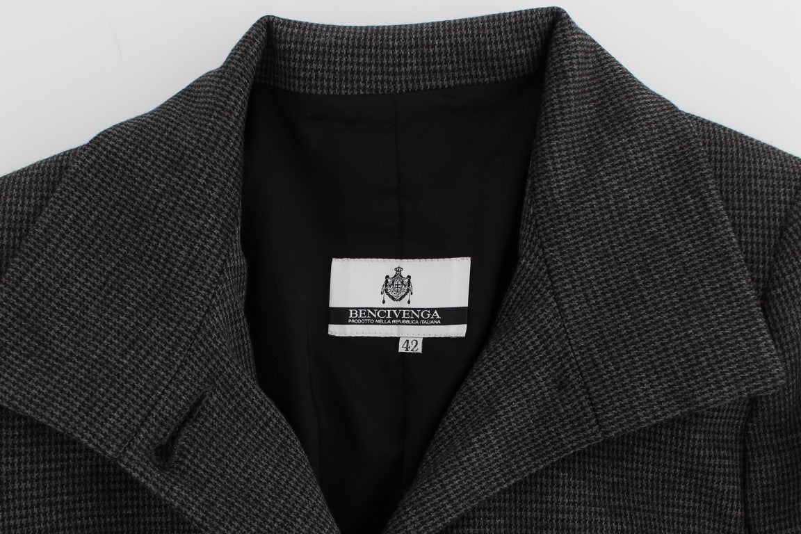 Envelop yourself in sophistication with this gorgeous, brand new 100% Authentic BENCIVENGA wool blend coat jacket. This luxurious outer layer marries style with comfort, featuring a classy gray and black design perfect for completing any ensemble. The jacket is fully lined, ensuring a smooth silhouette, while the three-button collar closure adds a touch of timeless elegance. Proudly made in Italy, this BENCIVENGA piece is a testament to fine craftsmanship and high fashion.