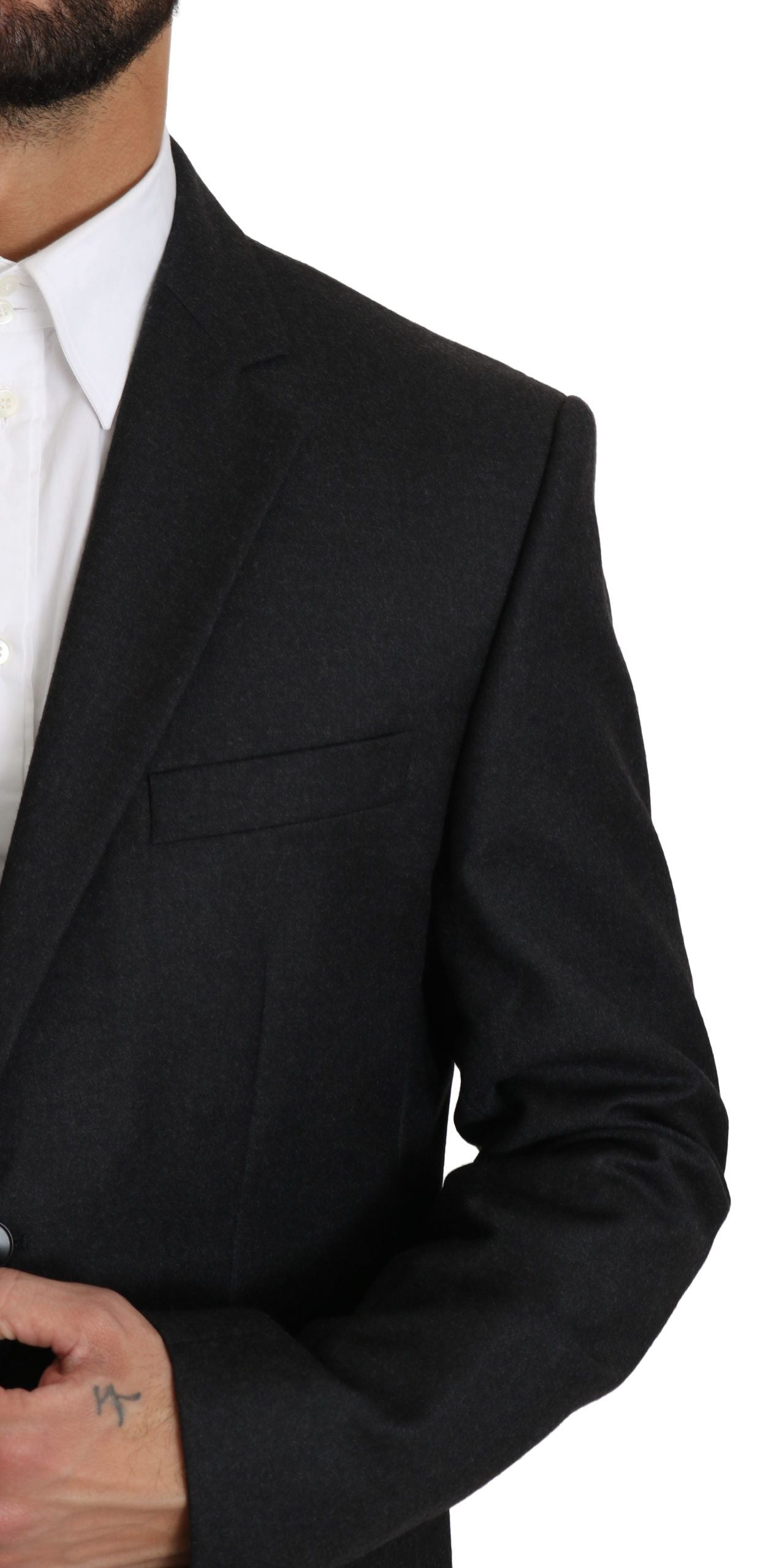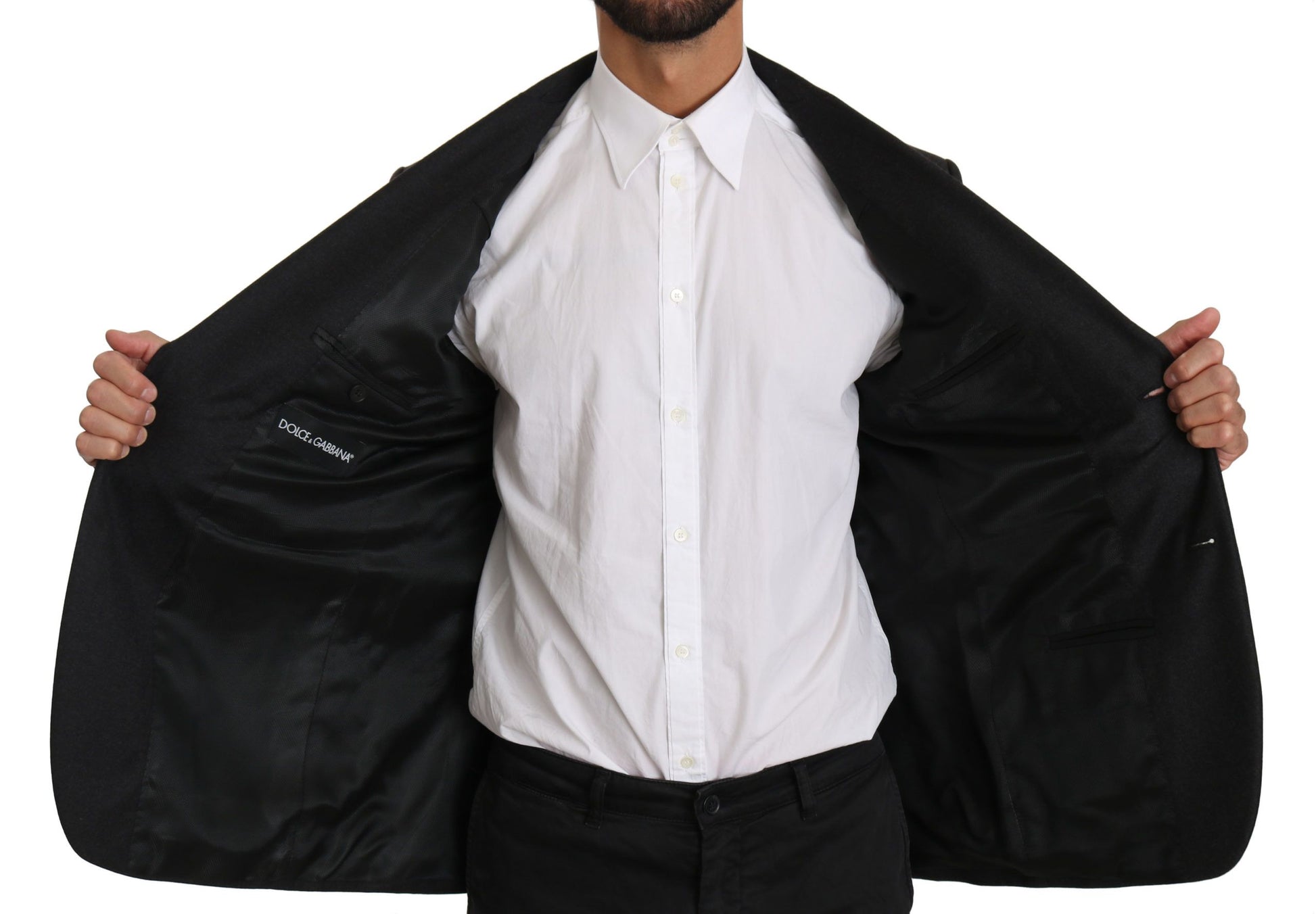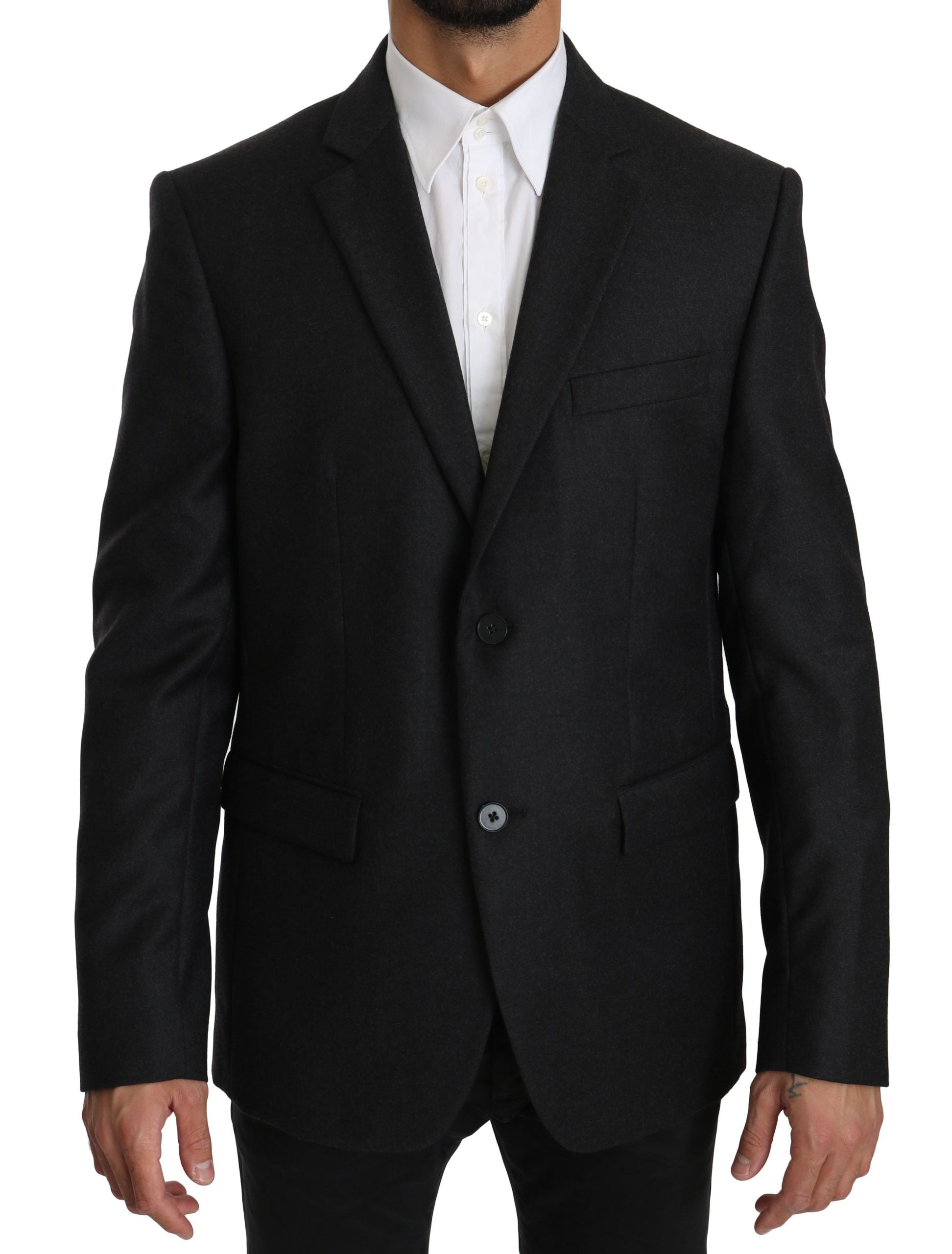 Step into a world of timeless elegance with this Dolce & Gabbana Gray Blazer, perfect for adding a touch of sophistication to any ensemble. Impeccably crafted with 100% Virgin Wool, this blazer delivers both luxury and comfort. Tailored for a slim fit, it features a classic single-breasted design with sharp formal accents. The meticulous attention to detail is evident in the smooth inner lining, precise button closures, and ample pocket space for functionality and flair.