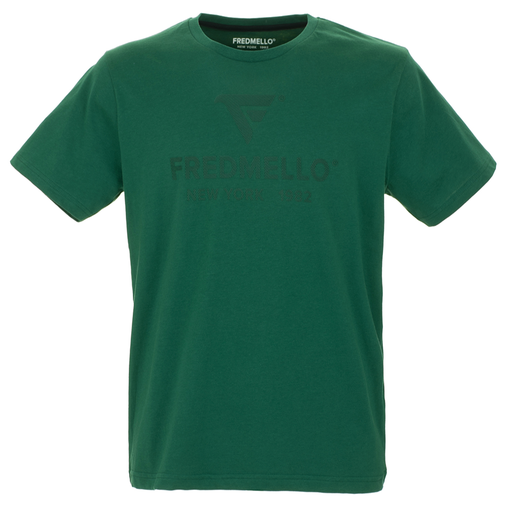 Exude casual elegance with this short-sleeved men’s t-shirt, crafted from the finest 100% cotton for unmatched comfort. Adorned with a distinct rubber logo print on the front, this emerald green tee is a versatile addition to any wardrobe, blending style with everyday practicality.