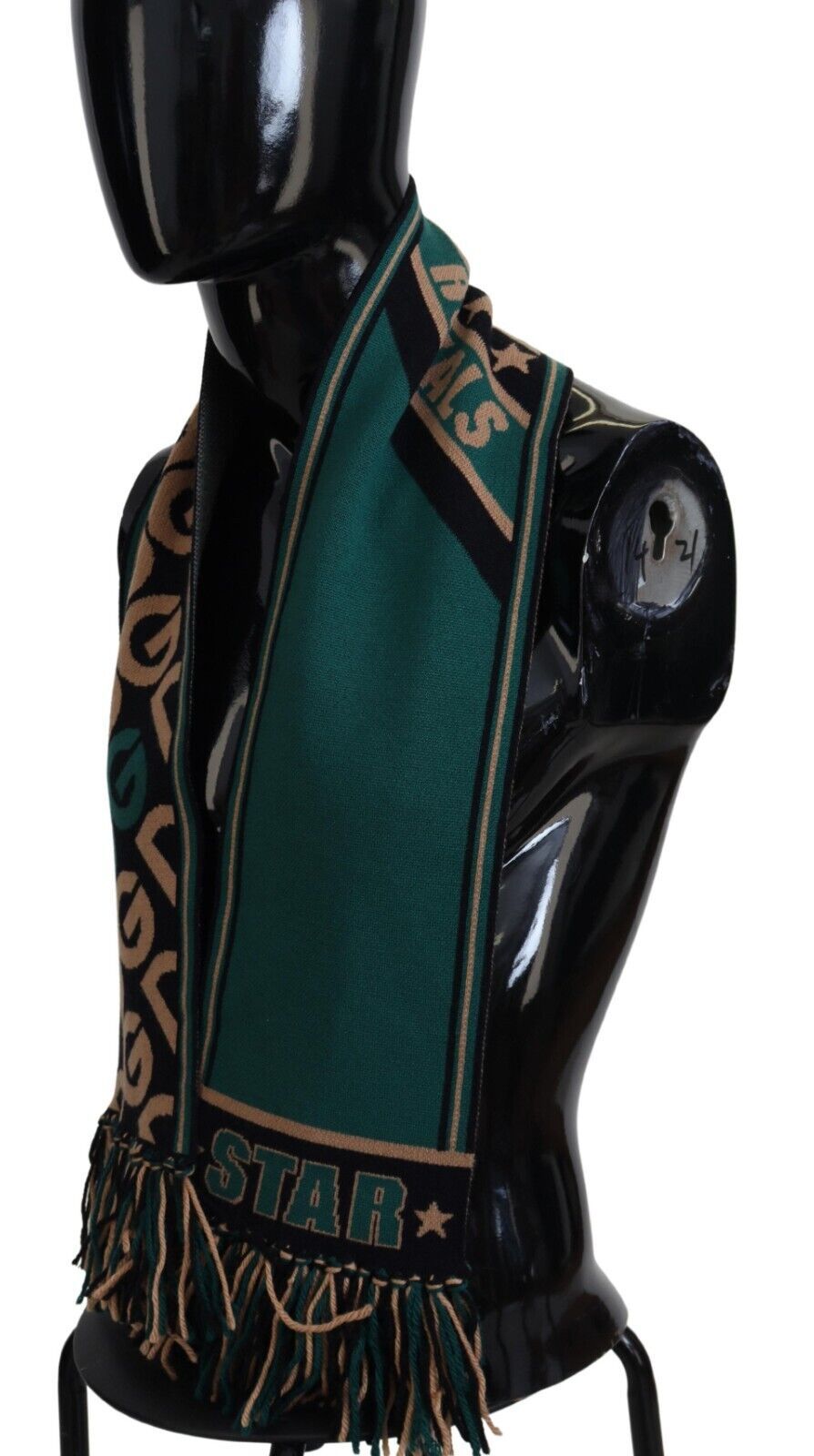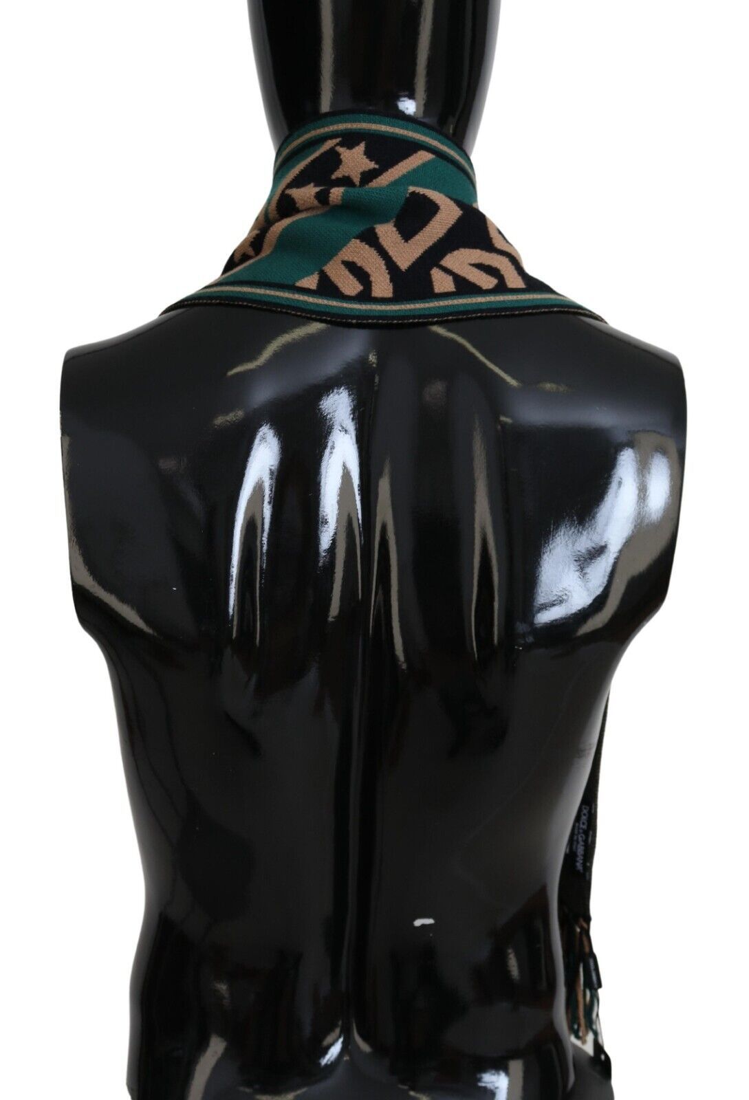 Indulge in the epitome of luxury with this exquisite scarf from Dolce & Gabbana. Crafted from a sumptuous blend of wool and cashmere, this men’s scarf provides both unparalleled warmth and a touch of sophistication to your wardrobe. Its rich green hue is interwoven with subtle brown and black tones, making it a versatile piece to complement any outfit. Made in Italy, this scarf is a testament to quality craftsmanship and elegant design.