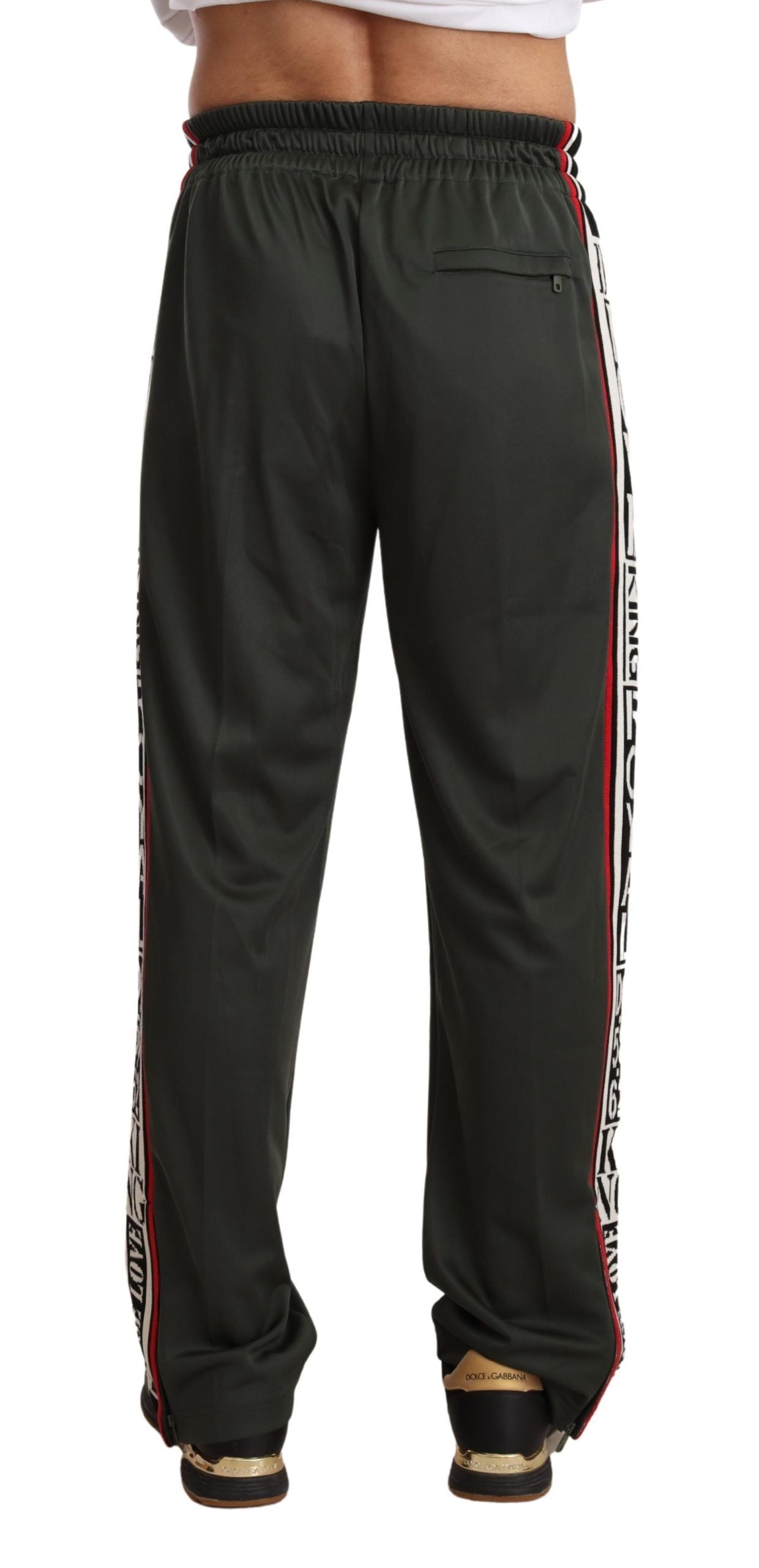 Immerse yourself in the blend of luxury and comfort with these Dolce & Gabbana Sweatpants. Perfect for adding a touch of sophistication to your casual attire, these sweatpants come in a suave green hue and guarantee to elevate your lounge-wear with their exceptional Italian craftsmanship. Fit for any occasion that calls for laid-back elegance, these pants feature a convenient elastic waistband with an adjustable drawstring, ensuring the perfect fit. Practicality meets style with two handy front pockets and an additional zipped rear pocket, all while showcasing the brand’s iconic logo details.