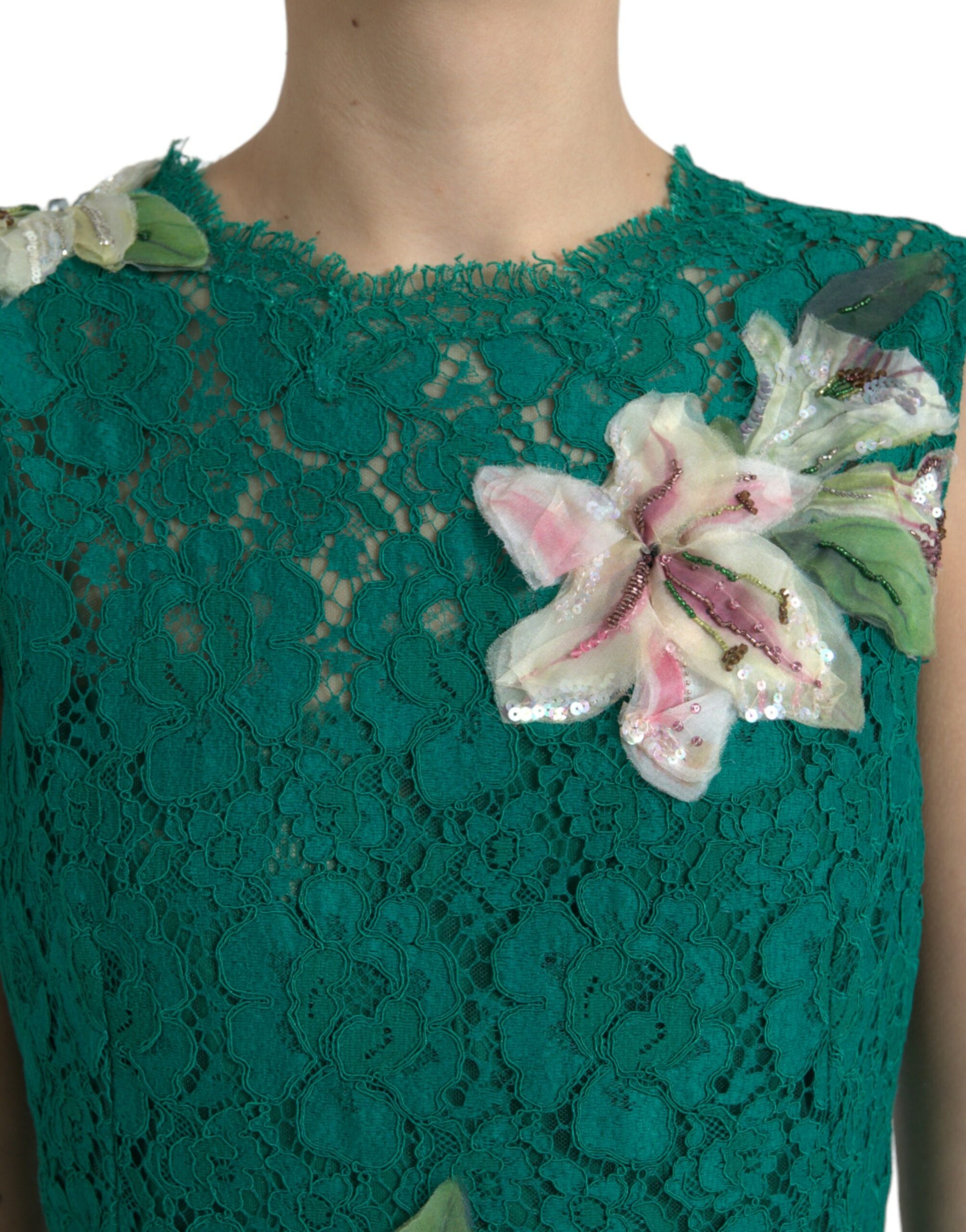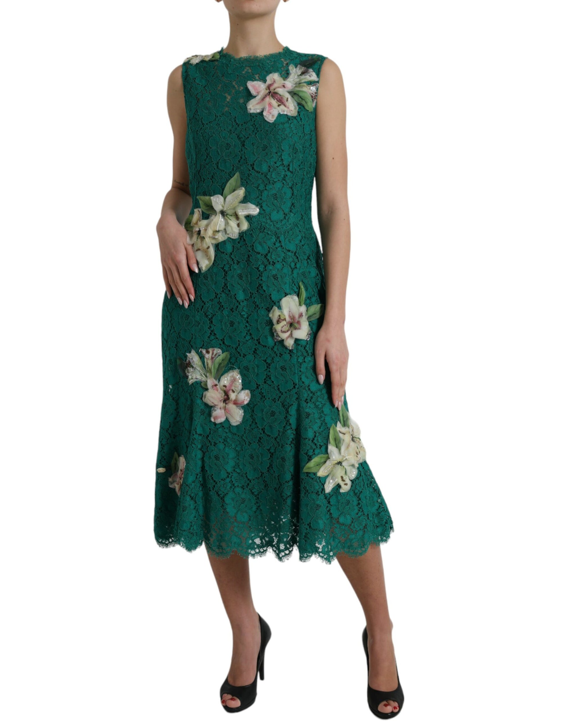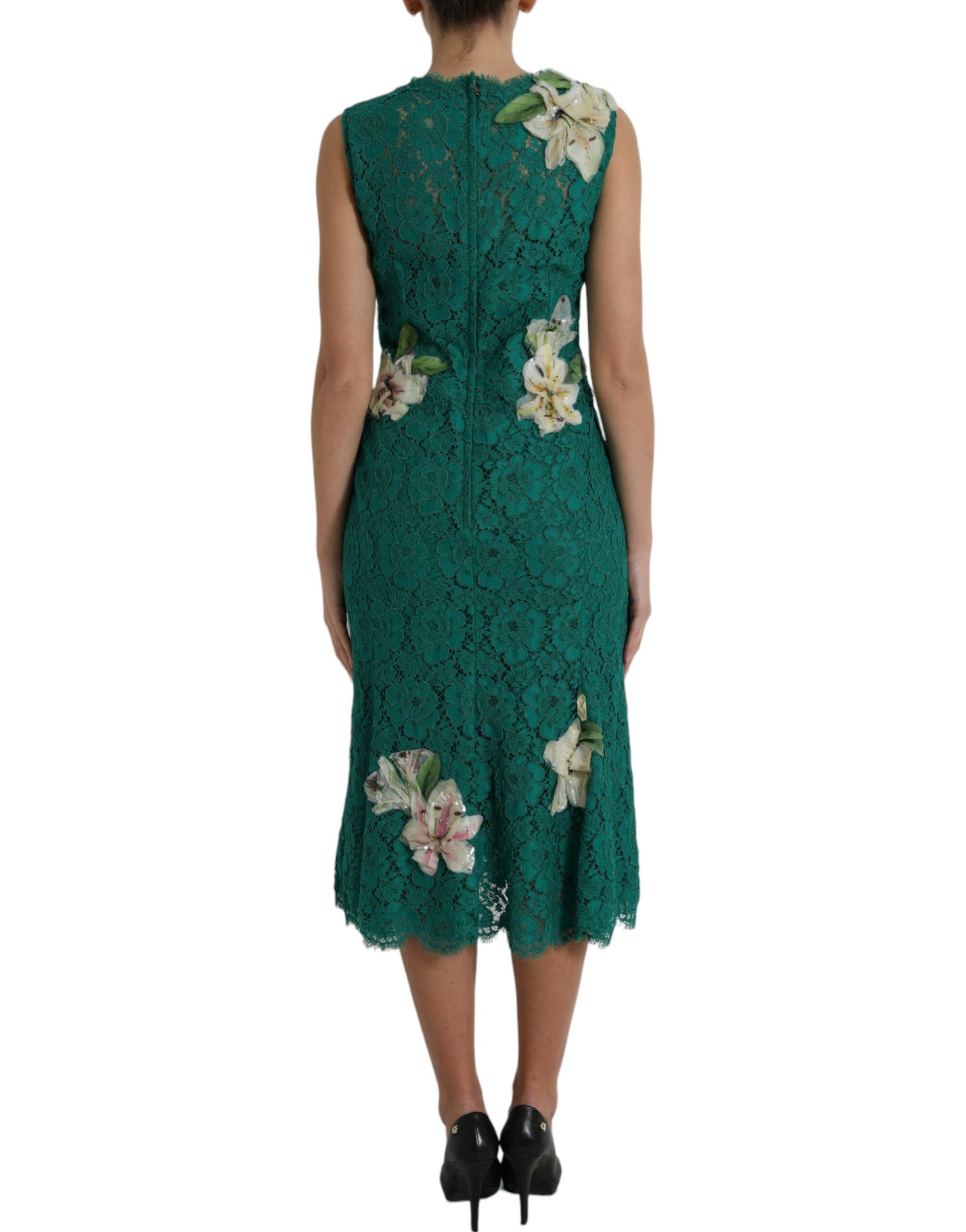 Gorgeous brand new with tags, 100% Authentic Dolce & Gabbana sleeveless lace midi dress with floral appliques.