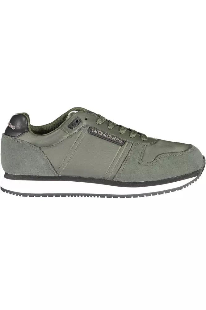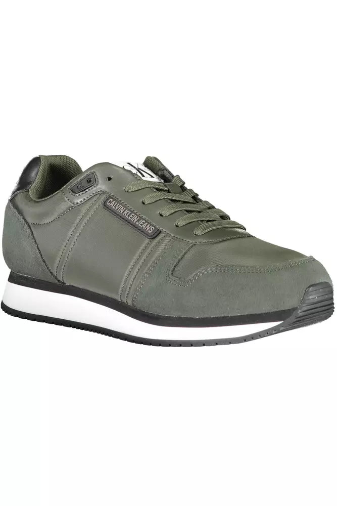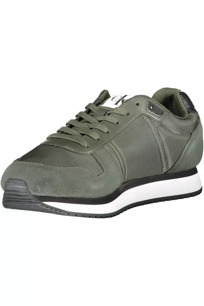 Sleek Green Lace-Up Sneakers with Contrasting Sole