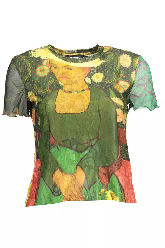 Discover the mesmerizing fusion of comfort and style with our Emerald Allure Printed Crew Neck Tee, a must-have addition to your chic everyday wardrobe. Boasting a vibrant green hue and an eye-catching print, this tee ensures you stand out in any crowd while endorsing the unique flair of Desigual. The added logo detail subtly brands your look with quality and fashion-forward thinking.