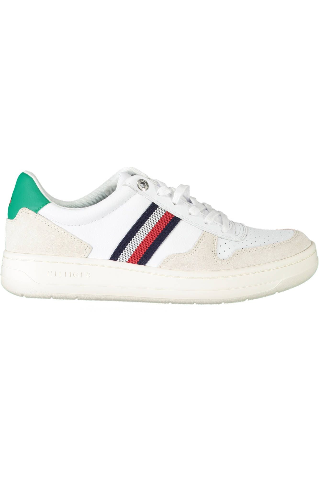 Step up your game with these vibrant green sports sneakers, perfectly crafted for the modern man on the move. The sleek design is accented with contrasting details and the iconic logo embroidery that adds a touch of class to your athletic ensemble. Designed with the spirit of Tommy Hilfiger’s impeccable styling, these shoes are a testament to quality and comfort.