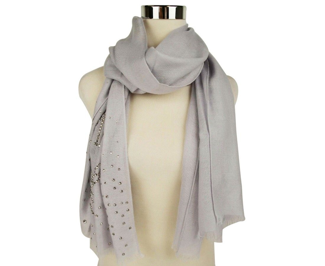 Grey Dawn Cashmere With Swarovski Crystal Logo Scarf