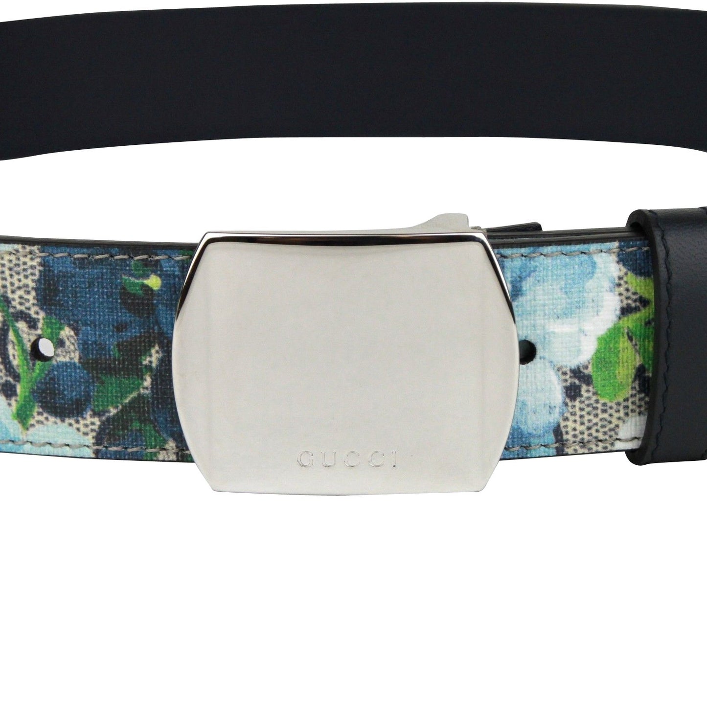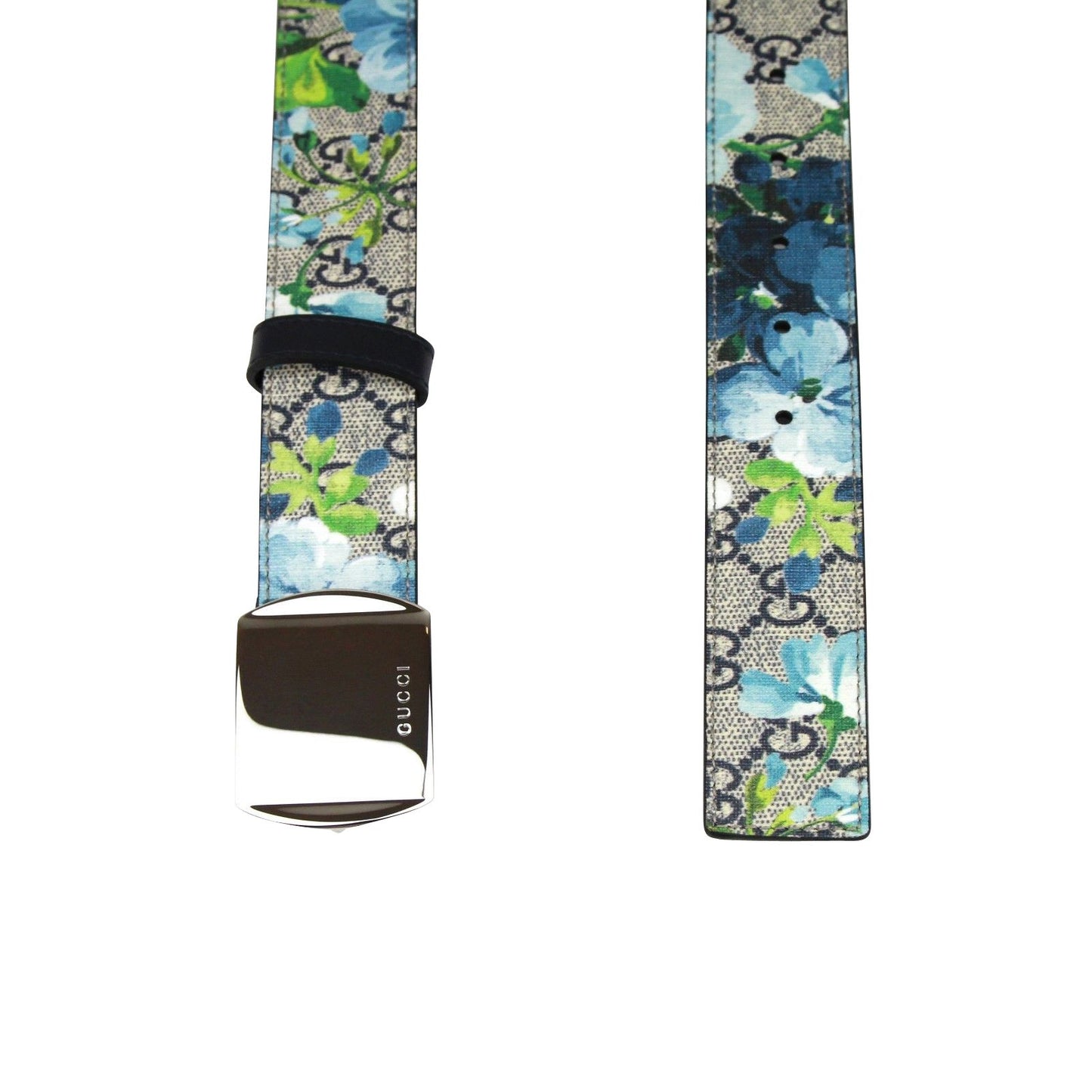 GG Supreme Coated Canvas, Bloom / Flower Print; Silver Buckle; Pattern: GG and Blooms; Measurements: Buckle: 2 x 1 5/8; Belt width: 1 2/8; Total length: 47 4/8 inches; Original Gucci bloom box and tags included; Made in Italy