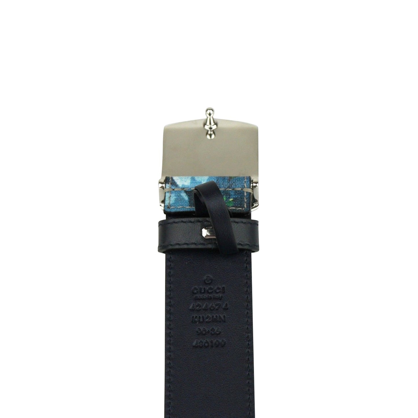 Gucci Unisex Silver Buckle Blue GG Supreme Coated Canvas Belt