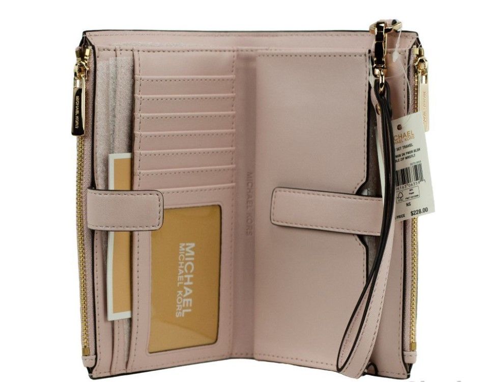 Style: Michael Kors Jet Set Travel Large Double Zip Wrist Wallet (Dark Powder Blush)