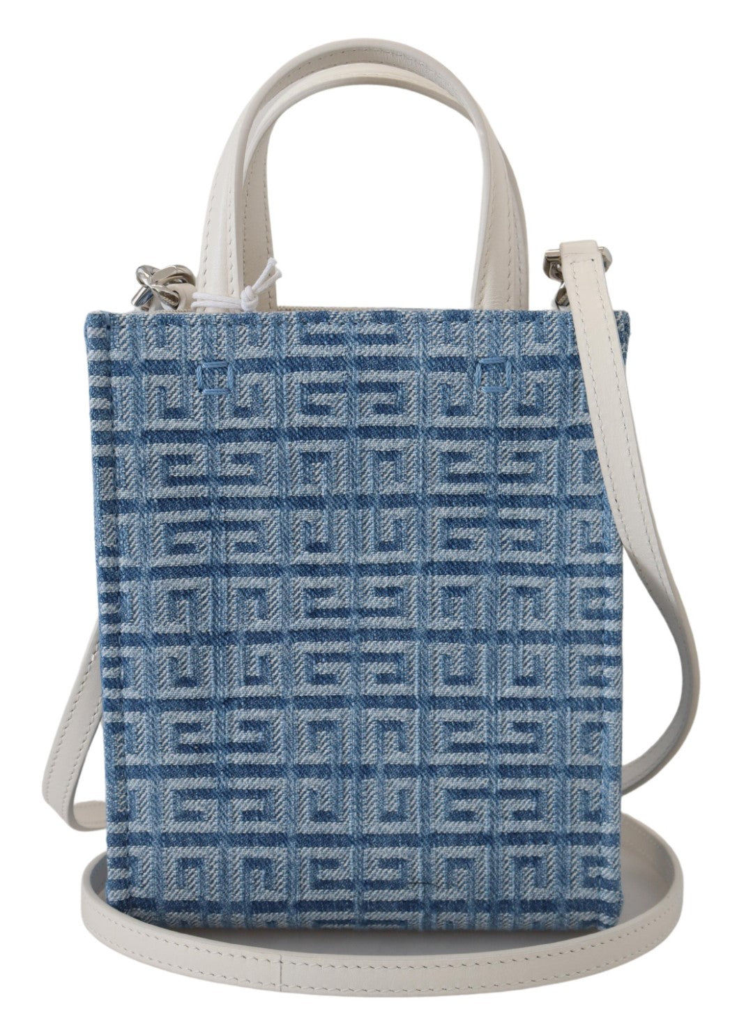 Discover the epitome of elegance with this 100% Authentic Givenchy mini bag, a luxurious companion for any fashion-forward individual. The sleek light blue cotton fabric exudes sophistication, while the versatile top handle design allows it to gracefully transition from a day in the office to an evening out. Offering ample space for your essentials, this Italian-made piece serves not just as a bag but a statement of style.