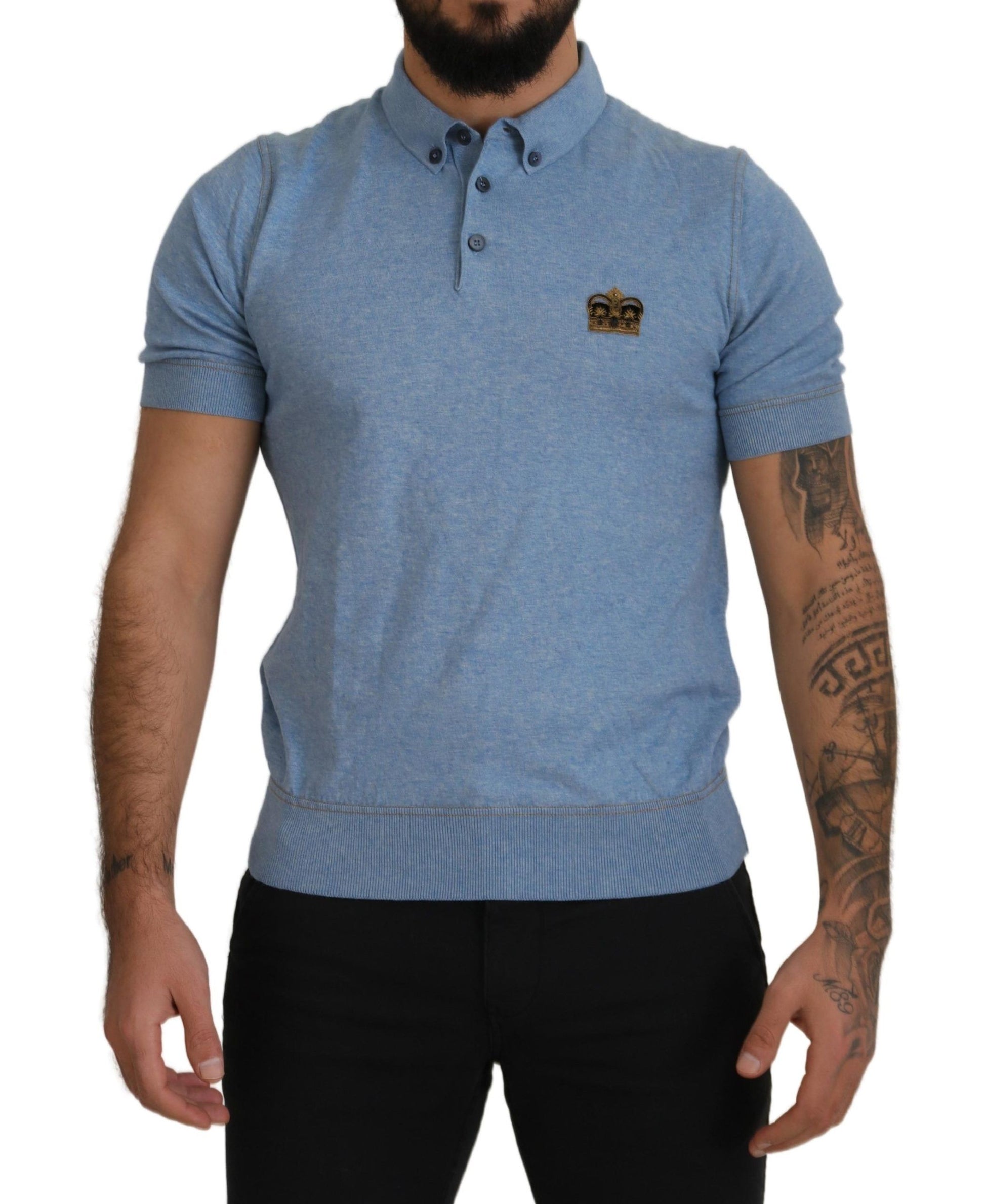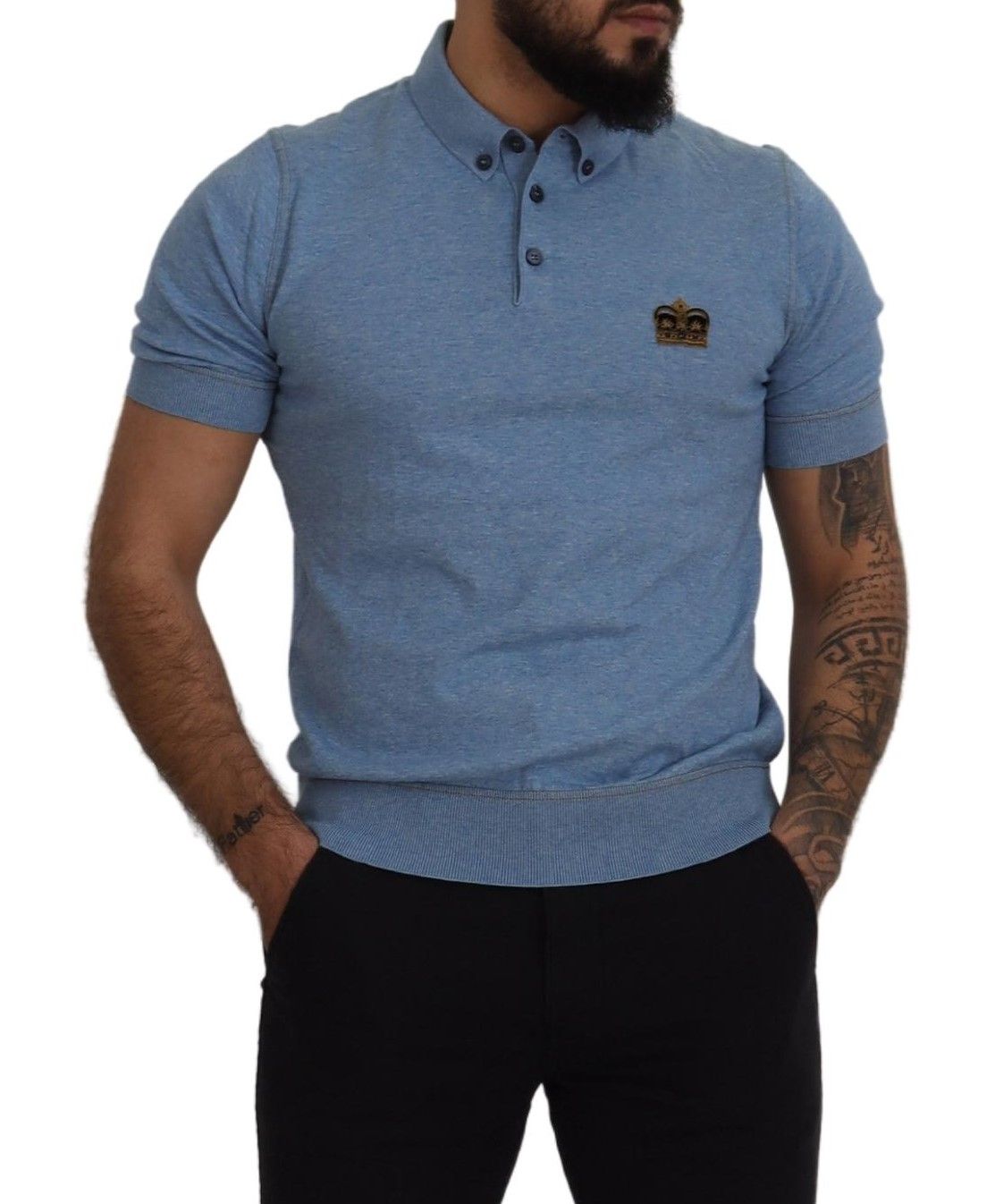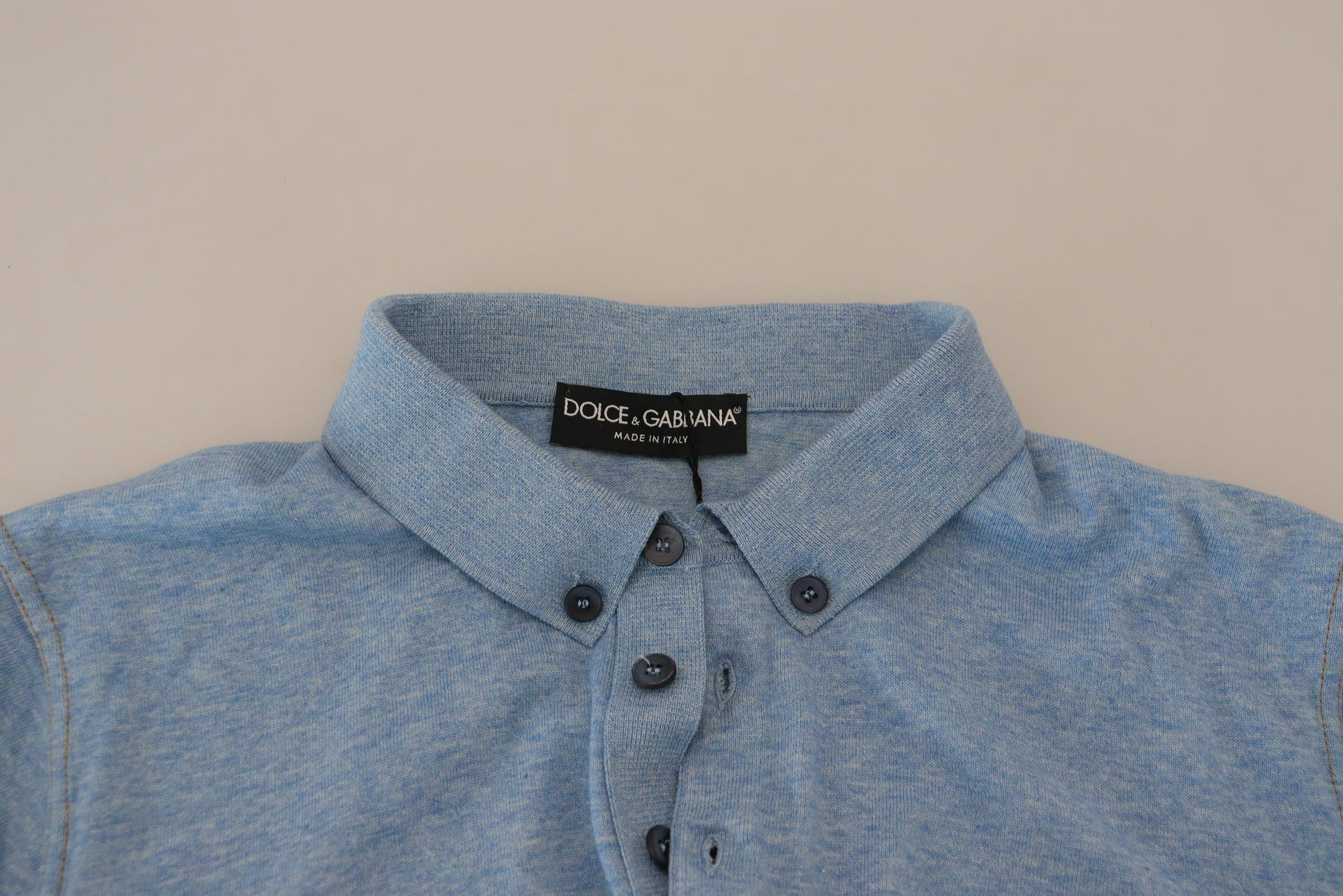 Discover the timeless elegance of our light blue polo t-shirt by Dolce & Gabbana. Crafted in Italy from luxurious 100% cotton, this stunning piece boasts a classic collar, short sleeves, and distinct logo patch on the chest – perfect for adding a touch of authentic designer flair to your everyday wear.