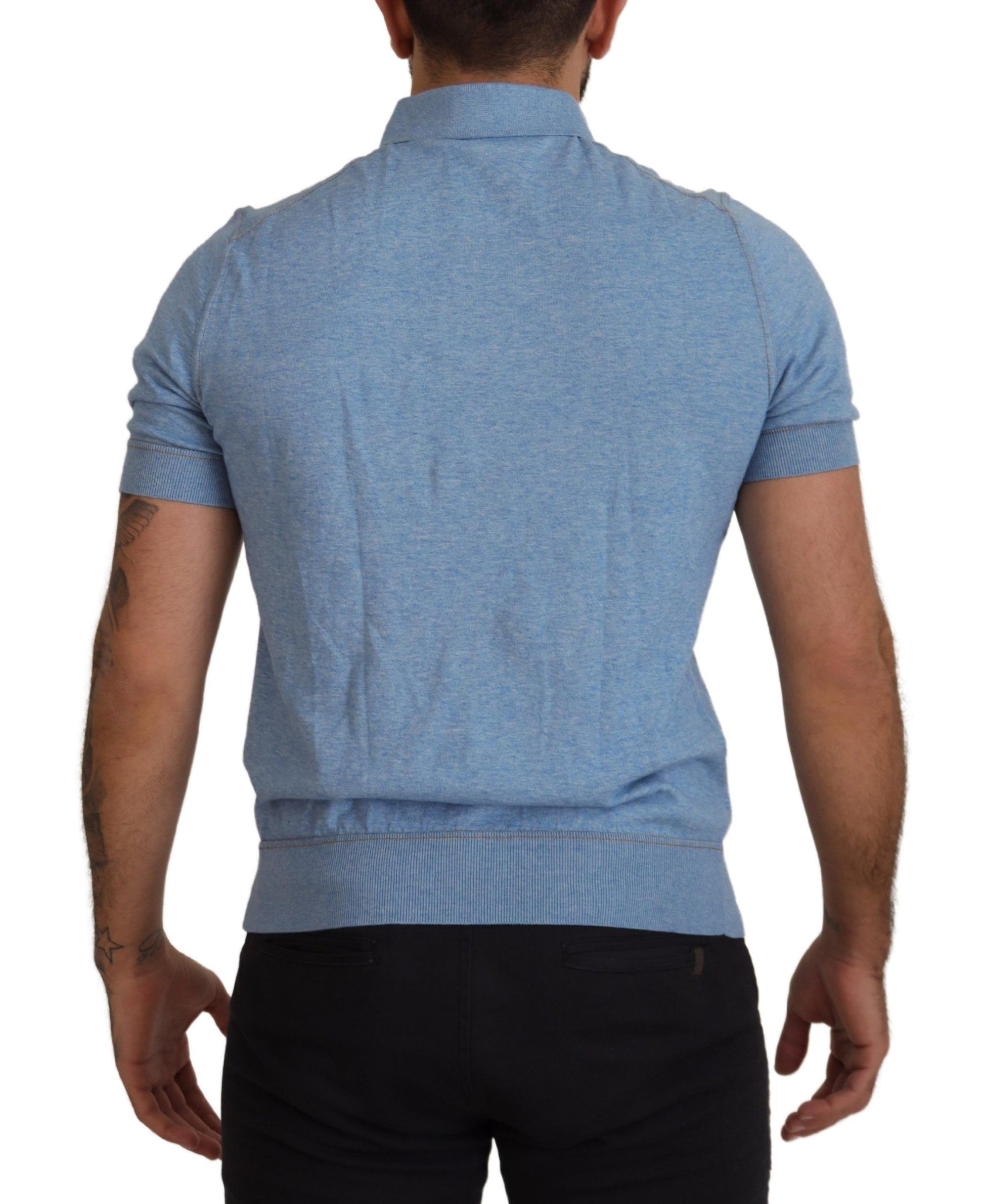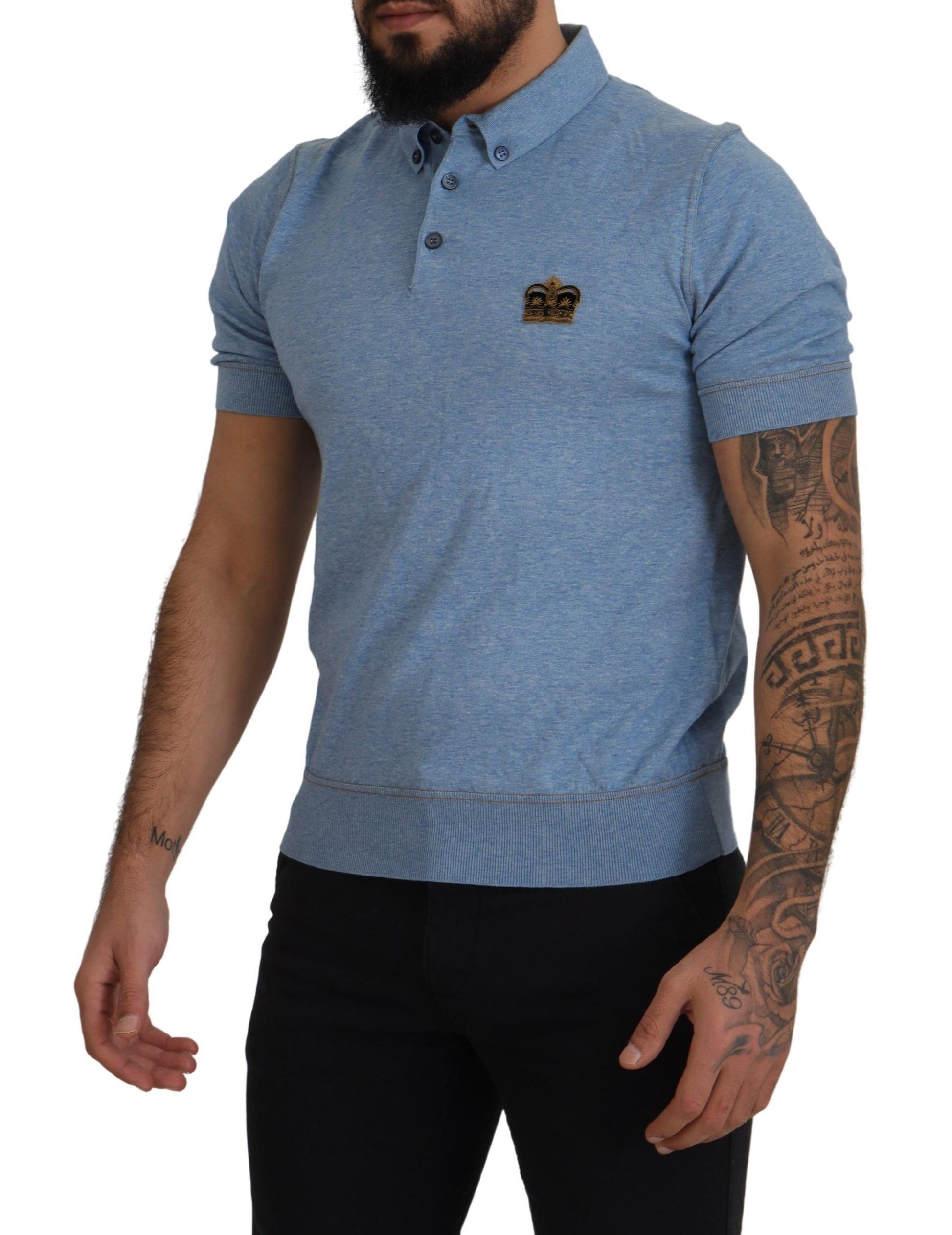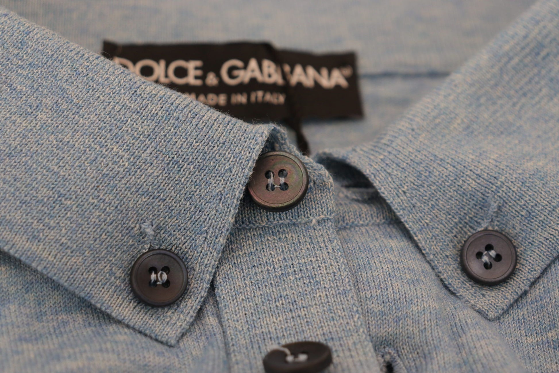 Discover the timeless elegance of our light blue polo t-shirt by Dolce & Gabbana. Crafted in Italy from luxurious 100% cotton, this stunning piece boasts a classic collar, short sleeves, and distinct logo patch on the chest – perfect for adding a touch of authentic designer flair to your everyday wear.