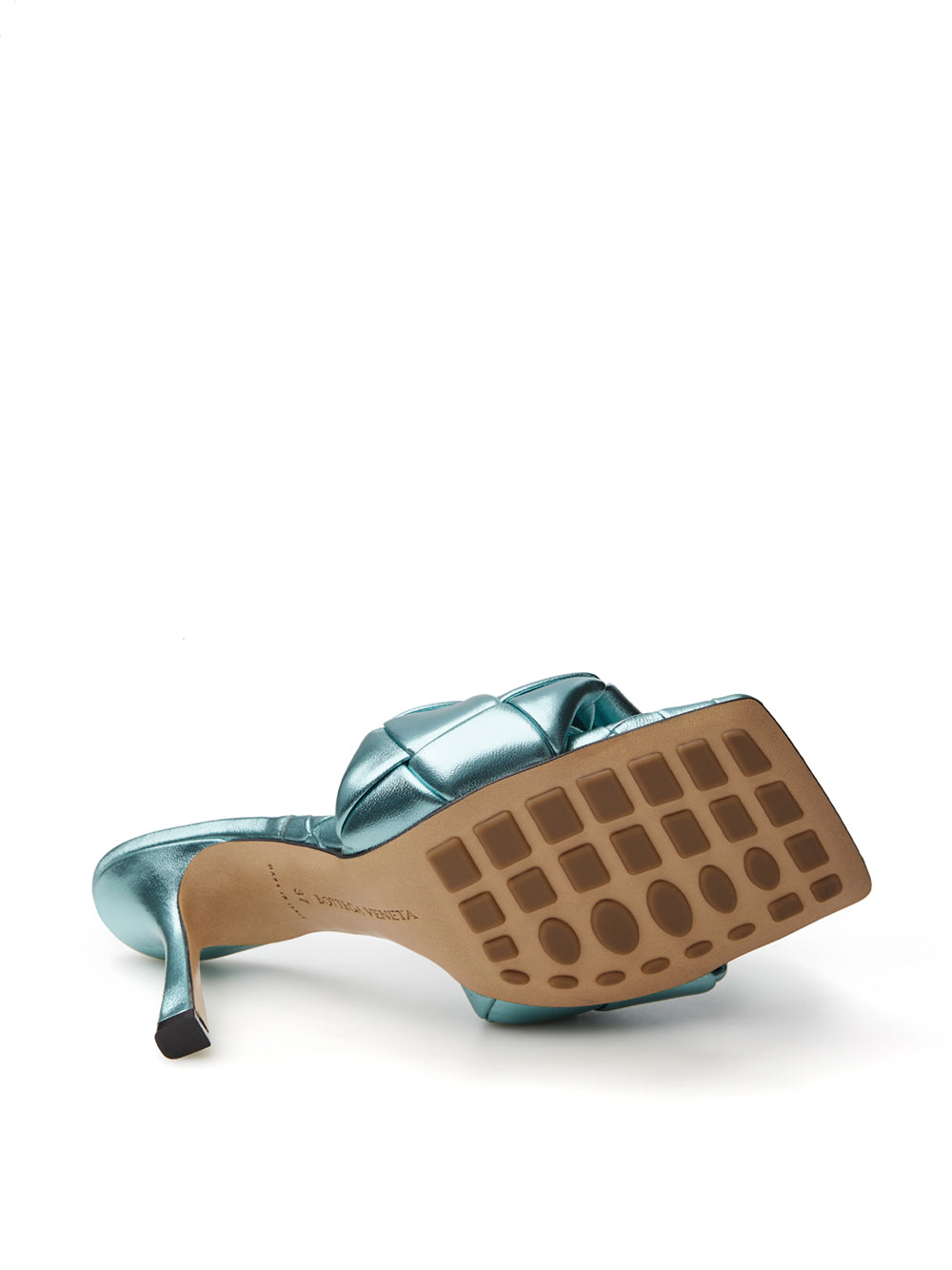 Step into luxury with these Gorgeous brand new with tags, 100% Authentic Bottega Veneta sandals. Featuring the iconic Lagoon maxi intreccio design with an open toe silhouette, these Light Blue Metal Mule Sandals will elevate any ensemble. The perfect blend of style and comfort, they’re finished with an external sole with rubber details for a secure stride.