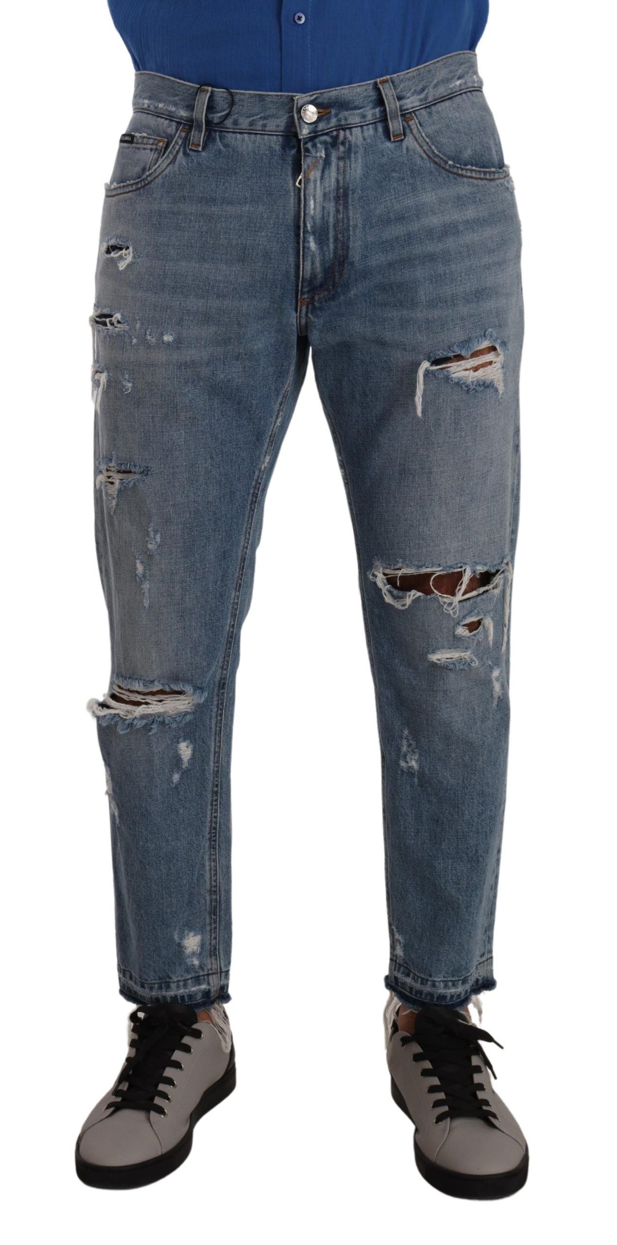 Indulge in Italian luxury with these exquisite light blue loose denim jeans from Dolce & Gabbana. Perfect for adding a touch of elegance to your casual wardrobe, these jeans come brand new with tags and feature a classic zipper and button closure for a comfortable regular fit. Detailed with the iconic logo, these jeans embody style and sophistication.