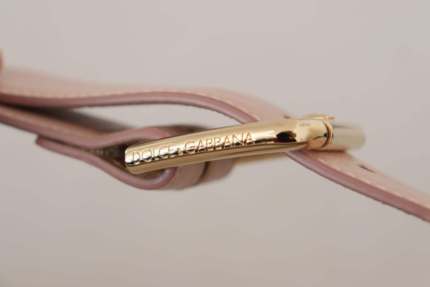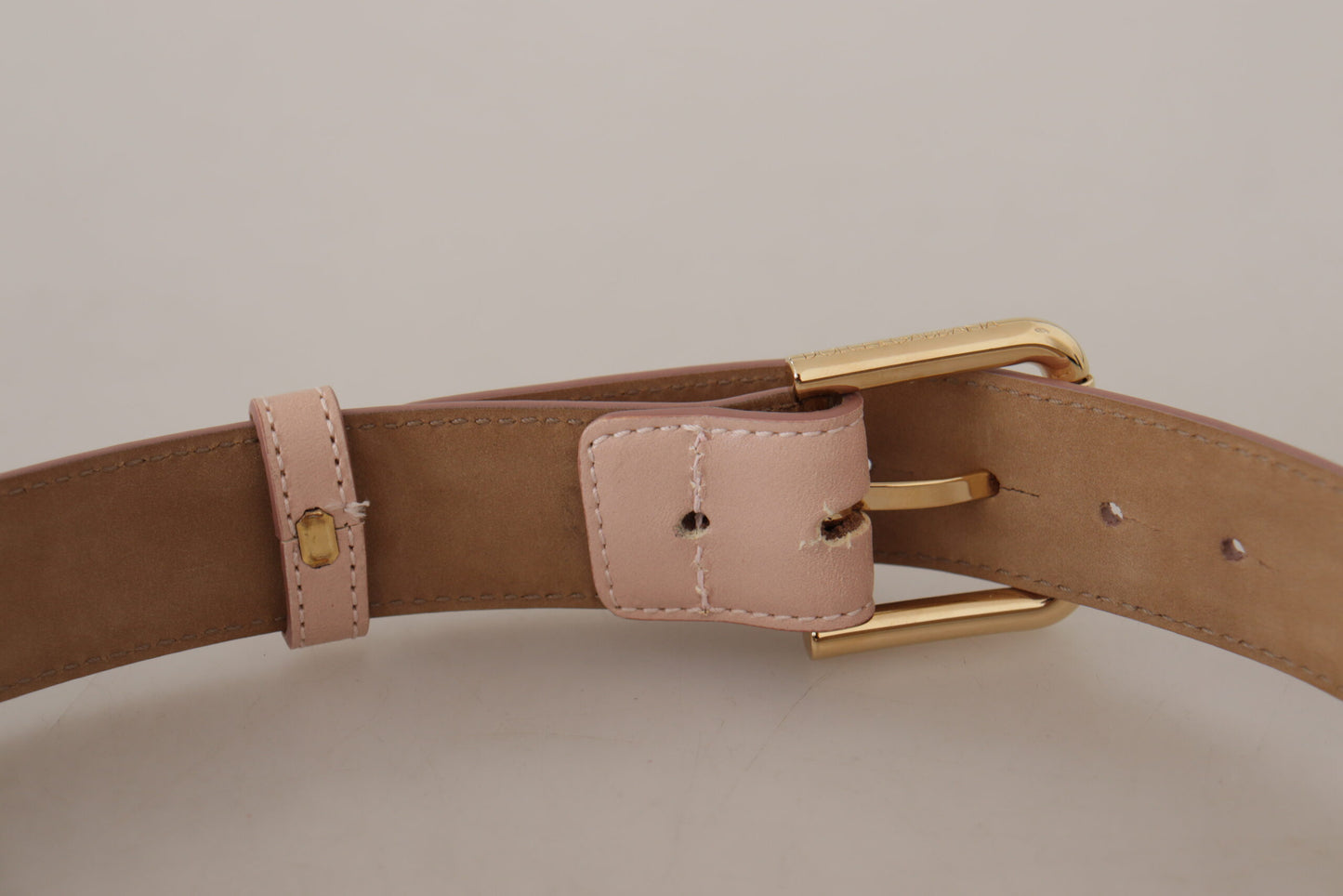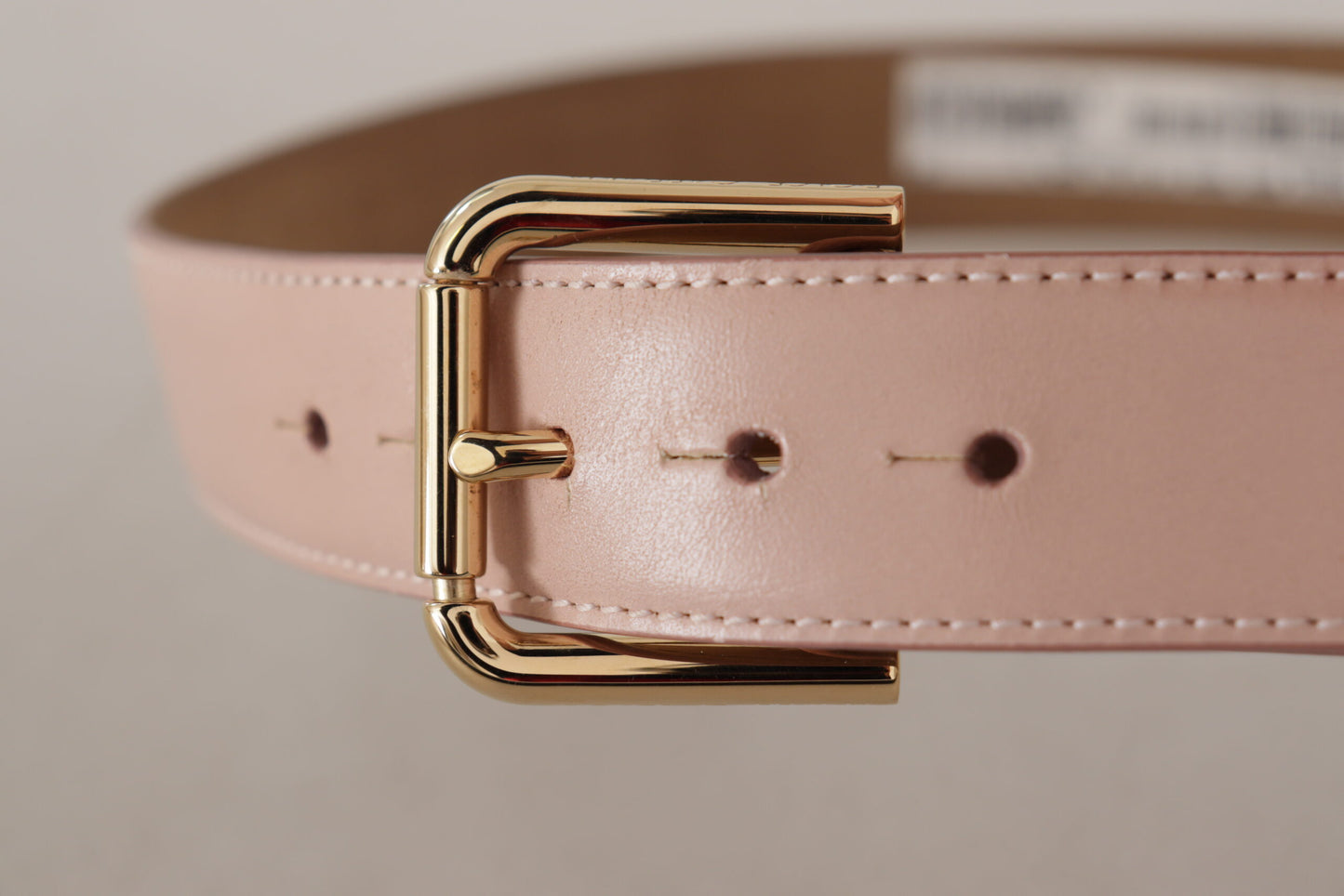 Exude elegance with this gorgeous new accessory from Dolce & Gabbana. This luxurious belt, with tags and original box, is crafted from the finest leather featuring a chic metal logo-engraved buckle. Designed to enhance any outfit, its light pink hue and expert Italian craftsmanship make it a must-have for any fashion connoisseur.