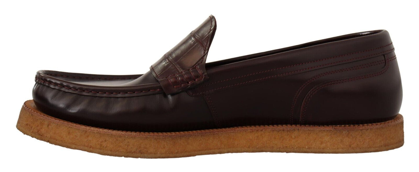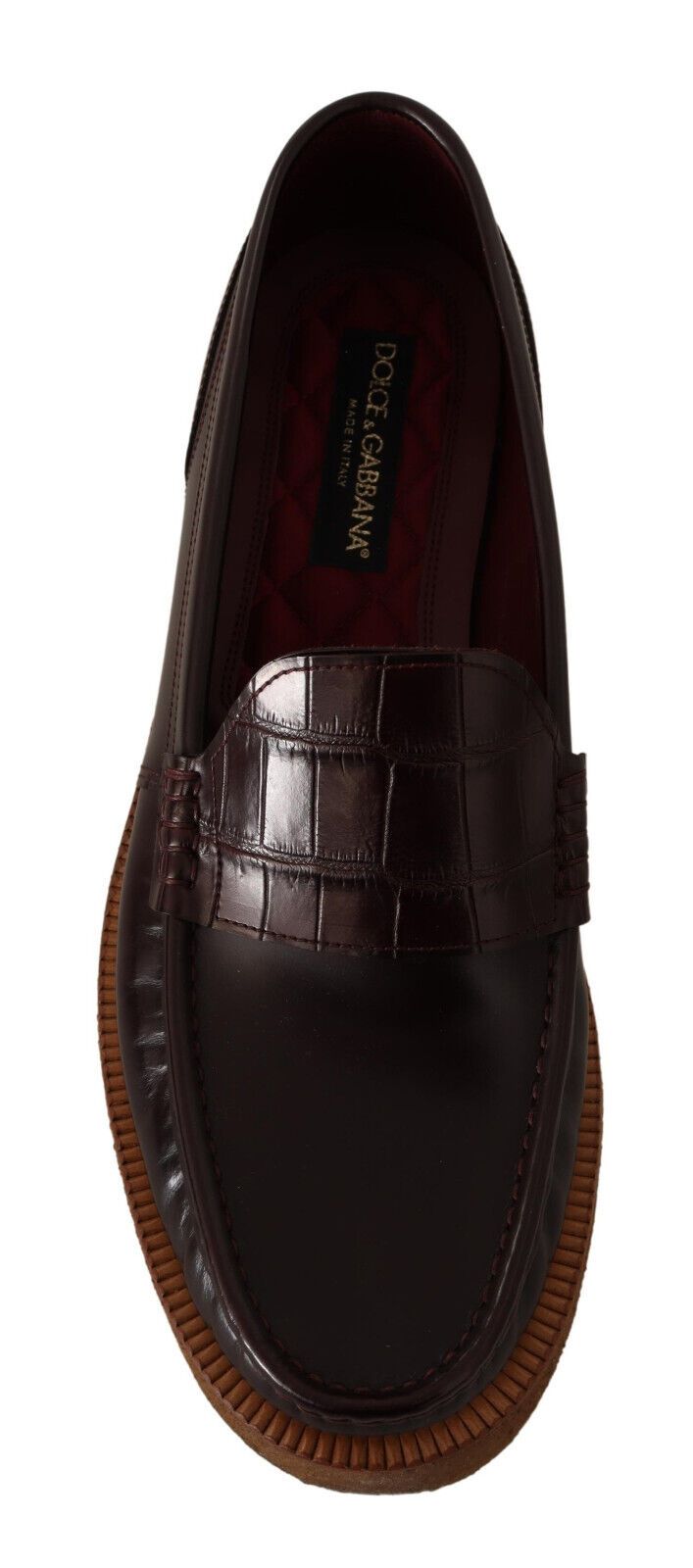 Step into luxury with these exquisitely crafted loafers from Dolce & Gabbana. Perfect for any gentleman looking to elevate his wardrobe, these shoes feature a rich bordeaux hue, indicative of the brand’s commitment to refined aesthetics. Crafted from premium leather with exotic skin accents, they are designed not only for style but also for comfort with their sturdy rubber soles. Emblazoned with the iconic logo details, these loafers are a testament to Italian craftsmanship.