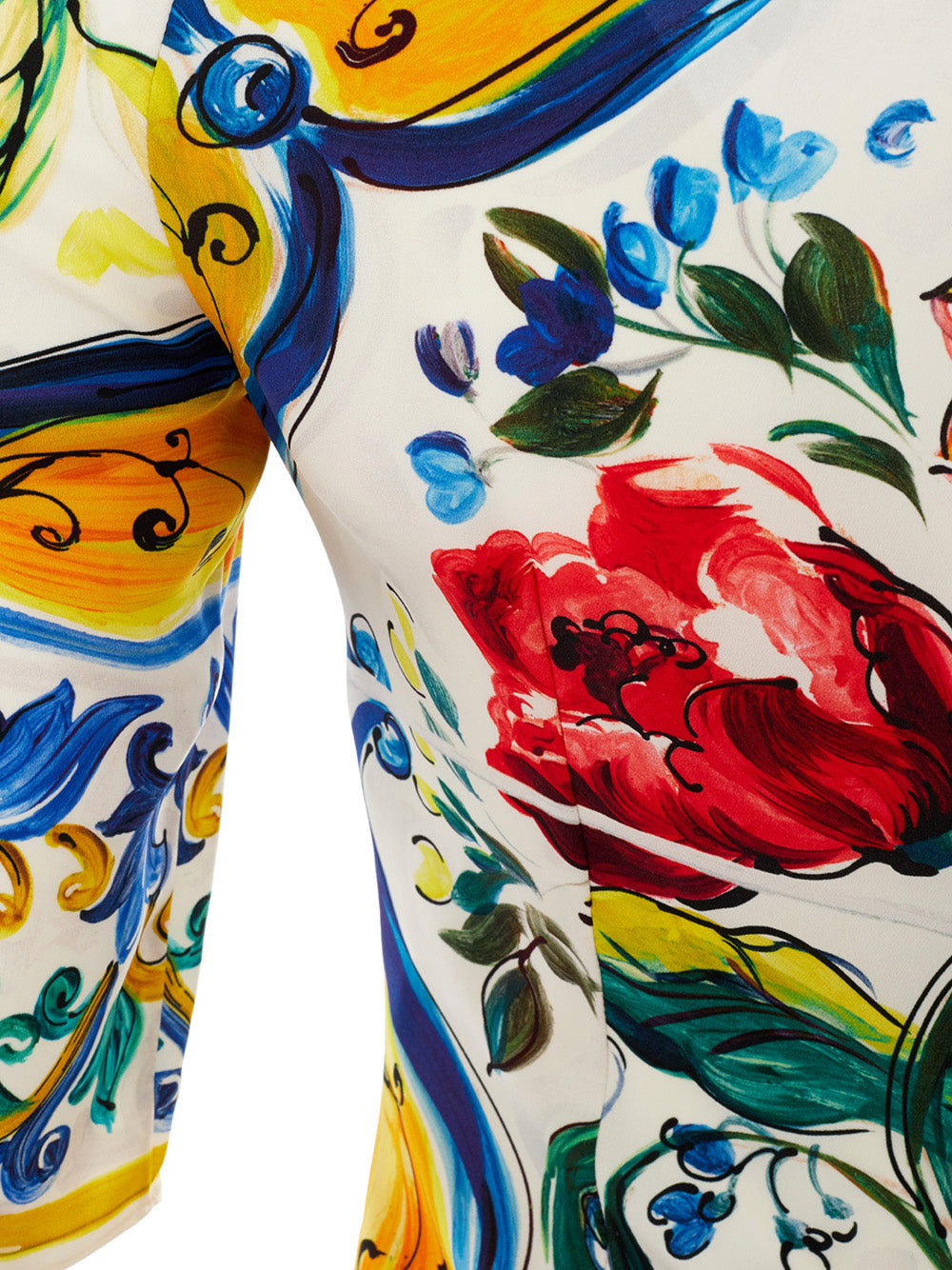Discover the epitome of Italian elegance with this stunning short-sleeved top from Dolce & Gabbana. Boasting a beautifully crafted maiolica print that encapsulates the brand’s eye for detail and passion for rich patterns. The luxurious 100% silk fabric combines comfort with a high-end feel, perfect for an exquisite day look or a sophisticated evening outfit. Featuring a graceful round neck and a discreet back zip closure, this top is a true testament to Dolce & Gabbana’s commitment to luxury and style.