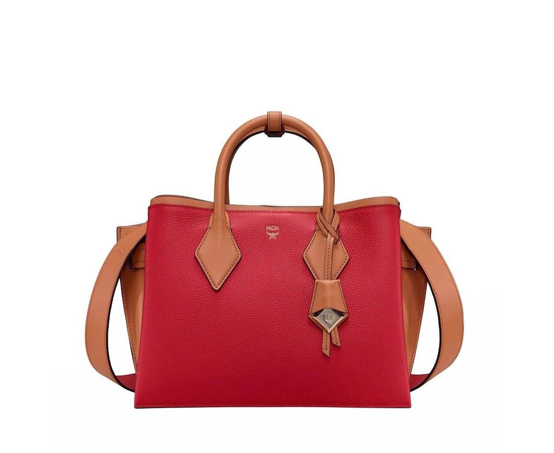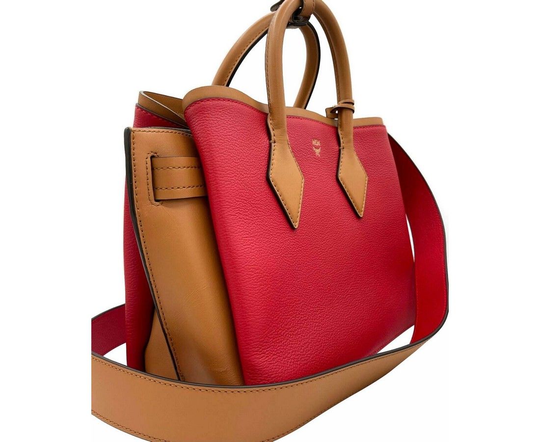MCM Red Milano Ruby Leather Medium Tote Shoulder Bag