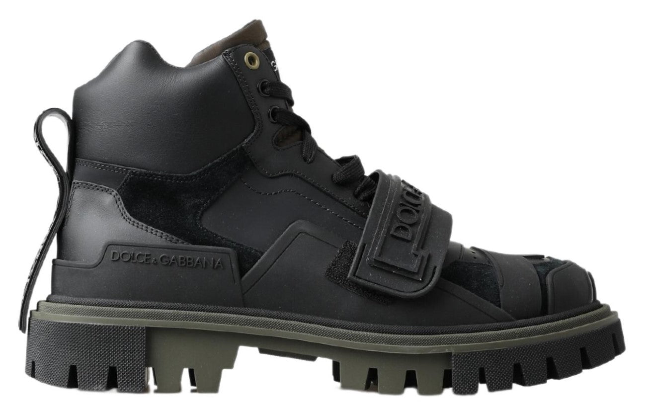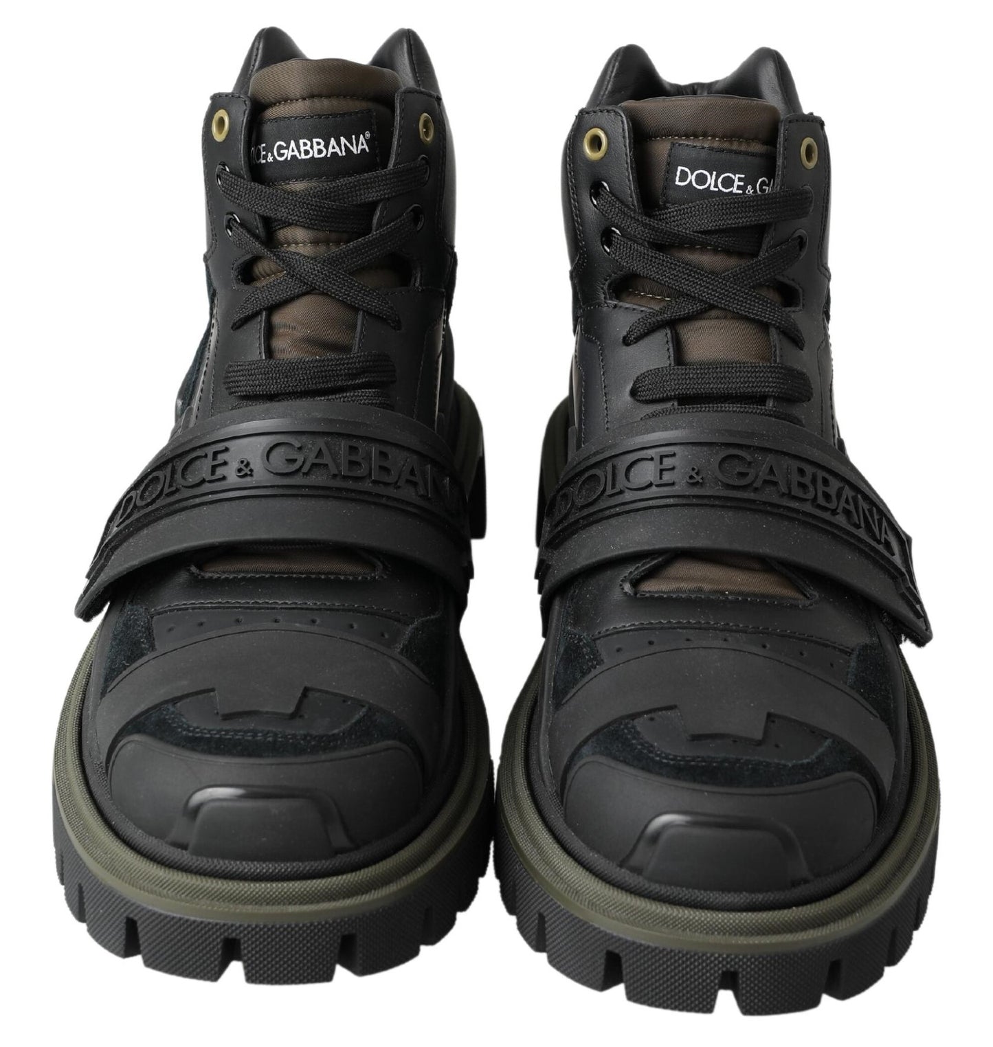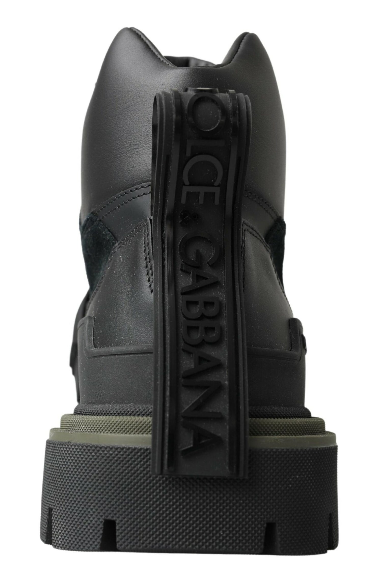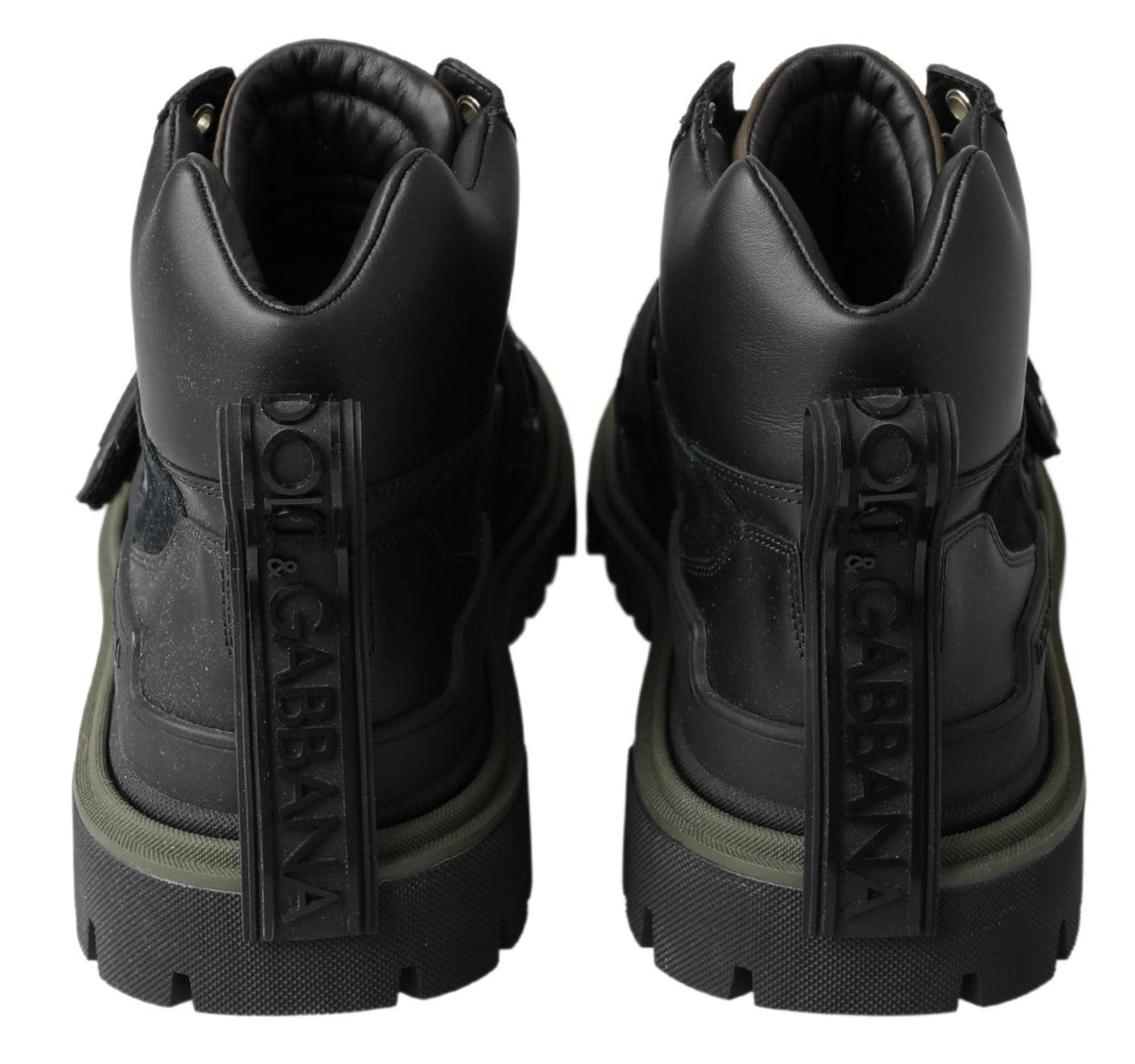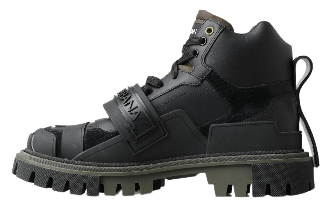 Step into luxury with these brand new, tag-attached authentic combat boots from Dolce & Gabbana. These finely crafted men’s boots are an epitome of style meets function, with an impressive black and military green color scheme. Designed for those who appreciate exquisite craftsmanship and want to add a touch of elegance to their footwear collection. Made in Italy, these boots are perfect for the discerning gentleman who demands both luxury and durability.