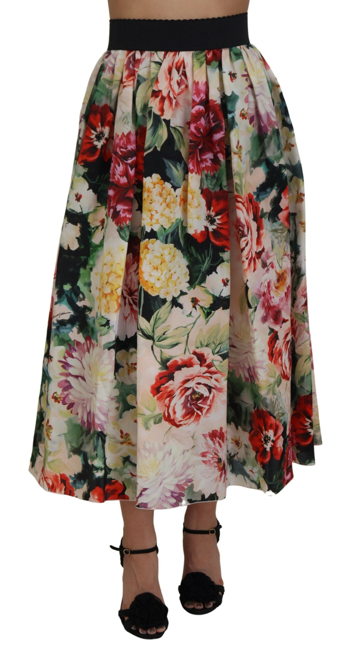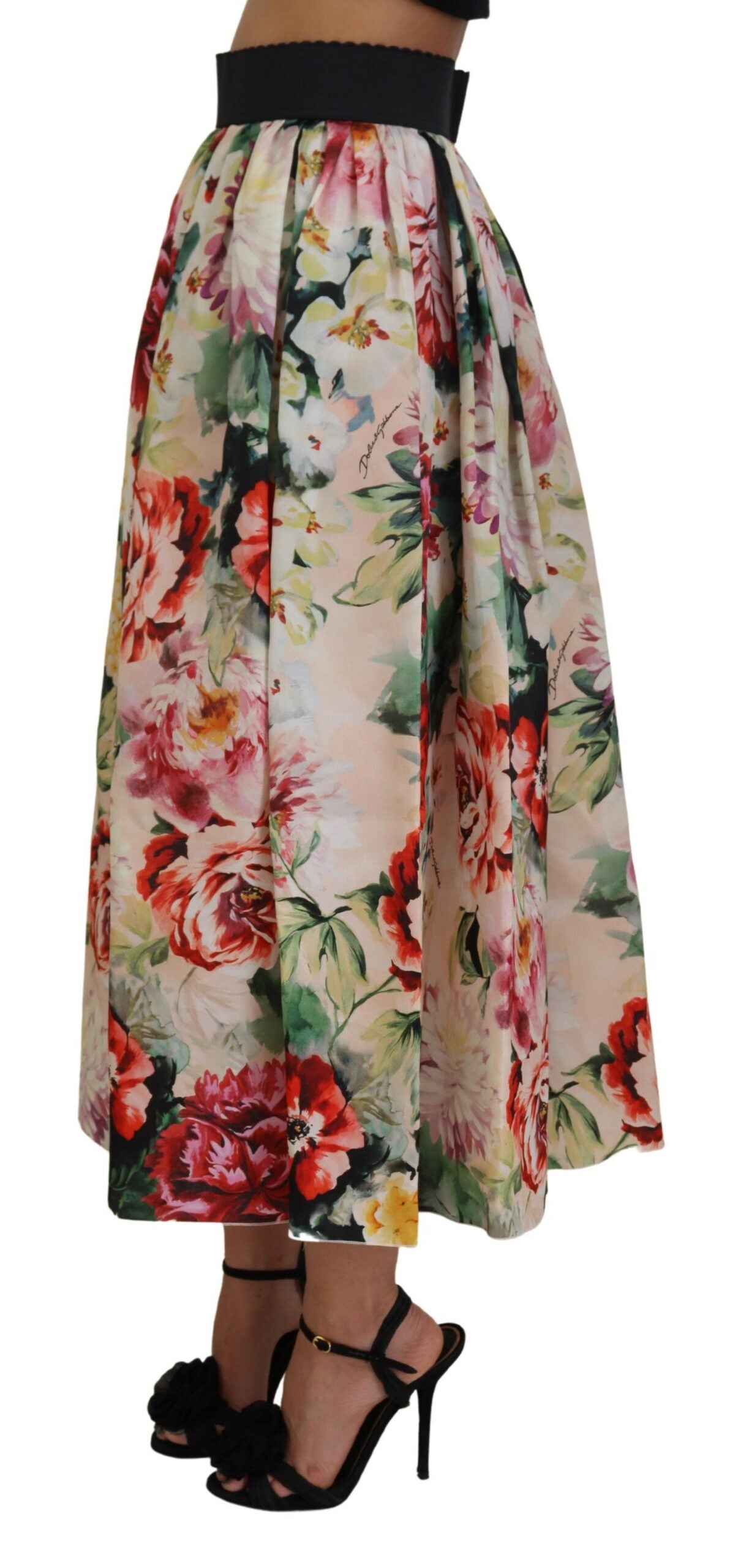 Indulge in the epitome of spring elegance with this gorgeous, brand new High Waist Floral Silk Midi Skirt. Impeccably crafted by the renowned fashion house, Dolce & Gabbana, this piece is a testament to fine Italian artistry and style. Featuring a vibrant multicolor floral pattern, this skirt is sure to captivate and charm at any event. Its high waist and graceful midi length offer a timeless silhouette, while the convenient zipper closure ensures a seamless fit. Pair it with a simple blouse for a classy daytime outfit or elevate it with heels for an enchanting evening look.