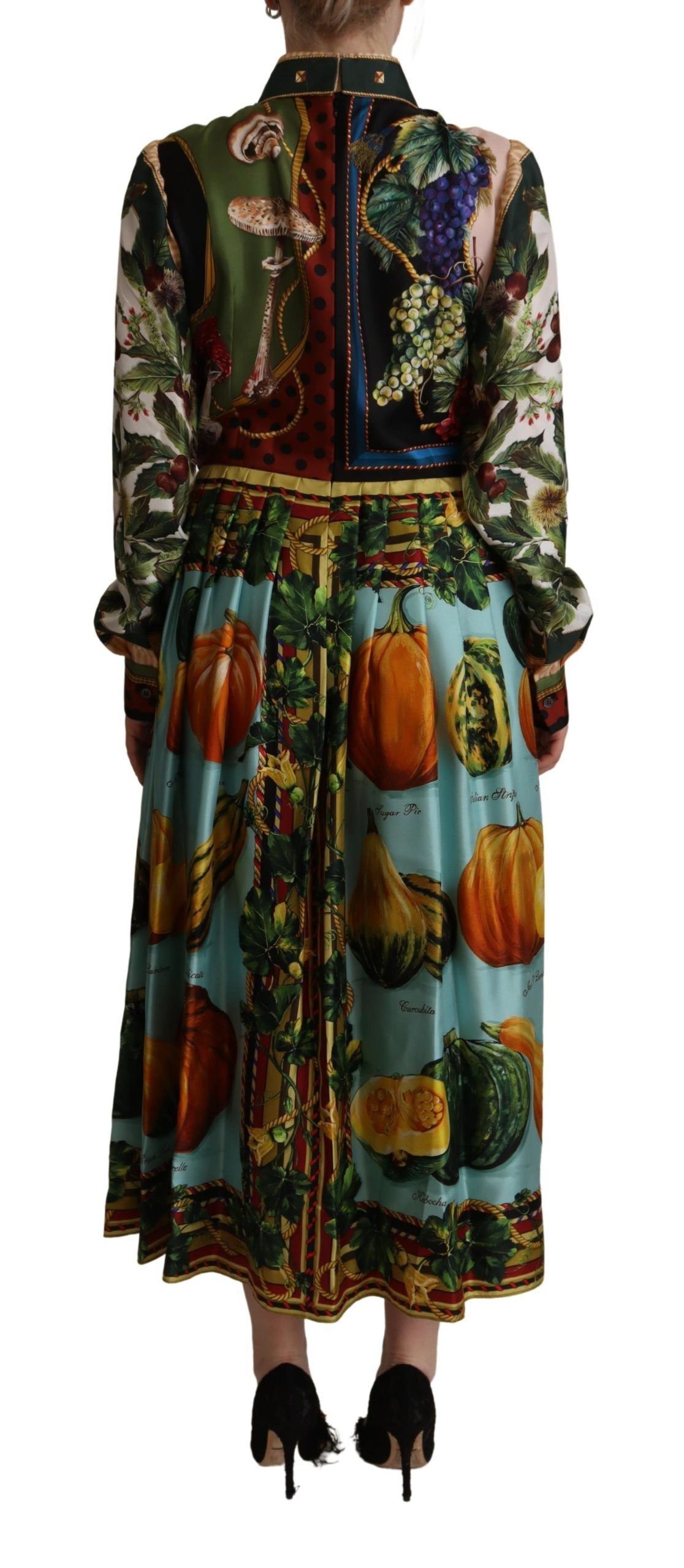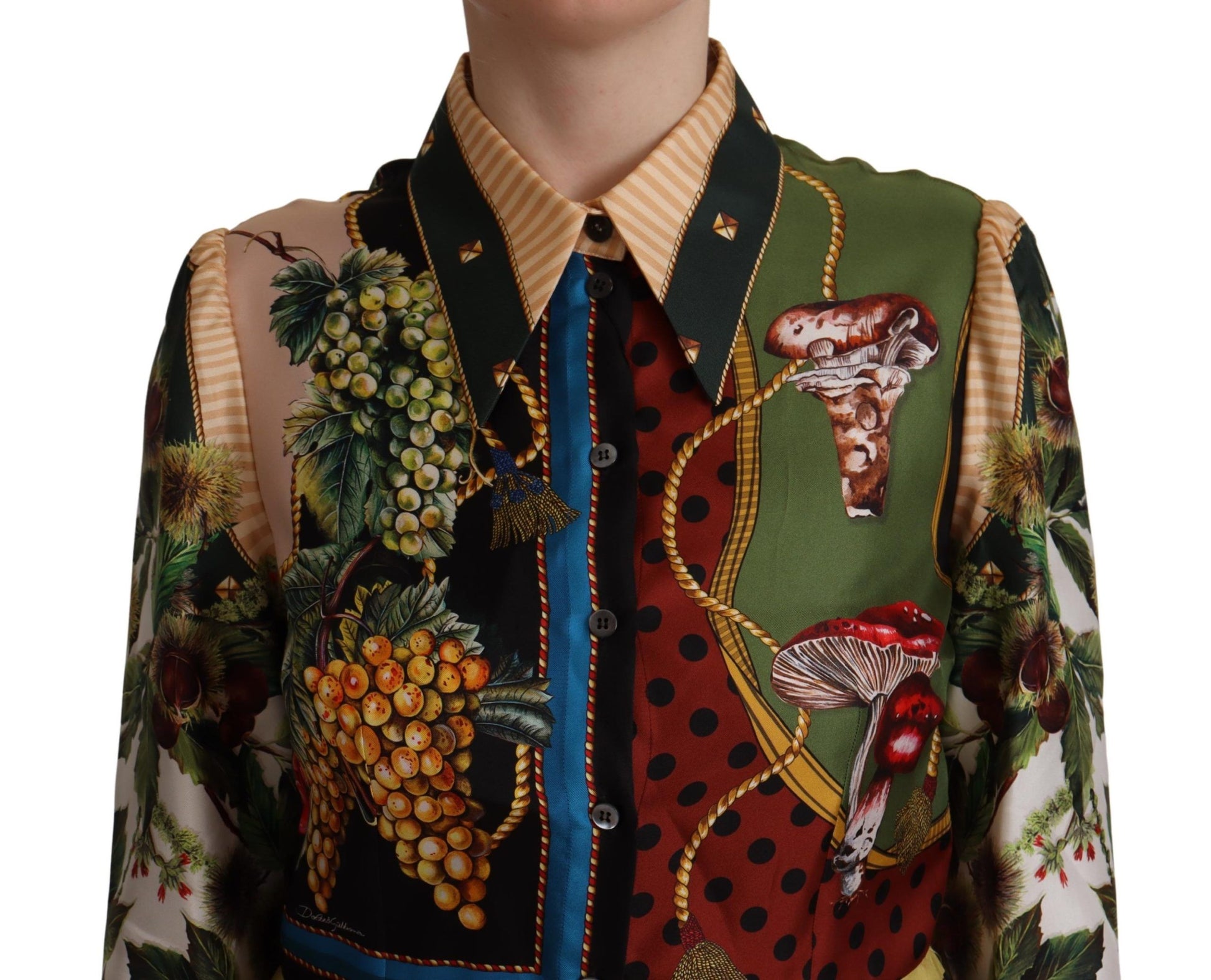 Discover the epitome of Italian luxury with this stunning Dolce & Gabbana long shirt dress. Featuring a vibrant multicolor fruit print, this piece is a testament to high fashion and timeless elegance. Perfectly crafted with the finest 100% silk, this dress guarantees a luxurious feel and an exquisite look for any sophisticated occasion. Impeccable tailoring and attention to detail are hallmarks of this gorgeous garment, which is proudly made in Italy. With its convenient zipper closure and distinctive logo details, this dress is a true representation of the Dolce & Gabbana spirit.