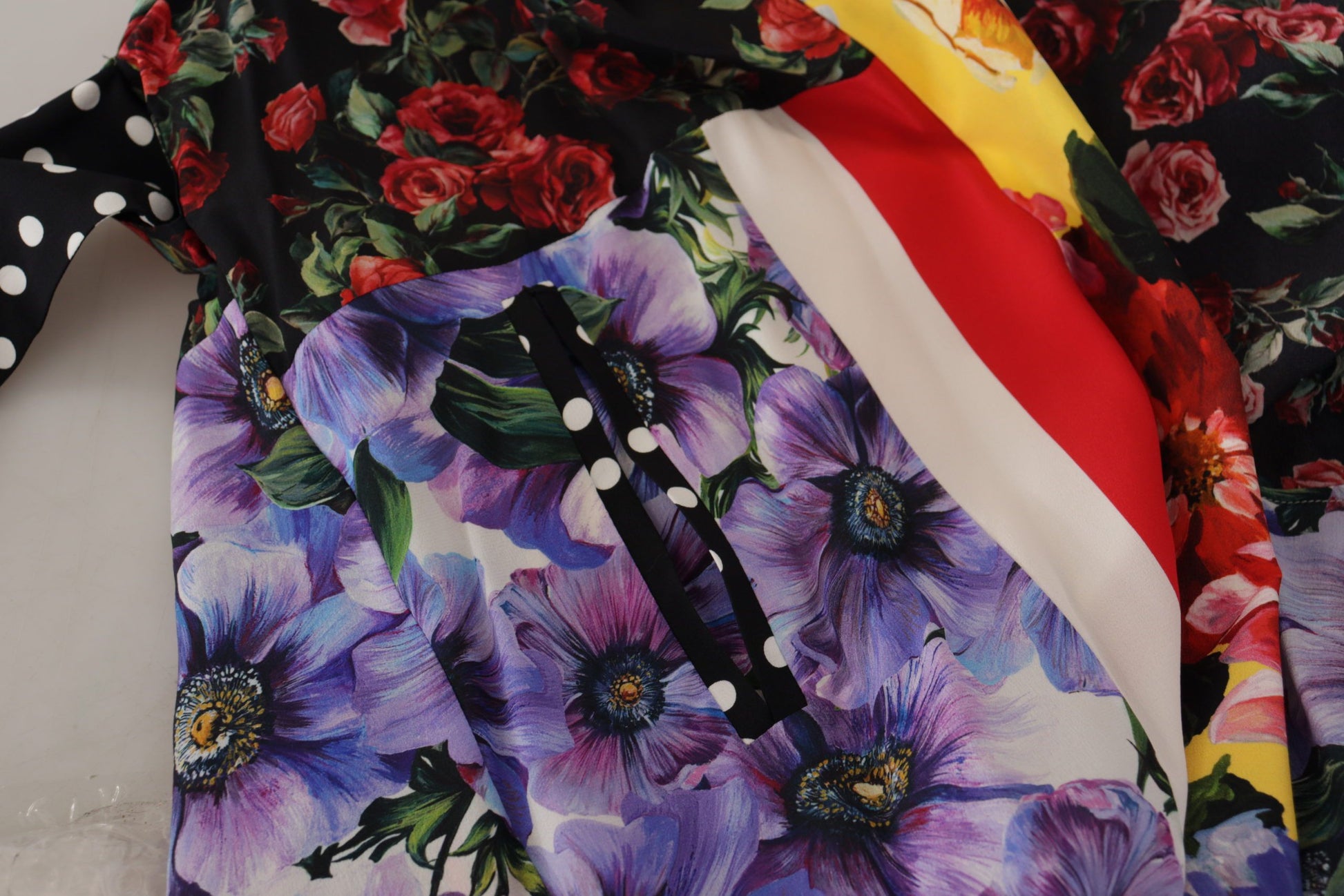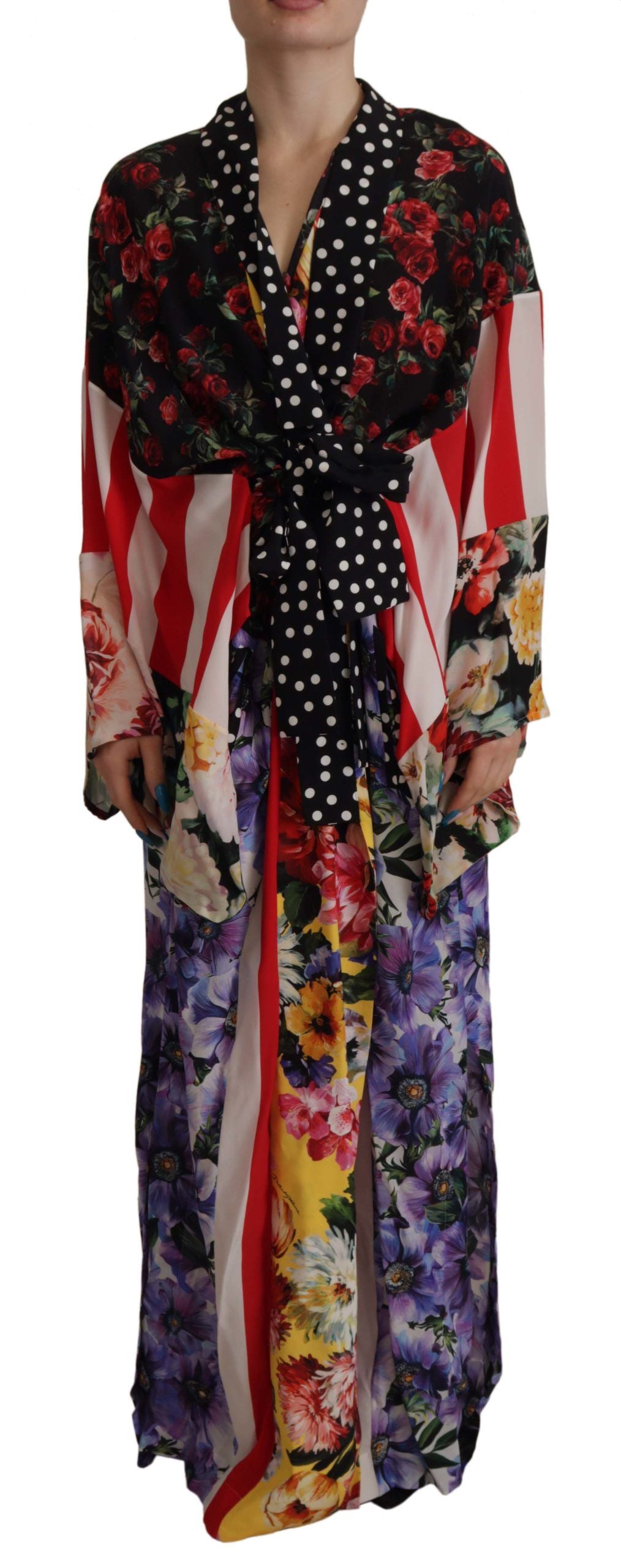 Redefine luxury loungewear with this 100% Authentic Dolce & Gabbana Kaftan Robe. This stunning multicolor patchwork design merges comfort with high-end fashion, reflecting Dolce & Gabbana’s trademark for exclusivity and Italian craftsmanship. Its sumptuous silk material swathes you in elegance, perfect for those who demand both style and comfort. Adorned with logo details, it’s the ultimate statement piece for your sophisticated wardrobe.