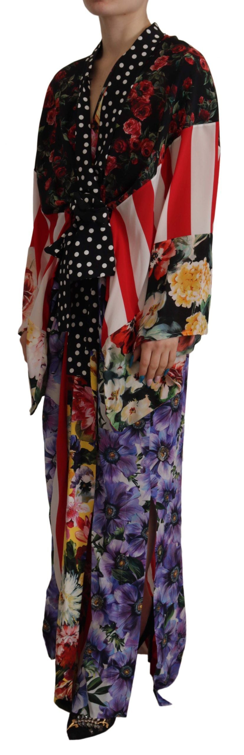 Multicolor Patchwork Silk Kaftan Robe