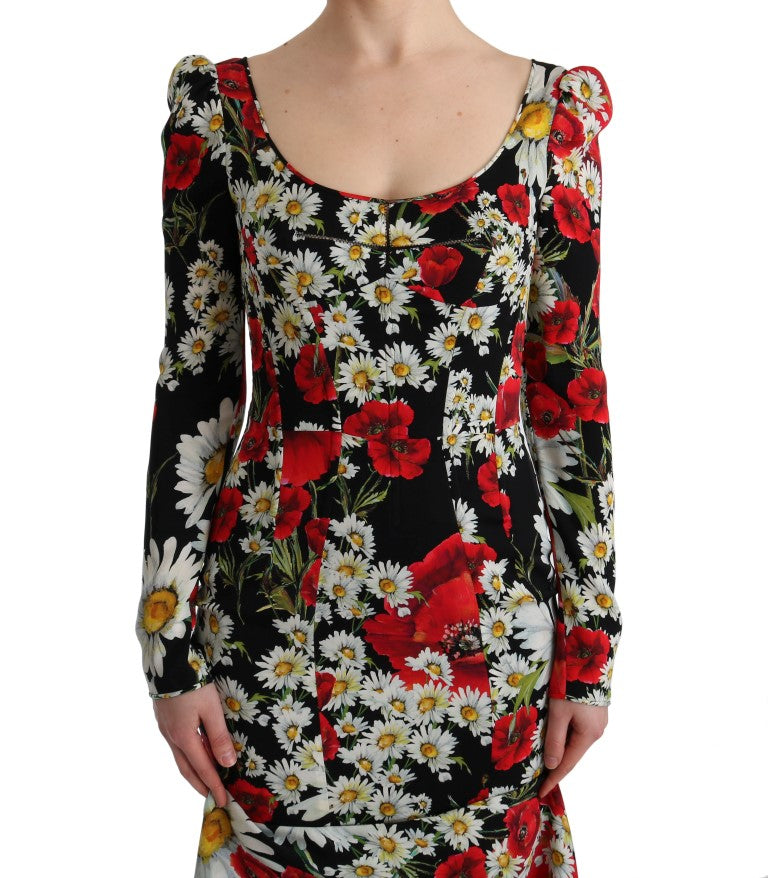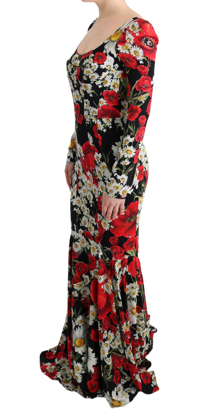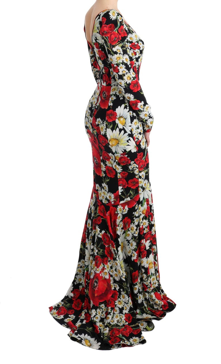 Glamour meets elegance in this stunning full-length Sheath dress by Dolce & Gabbana. Adorned with a captivating multicolor floral print, the design is not only a visual feast but also a testament to Italian craftsmanship. A black stretch silk inner lining ensures a comfortable fit while enhancing the garment’s exquisite silhouette. The dress features a full zipper closure and an integrated corset to accentuate the figure, complemented by subtle logo details for an extra touch of luxurious identity.