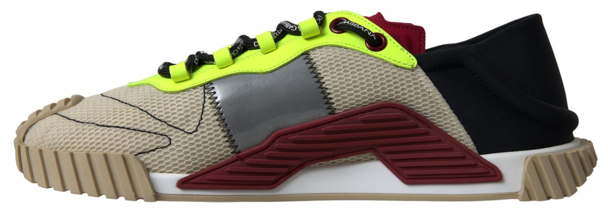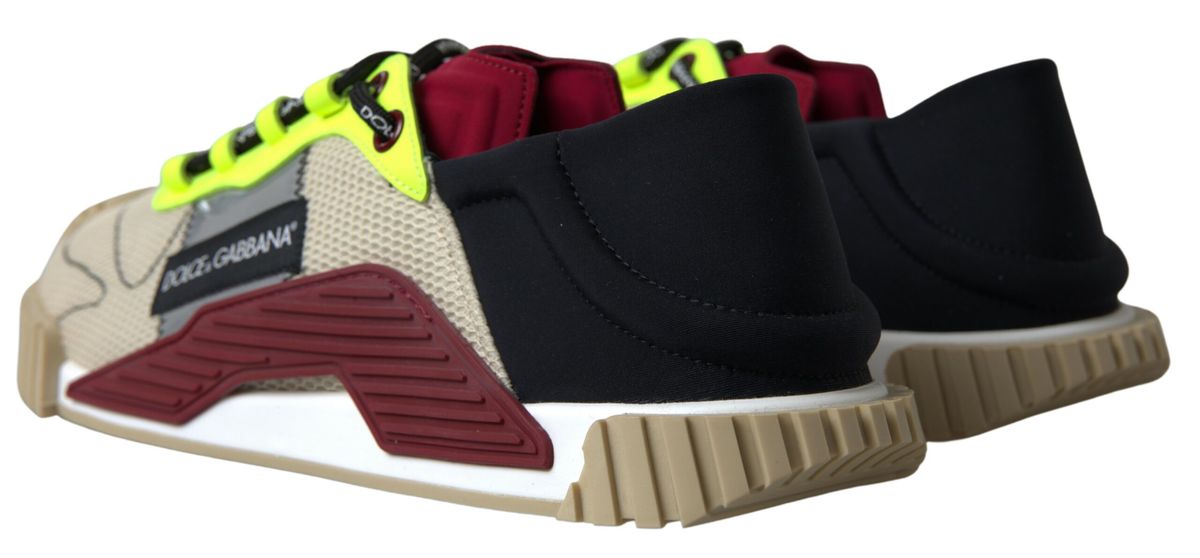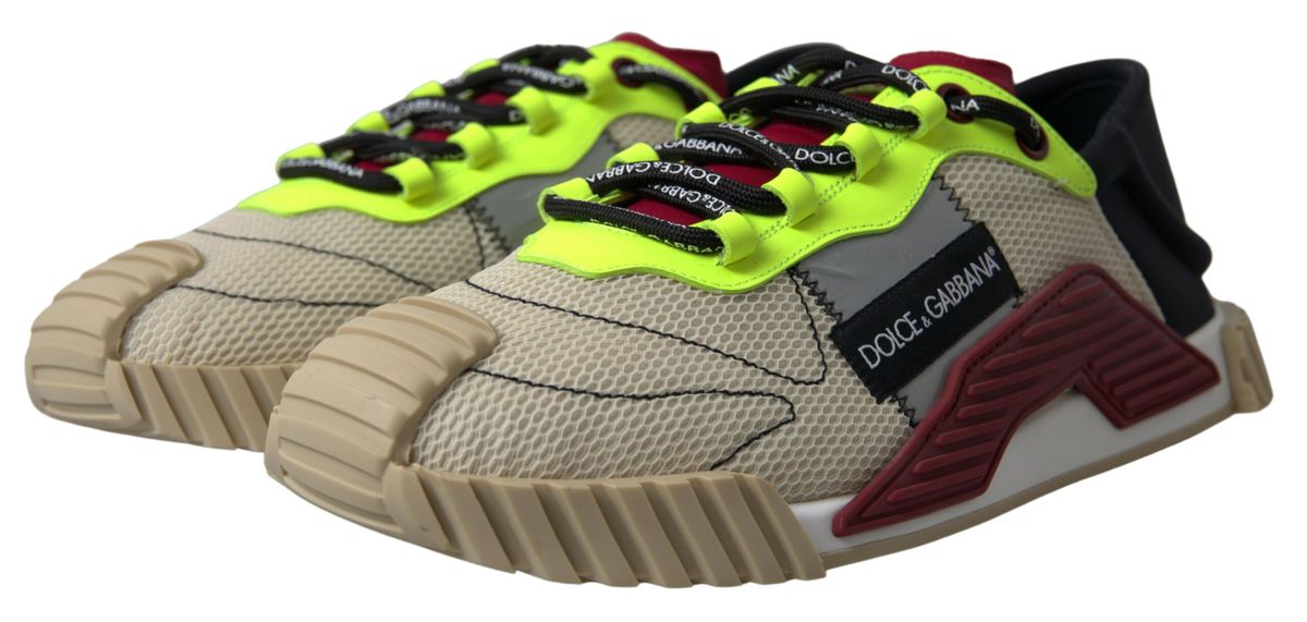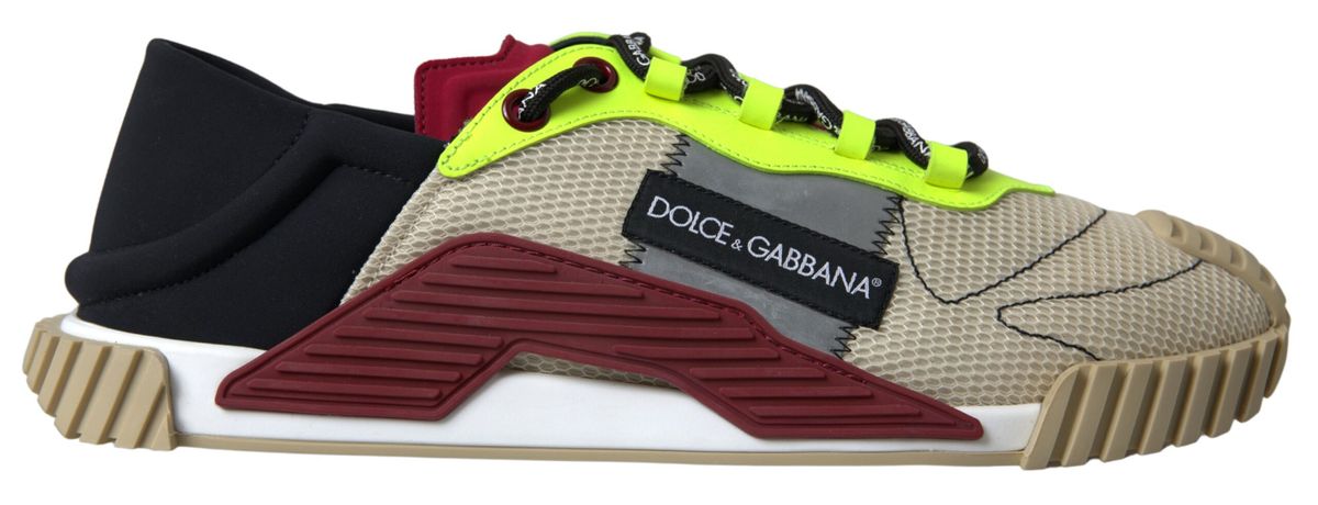 Step into vibrant elegance with these 100% Authentic Dolce & Gabbana NS1 sneakers. These eye-catching shoes are brand new with tags, ensuring the highest quality and latest design from the renowned fashion house. The multicolored pattern is bold and stylish, perfect for fashion-conscious individuals looking to make a statement. Crafted with a blend of materials and boasting a comfortable rubber sole, these sneakers are both durable and fashionable. The detailed logo adds a touch of luxury to your everyday footwear. Made in Italy, these shoes are a testament to premium craftsmanship.
