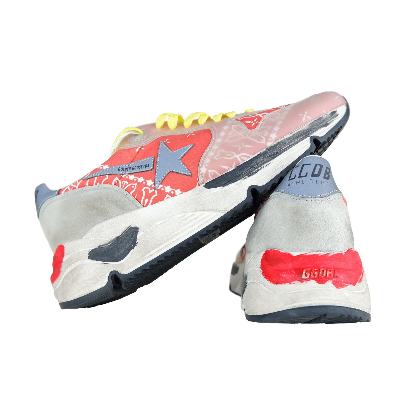 Step into effortless style with these high-top sneakers crafted from premium suede calfskin. Adorned with canvas featuring vibrant prints and sleek transparent plastic segments for a unique twist. The reflective grey star logo adds an understated yet signature touch. Built for comfort and durability, they boast a classic rubber sole, offering both comfort and style. Designed and manufactured in Italy, these sneakers embody luxury and craftsmanship.