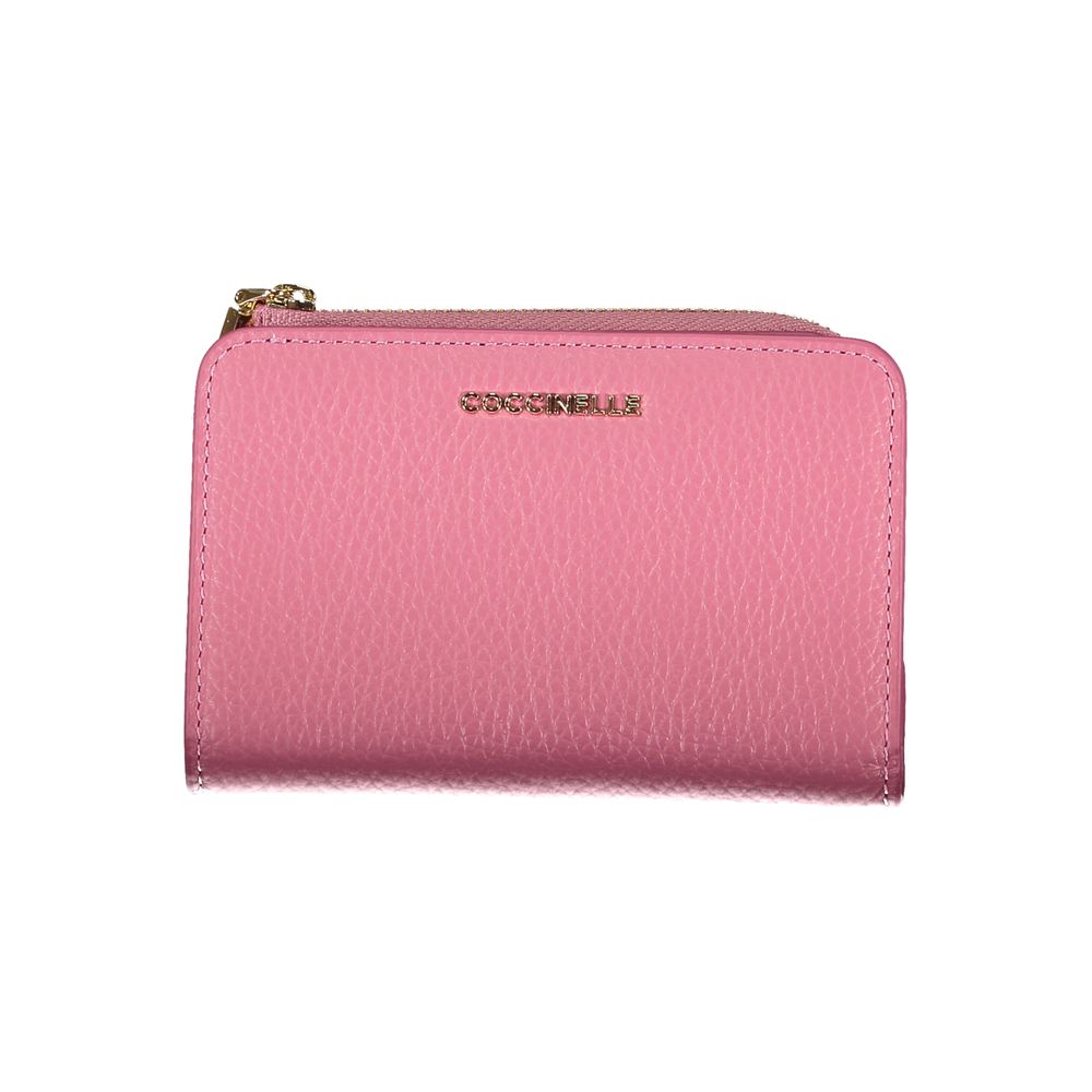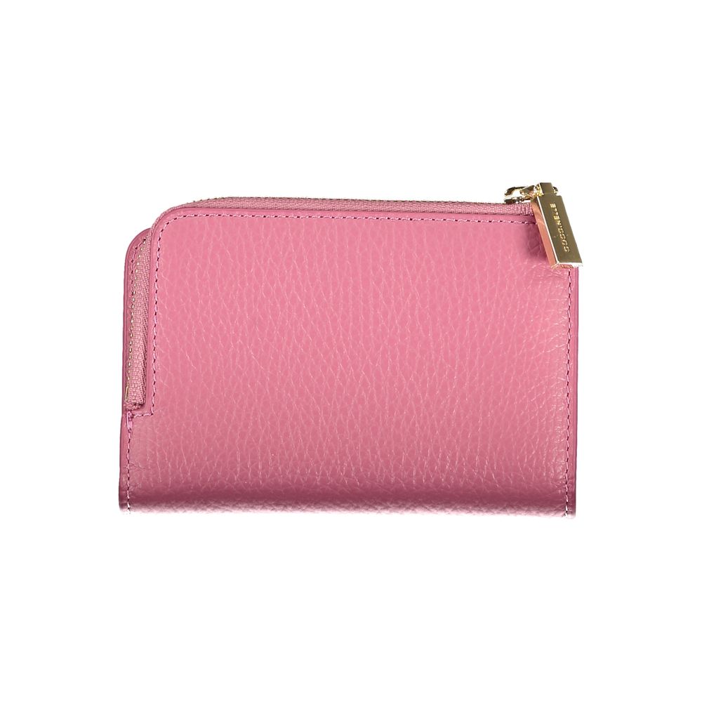 Experience the perfect blend of functionality and style with the Coccinelle leather wallet, boasting ample space for your cards and coins. This pink wallet is designed to keep your essentials secure with its zip and automatic closure, adorned with a subtle logo for an added touch of elegance.