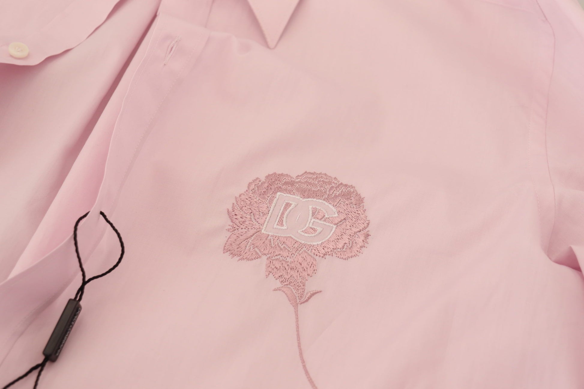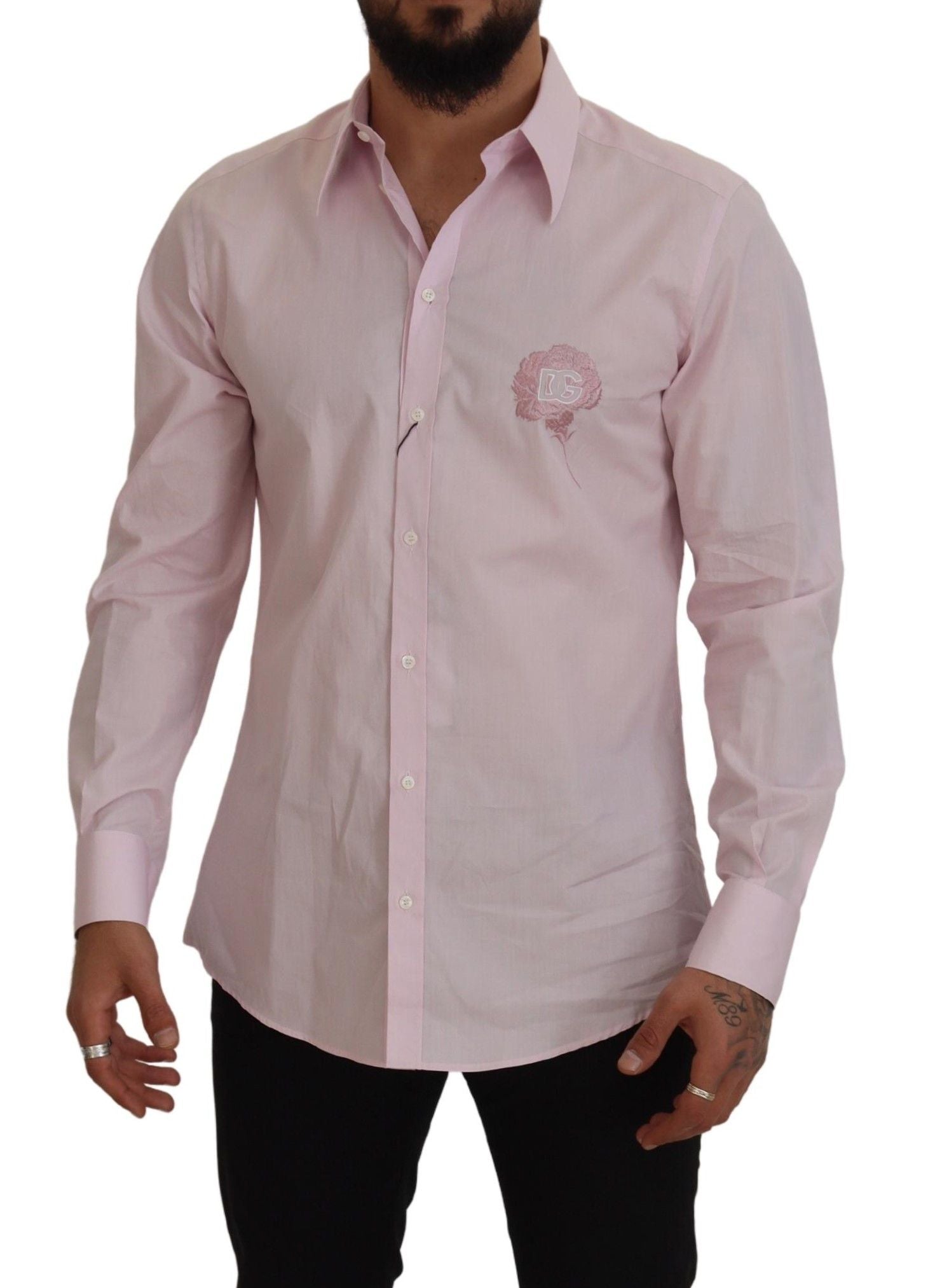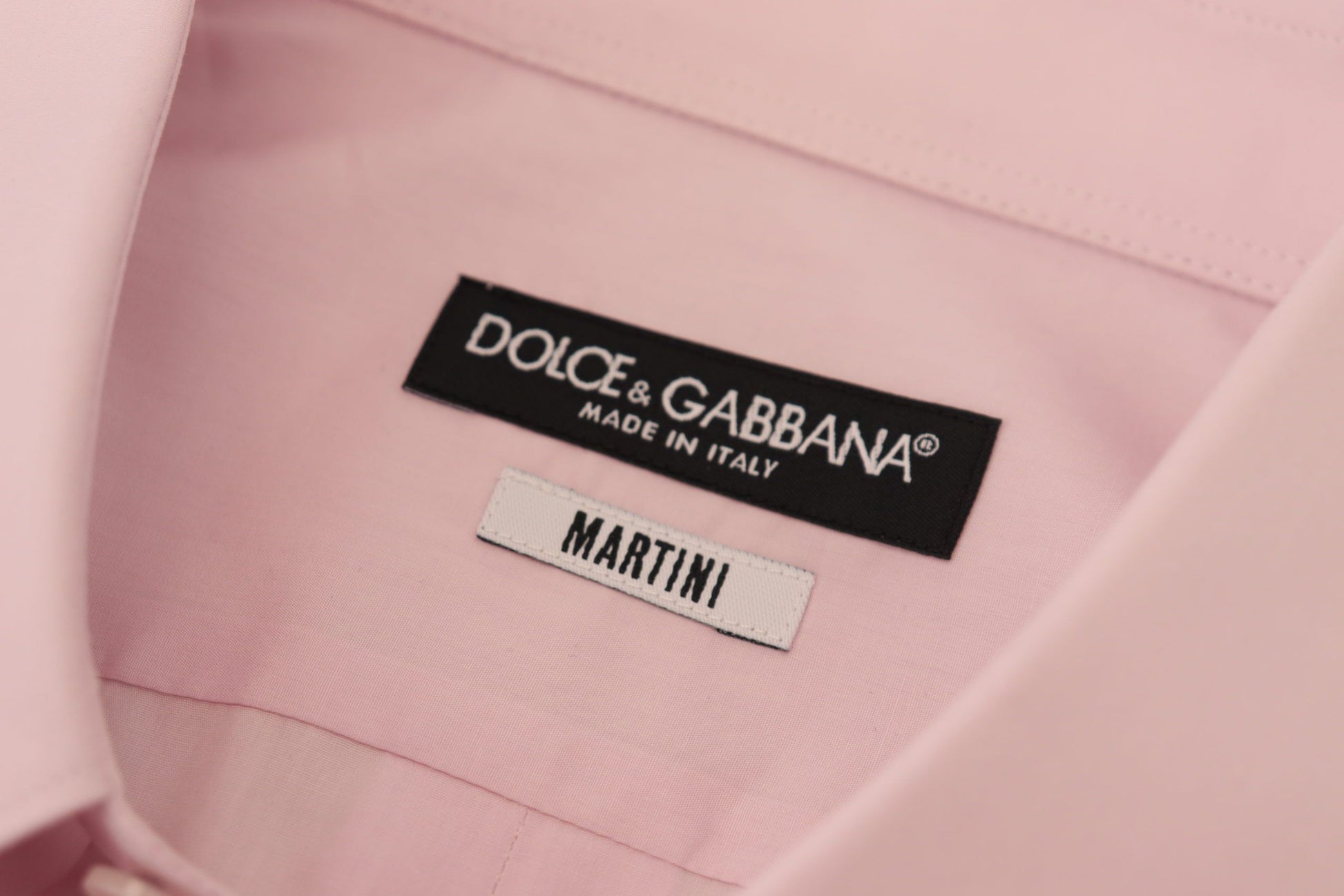 Indulge in the epitome of sophistication with our stunning Dolce & Gabbana shirt, perfect for the modern connoisseur of high fashion. This piece features a suave MARTINI fit, complemented by a sharp spread collar and pristine one-button cuffs. Crafted from premium 100% cotton, it ensures a sleek and comfortable slim fit. The elegant pink hue is accentuated with distinctive logo embroidery, adding a touch of luxury. Expertly tailored in Italy, this shirt promises to be a mainstay in your wardrobe.