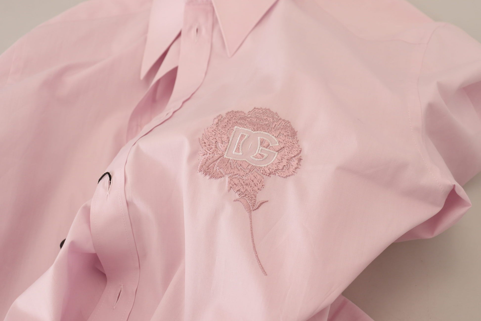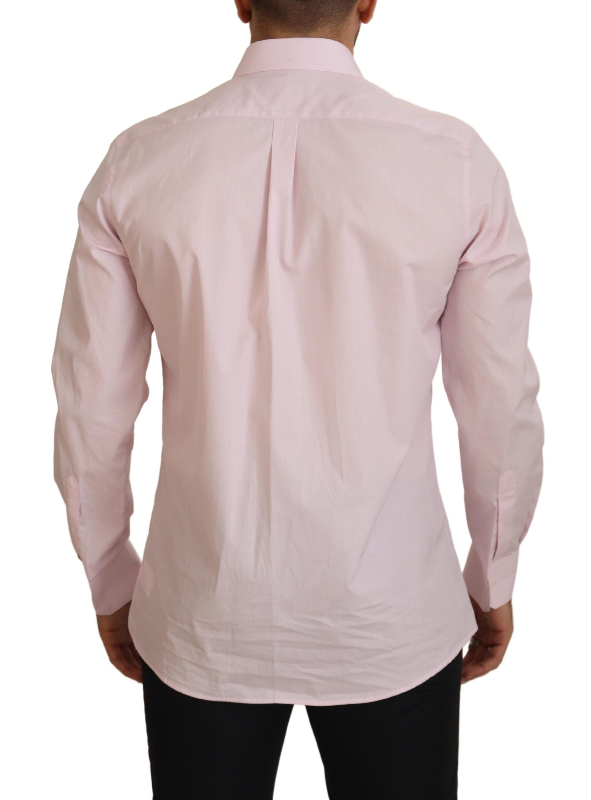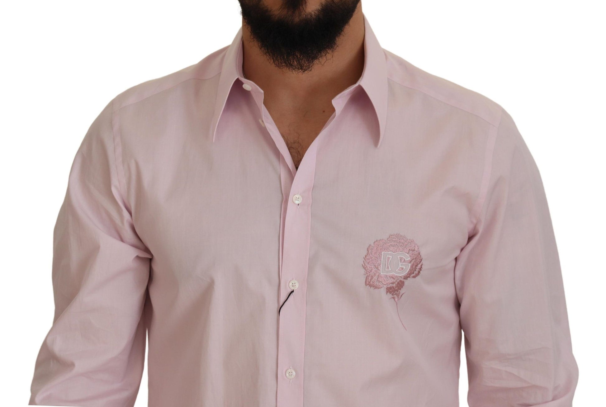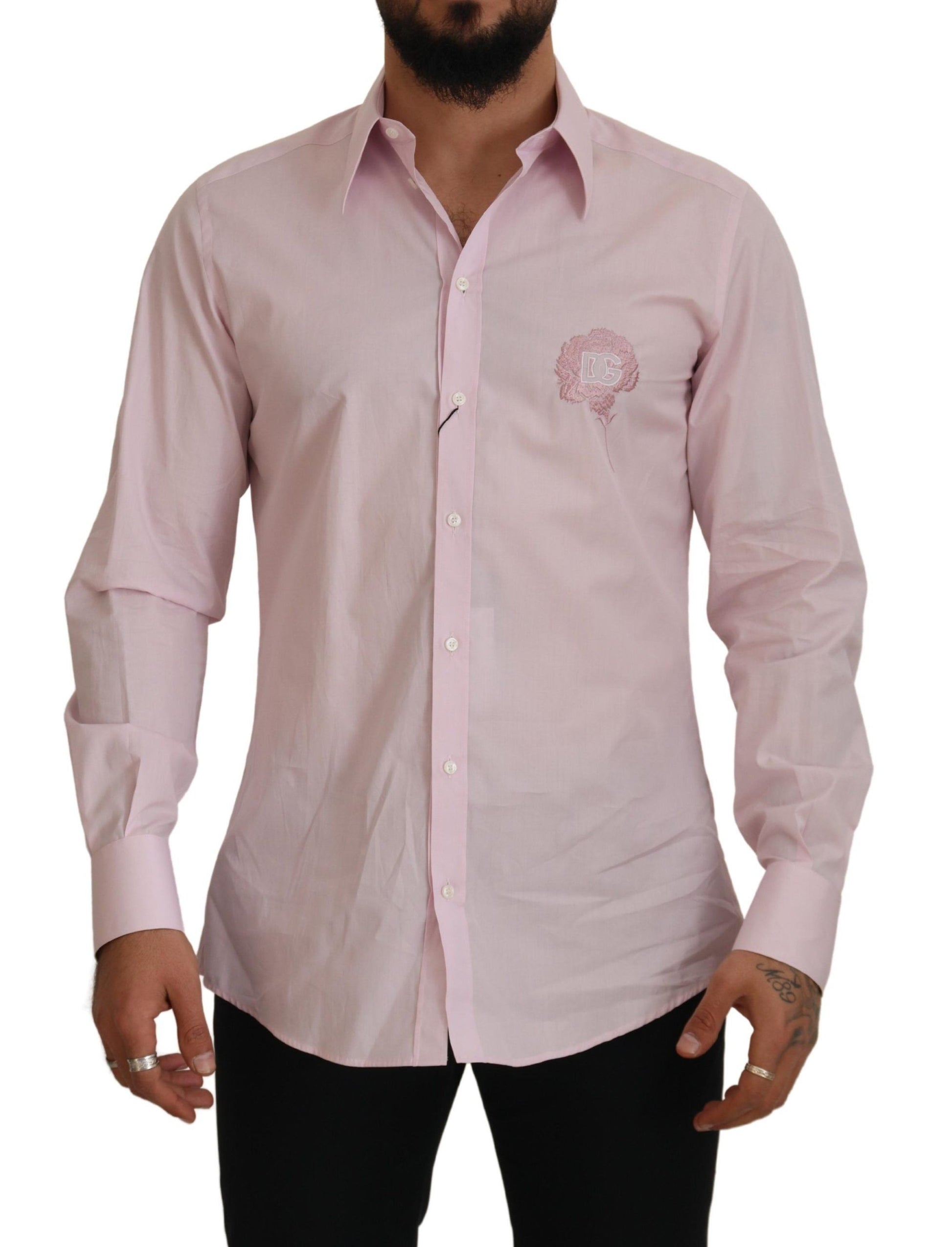 Indulge in the epitome of sophistication with our stunning Dolce & Gabbana shirt, perfect for the modern connoisseur of high fashion. This piece features a suave MARTINI fit, complemented by a sharp spread collar and pristine one-button cuffs. Crafted from premium 100% cotton, it ensures a sleek and comfortable slim fit. The elegant pink hue is accentuated with distinctive logo embroidery, adding a touch of luxury. Expertly tailored in Italy, this shirt promises to be a mainstay in your wardrobe.