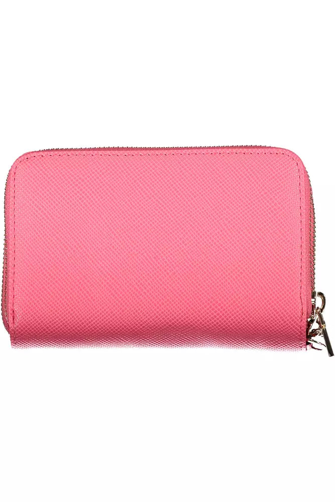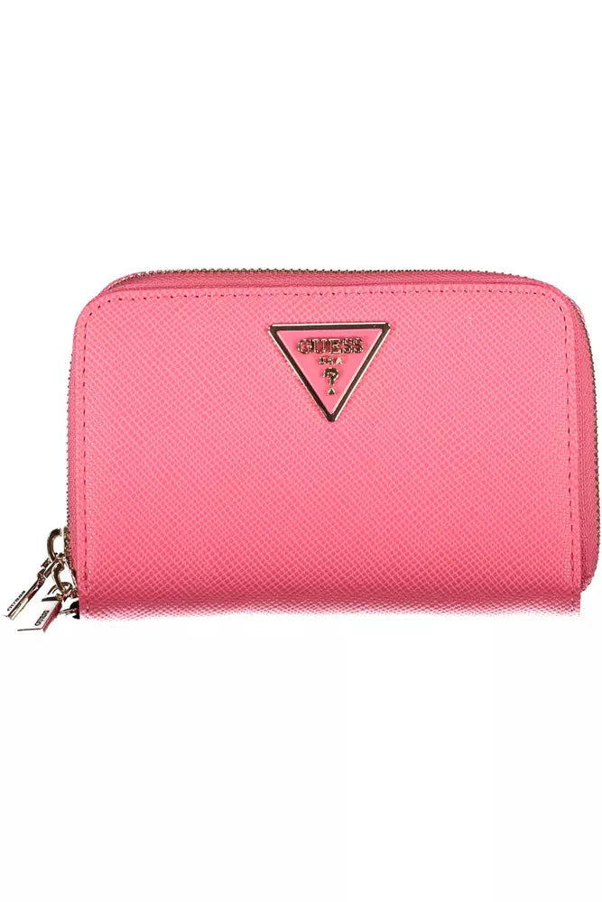 Experience elegance and functionality with this exquisite Guess Jeans pink wallet, perfect for the style-conscious individual. It features two spacious compartments, a central coin pocket for your change, numerous card slots to keep your credit and business cards organized, and a secure zip closure to safeguard your valuables. The removable puller adds a touch of versatility, while the contrasting details provide an air of sophistication. Crafted from durable polyethylene, this wallet is as resilient as it is chic.