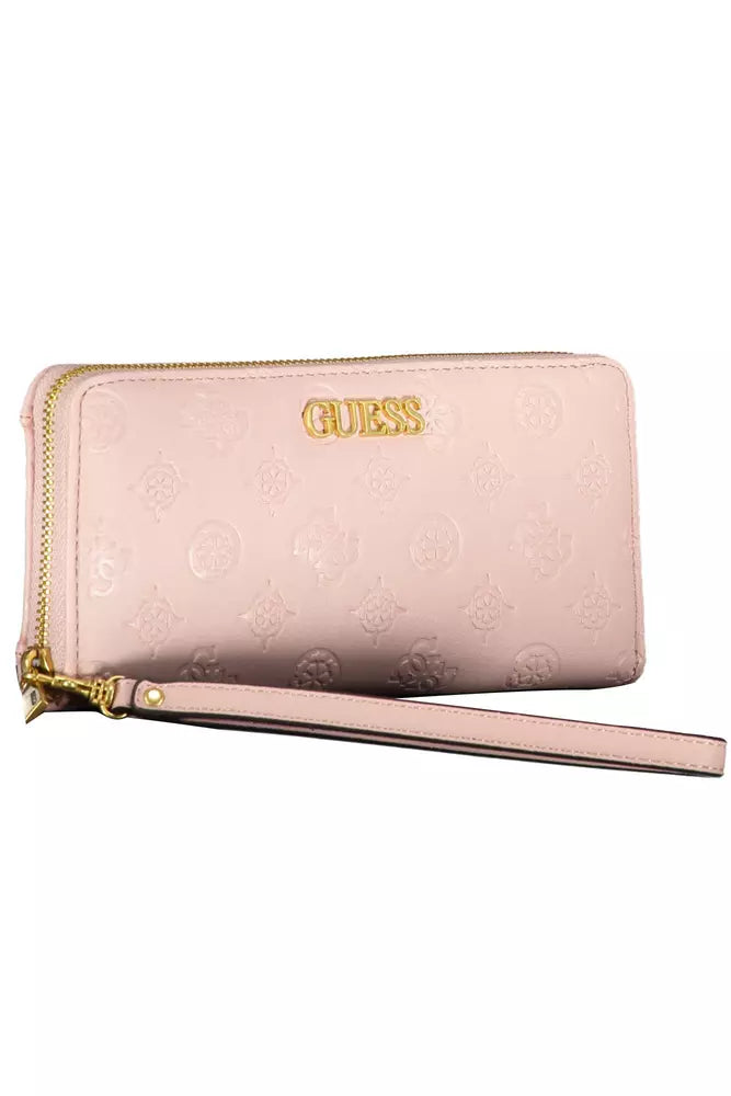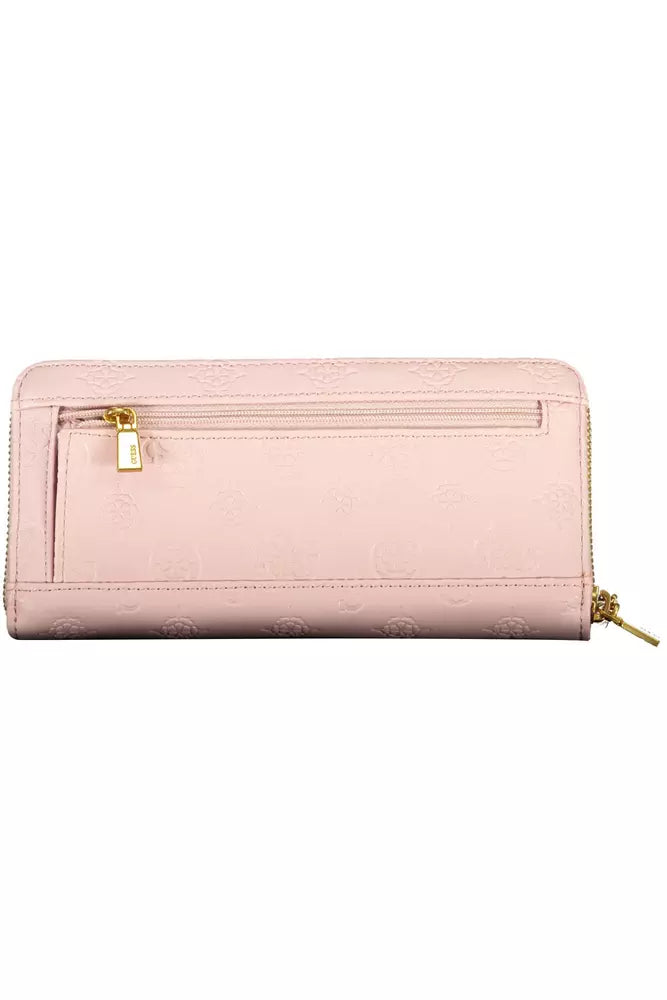 Experience the perfect blend of style and functionality with this chic pink wallet from Guess Jeans. Designed with practicality in mind, it offers five compartments, a coin purse to keep your change organized, and double spaces for your numerous cards. An external pocket adds convenience, while the contrasting details and the iconic logo application infuse an air of sophistication to your accessory collection.