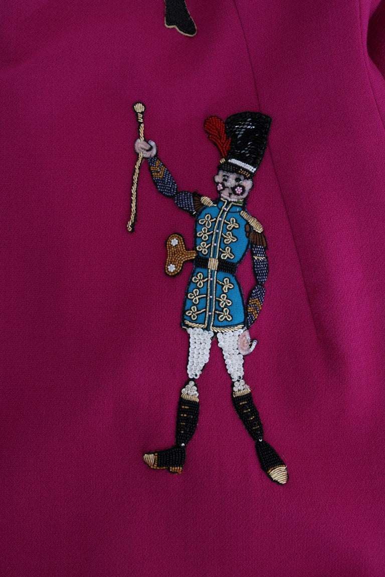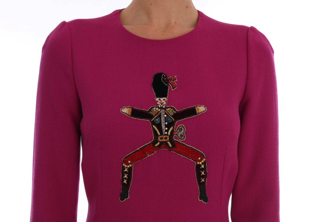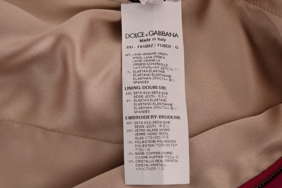 Indulge in the sheer elegance of the Dolce & Gabbana Pink Wool Stretch Sequined Pupi di Teatro embroidery dress. With its striking pink hue and intricate sequined embroidery, this dress is a true wardrobe masterpiece. Designed with a 3/4 sleeve and a flattering A-line cut, it offers both comfort and style. Its luxurious silk stretch lining ensures a seamless fit. Perfect for exclusive events where high craftsmanship is appreciated. Made with love in Italy, this dress will make you the envy of any high-fashion occasion.