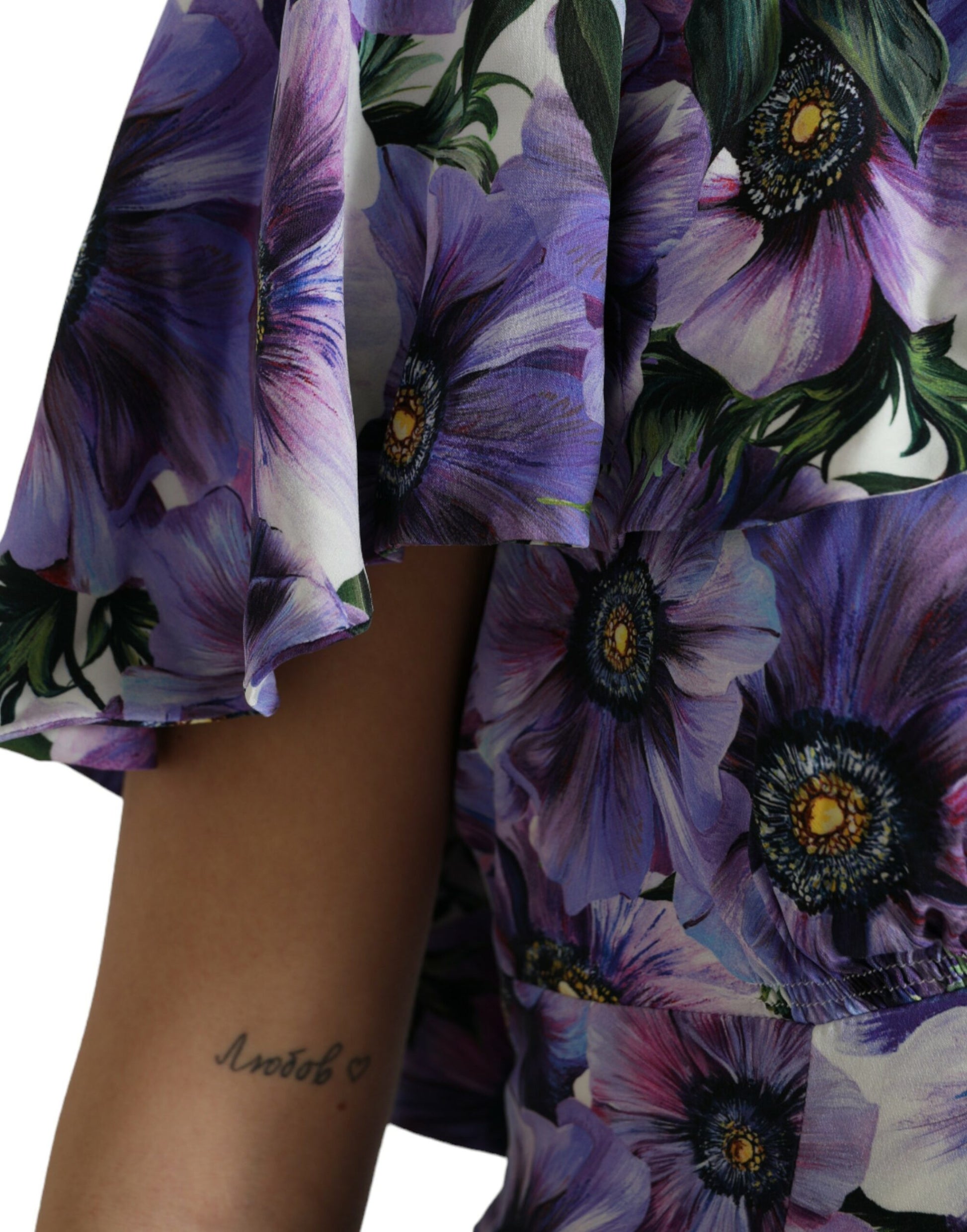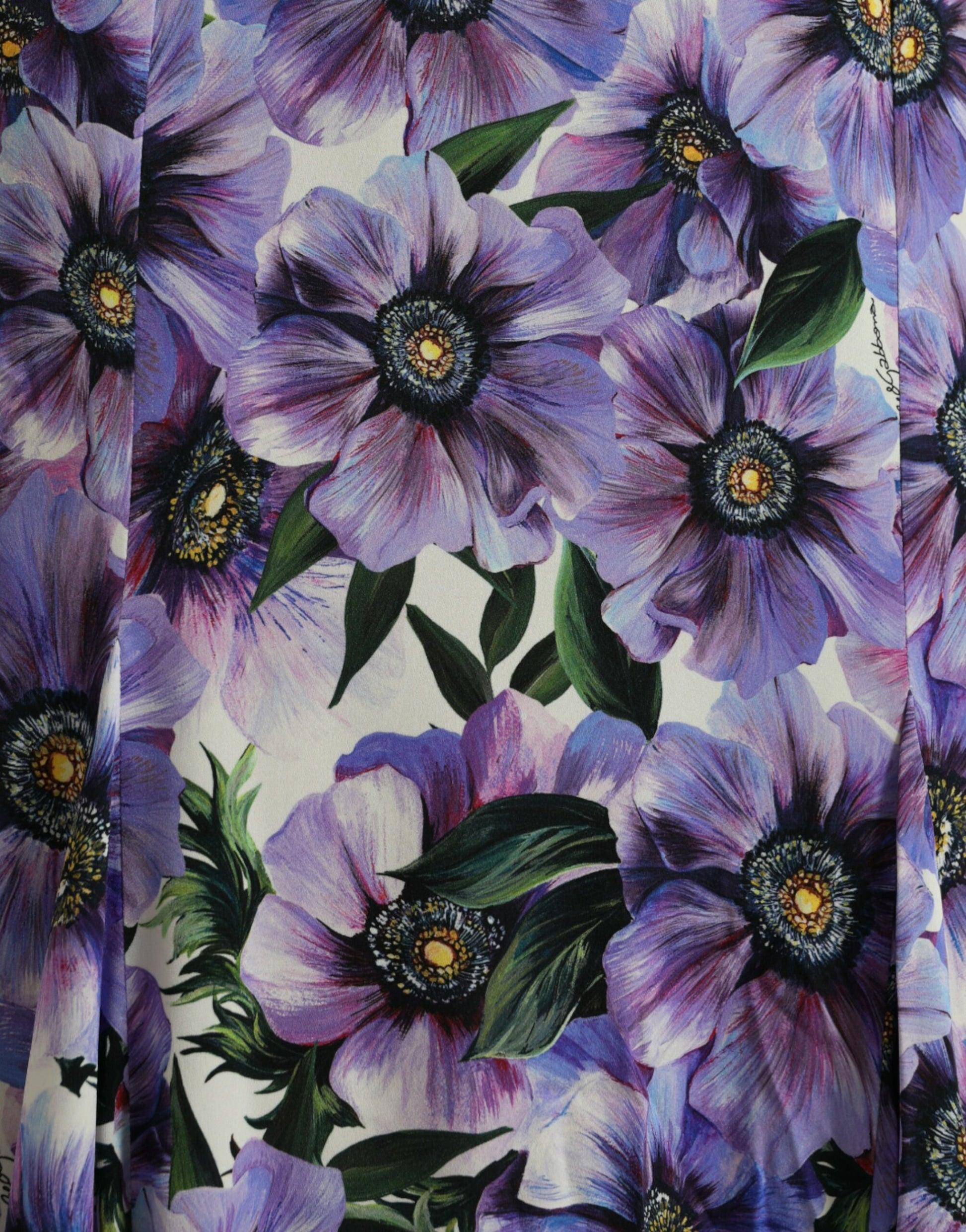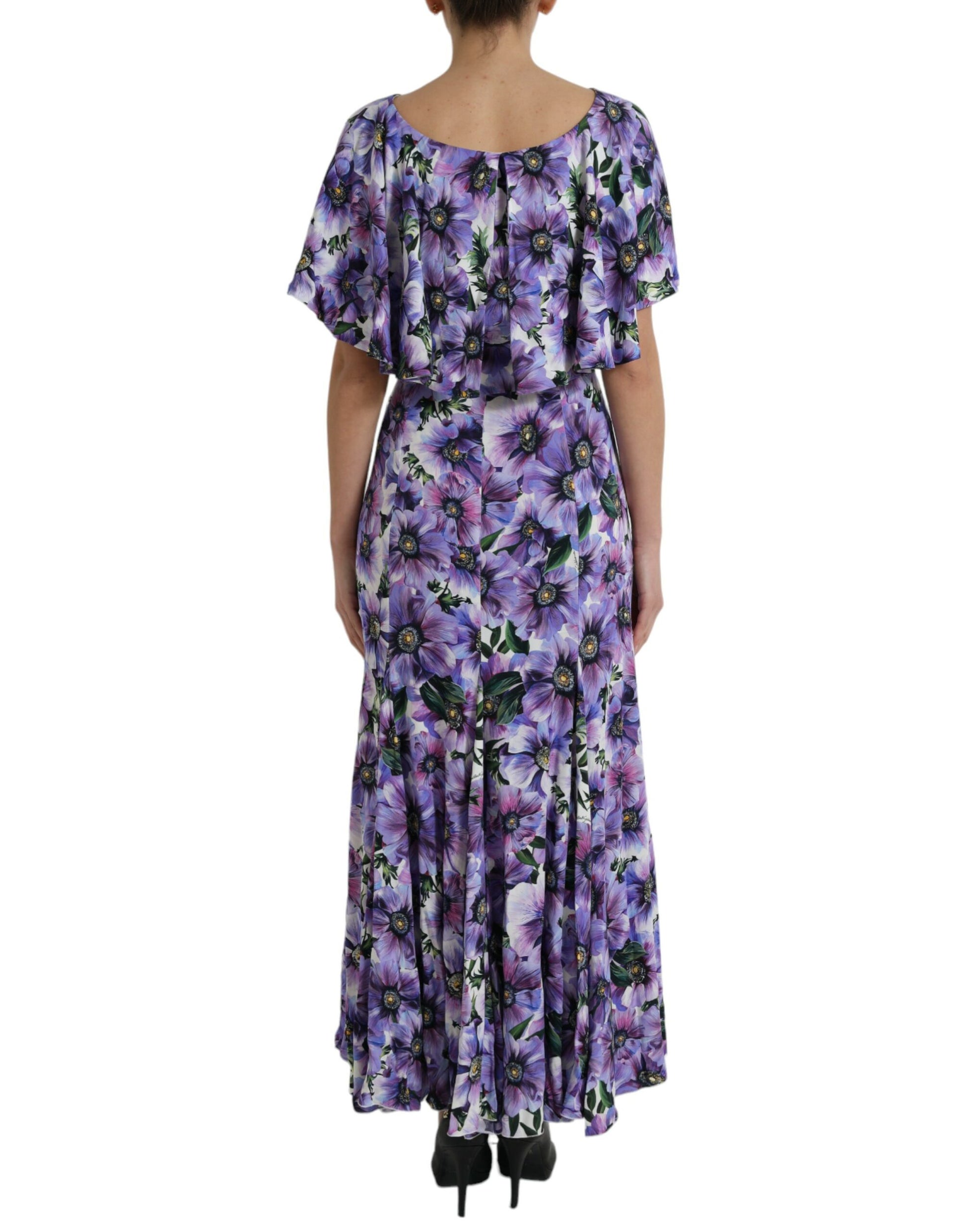 Purple Anemone Print Silk Aline Maxi Dress