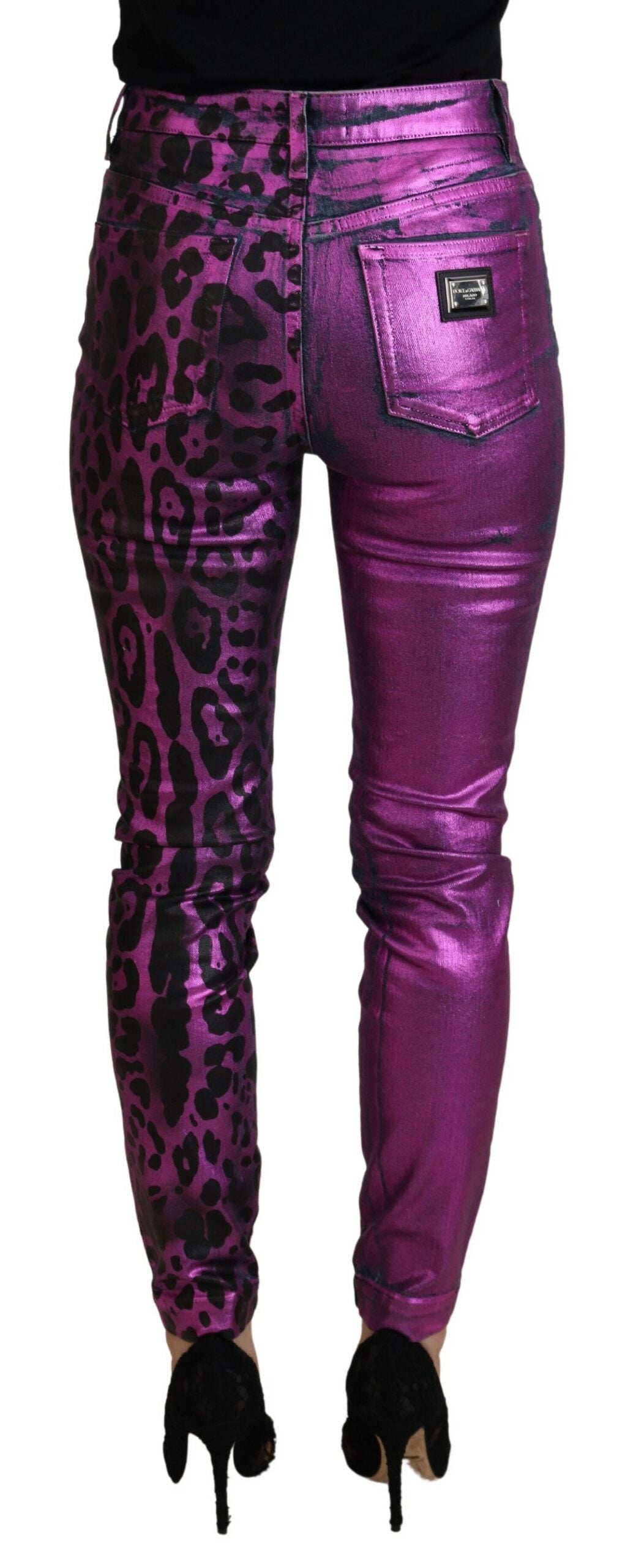 Enhance your denim collection with a touch of Italian luxury. These high waist, slim-fit jeans from Dolce & Gabbana are a wardrobe essential, boasting a rich purple hue that is both versatile and on-trend. Crafted with precision, they offer a flattering silhouette and the perfect stretch for comfort, thanks to the high-quality cotton blend with a hint of elastane. Complete with the brand’s signature logo details, these jeans are an authentic choice for those who adore premium craftsmanship and style. Made in Italy, they are a quintessential Dolce & Gabbana piece ideal for fashion-forward individuals.