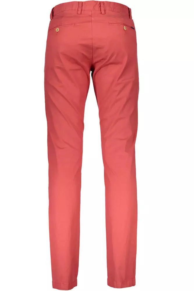 Step into style with Gant’s sleek red 5-pocket trousers, perfectly blending comfort with elegance. Their slim-fit cut ensures a sharp silhouette, making them an ideal choice for both casual and semi-formal settings. Expertly crafted with a blend of cotton and elastane, these trousers offer the perfect stretch for all-day wear without sacrificing a tailored look. The button and zip fastening provide a secure fit, while the subtle logo detail adds a touch of branded sophistication.