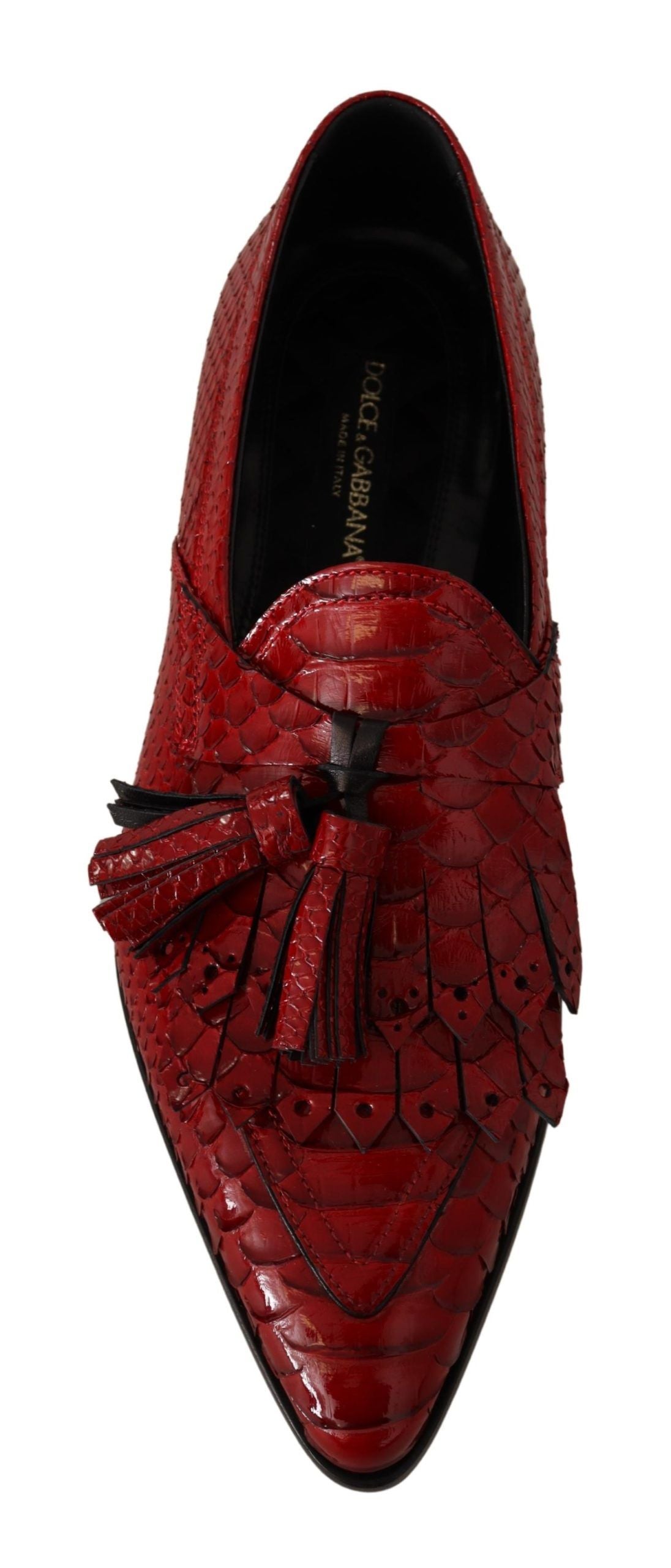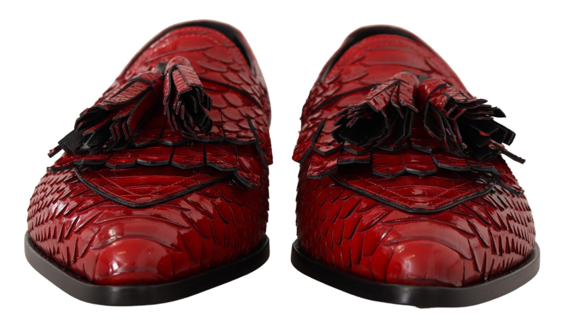Indulge in the opulence of high craftsmanship with these striking formal slide shoes, presented by the prestigious Dolce & Gabbana. These brand new, tagged masterpieces shine in a vibrant red and are crafted from the finest exotic leather, perfect for those who appreciate luxury and style. Designed in Italy, they boast a classic yet bold look, complete with the iconic logo detail and a sleek leather outer sole that promises elegance with every step.