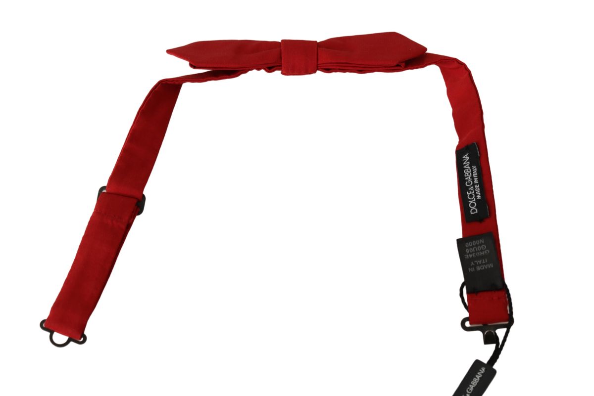 Immerse in the luxury of Italian craftsmanship with this exquisite Dolce & Gabbana bow tie. Perfect for adding a pop of color and sophistication to your ensemble, this 100% silk bow tie in vibrant red exudes charm and elegance. With an adjustable neck strap to ensure a perfect fit, this accessory is a must-have for any distinguished gentleman’s wardrobe.