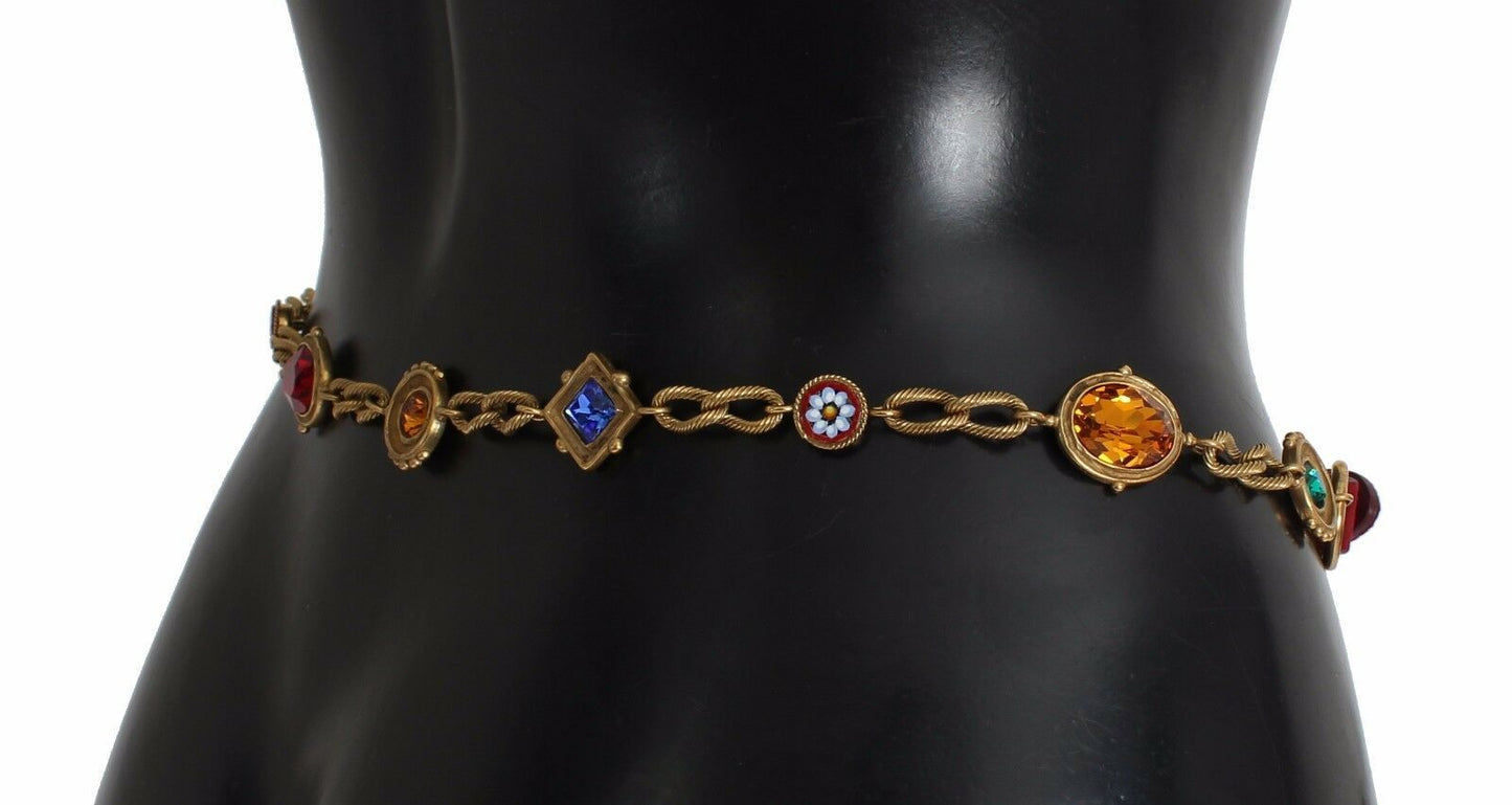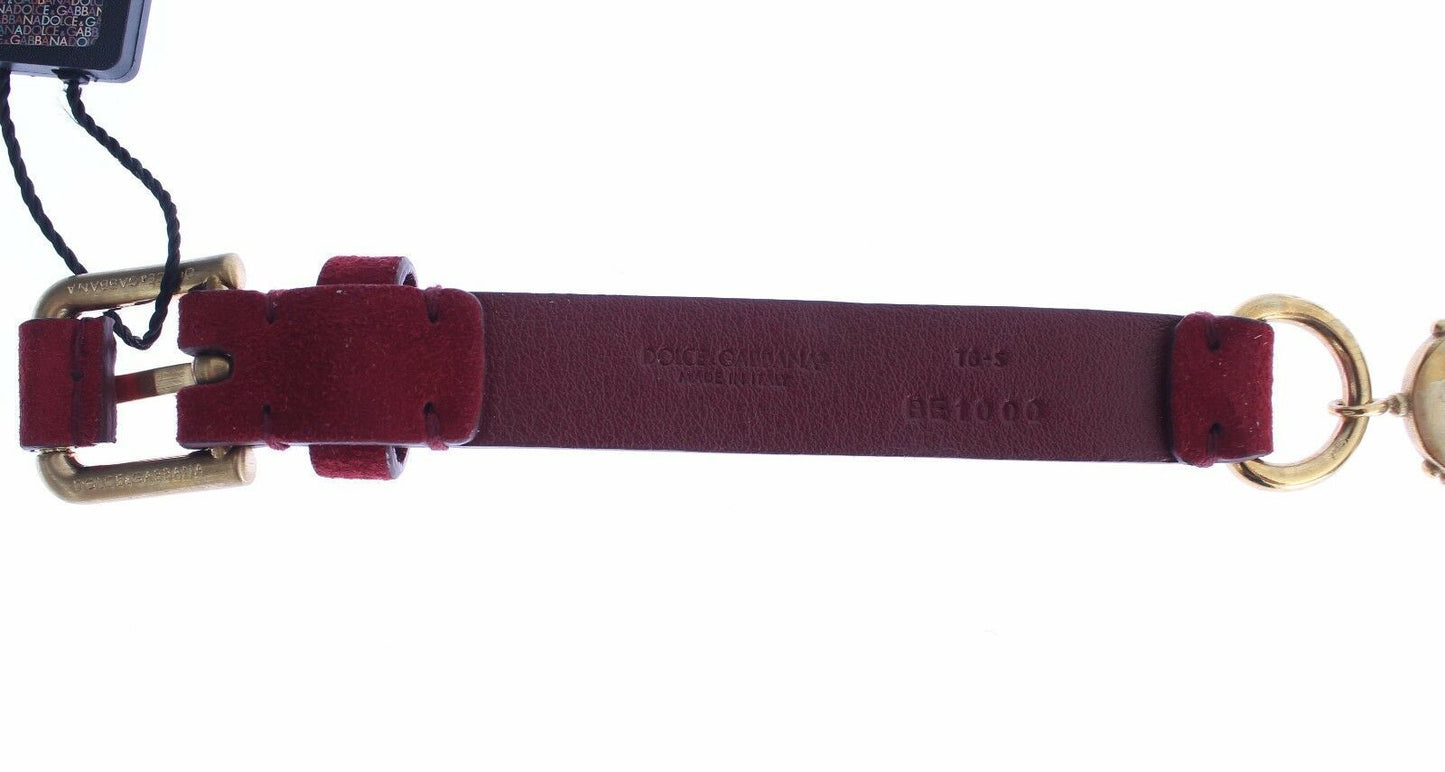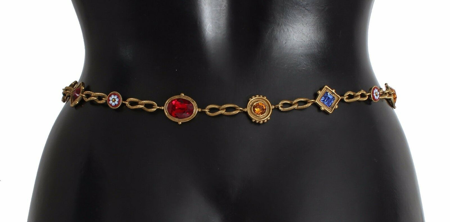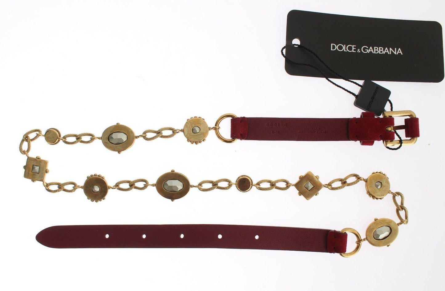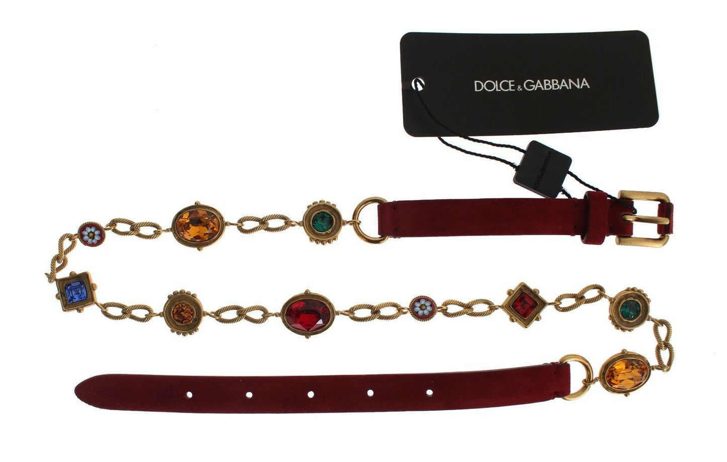 Enhance your wardrobe with the opulence of a Dolce & Gabbana red suede baroque crystal waist belt. This exquisite accessory is brand new with tags, featuring a lustrous blend of multicolor crystals, gold metal detailing, and the revered buckle closure. Each piece is a testament to the luxury and craftsmanship synonymous with the Dolce & Gabbana brand, proudly made in Italy.