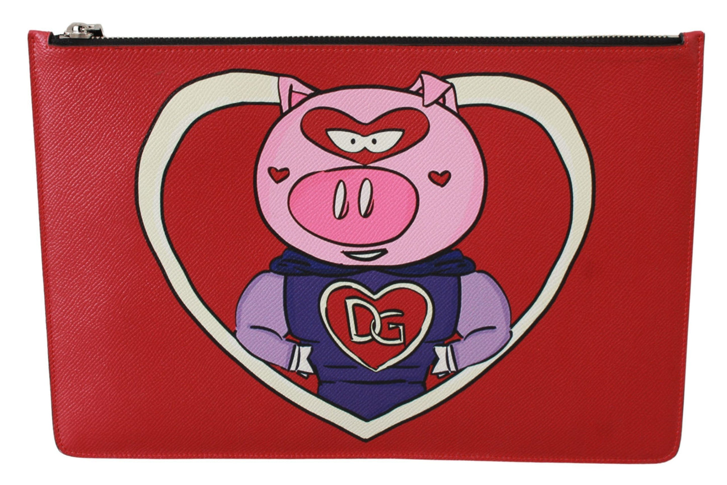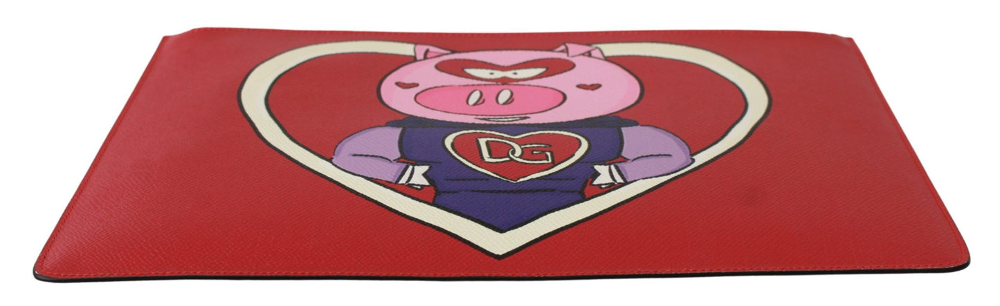 Exude sophistication with this striking Dolce & Gabbana document bag, crafted from premium 100% leather and showcasing a unique Red Pig Love Print. Ideal for the fashion-forward individual, this accessory ensures a bold style statement while keeping your essentials secure with its reliable zipper closure. Indulge in Italian luxury and flaunt your taste with this exquisite piece, perfect for elevating any ensemble.