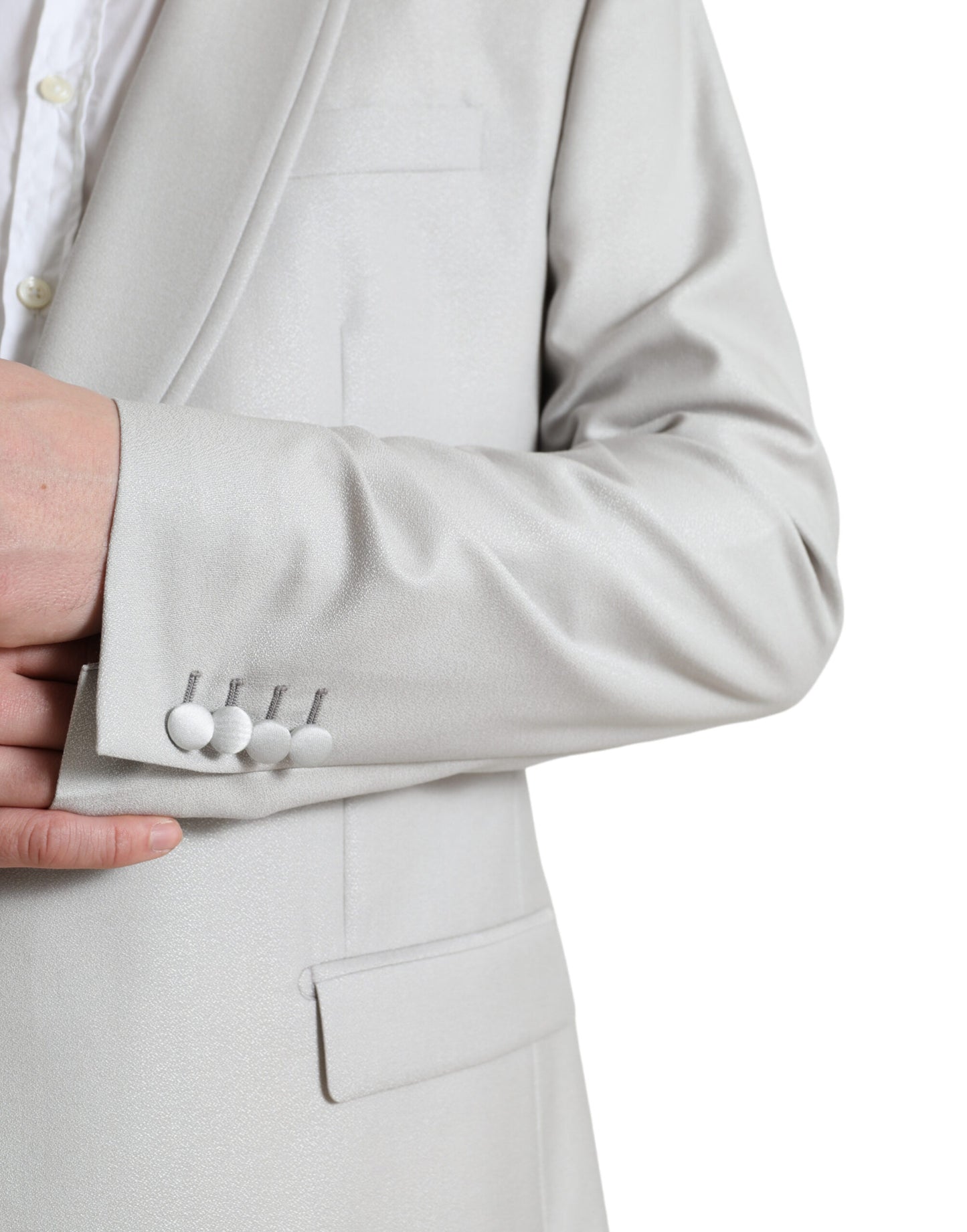 Silver Wool Silk 2 Piece Slim Fit Suit
