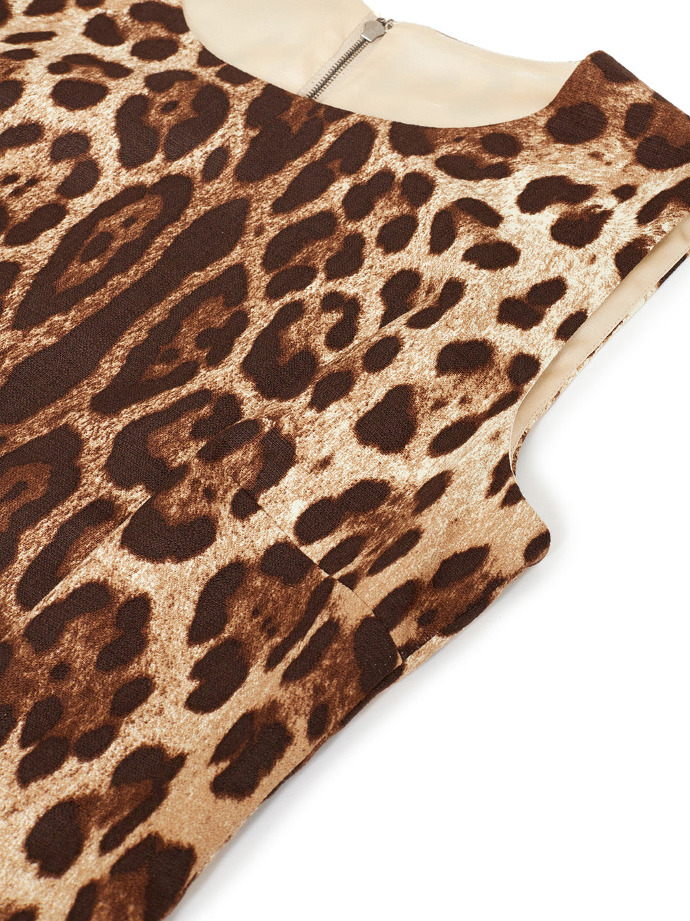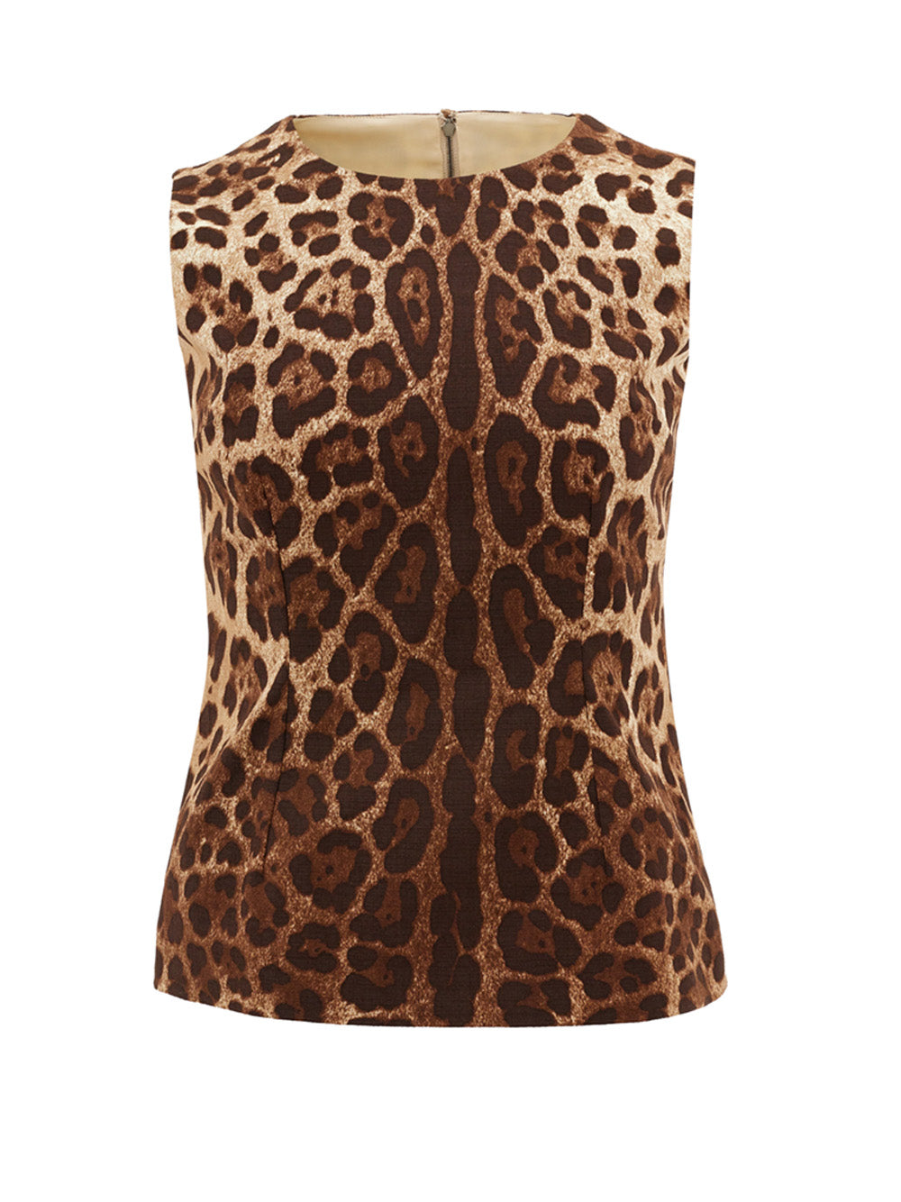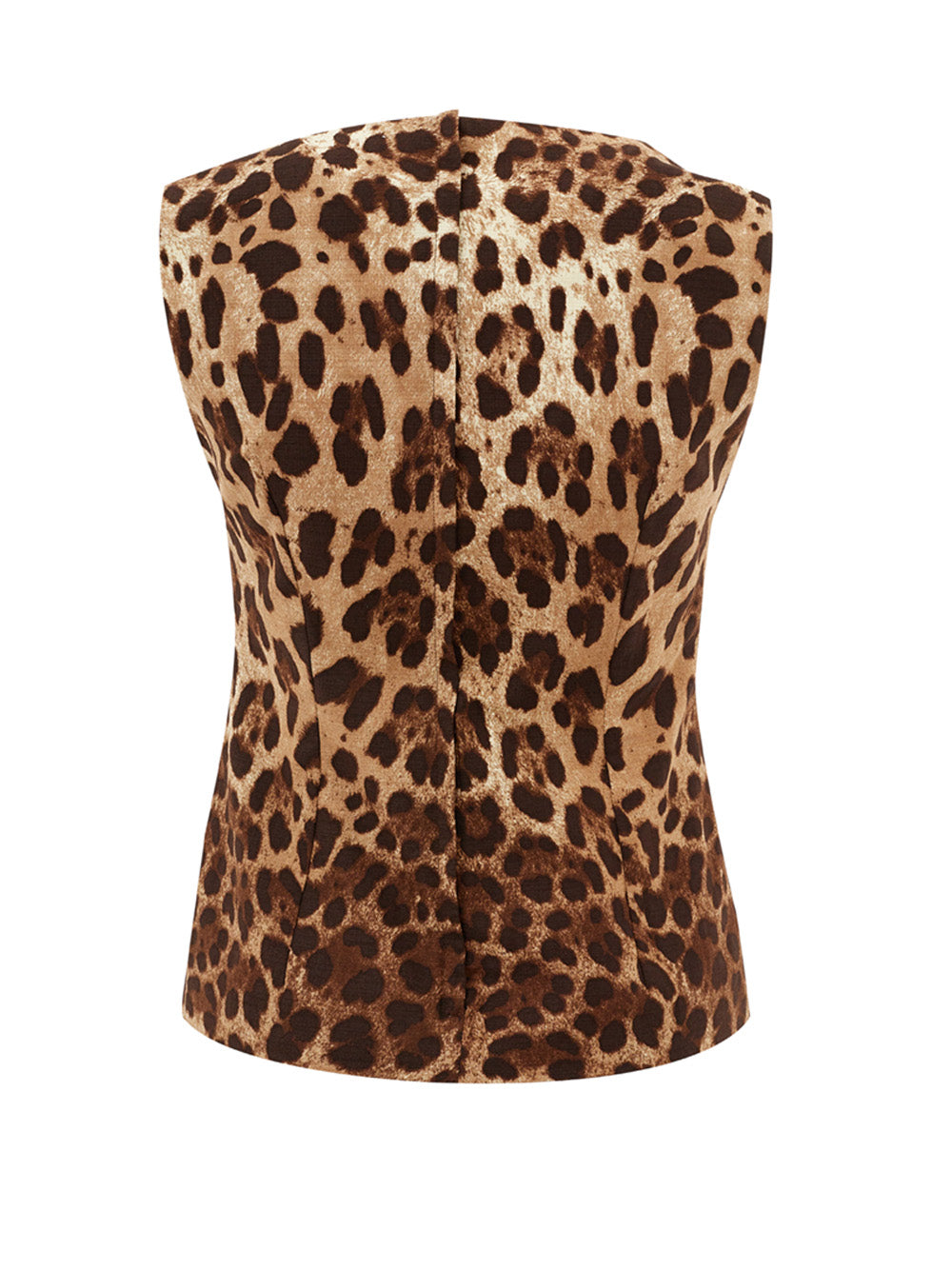 Step out in prestige with this gorgeous, brand new sleeveless leopard print jacket by Dolce & Gabbana. Featuring a classic round neck and a secure back zipper closure, this regular fit piece embodies sophistication and a flair for the dramatic. Perfectly crafted in Italy, it’s a luxurious addition to your wardrobe that’s as stylish as it is comfortable.
