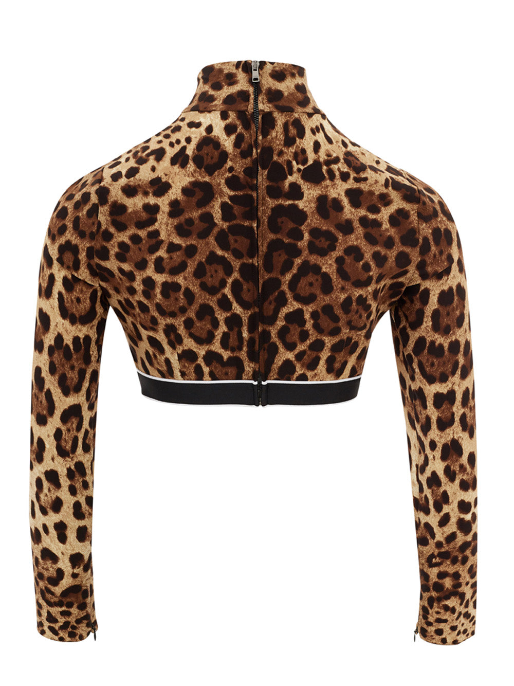 Unleash your inner fashionista with this stunning Leopard Print Silk Top from Dolce & Gabbana. This top is exquisitely crafted, featuring a cozy turtle neck and a cropped design to add a touch of sophistication to your wardrobe. The high-quality silk blend offers a comfortable fit with just the right amount of stretch, while the long sleeves and the logo-adorned elastic band showcase the brand’s attention to detail. Perfect for a stylish day out or a chic evening event, this piece is a testament to Italian craftsmanship.