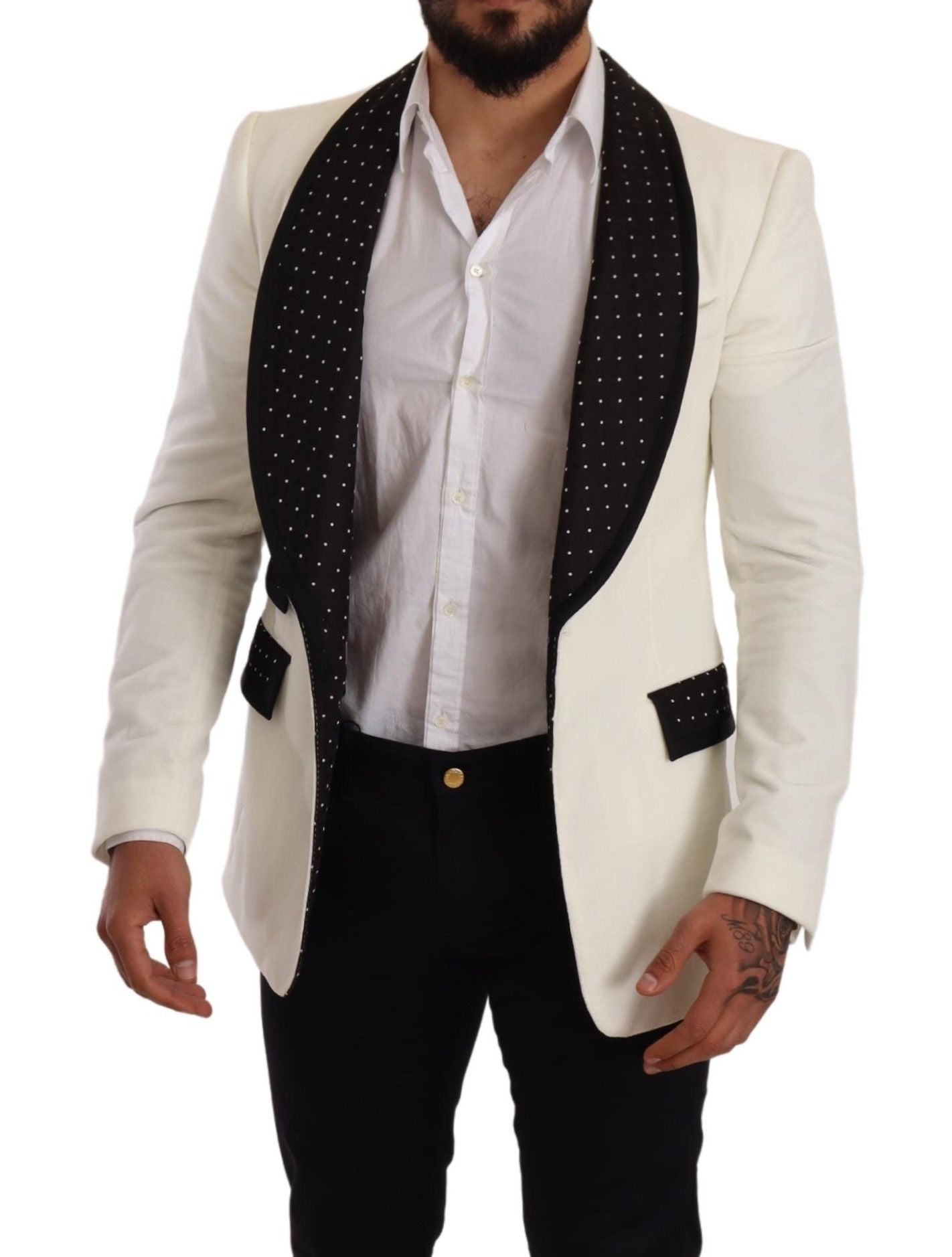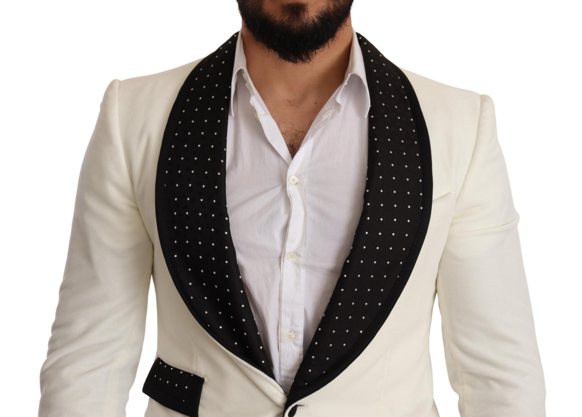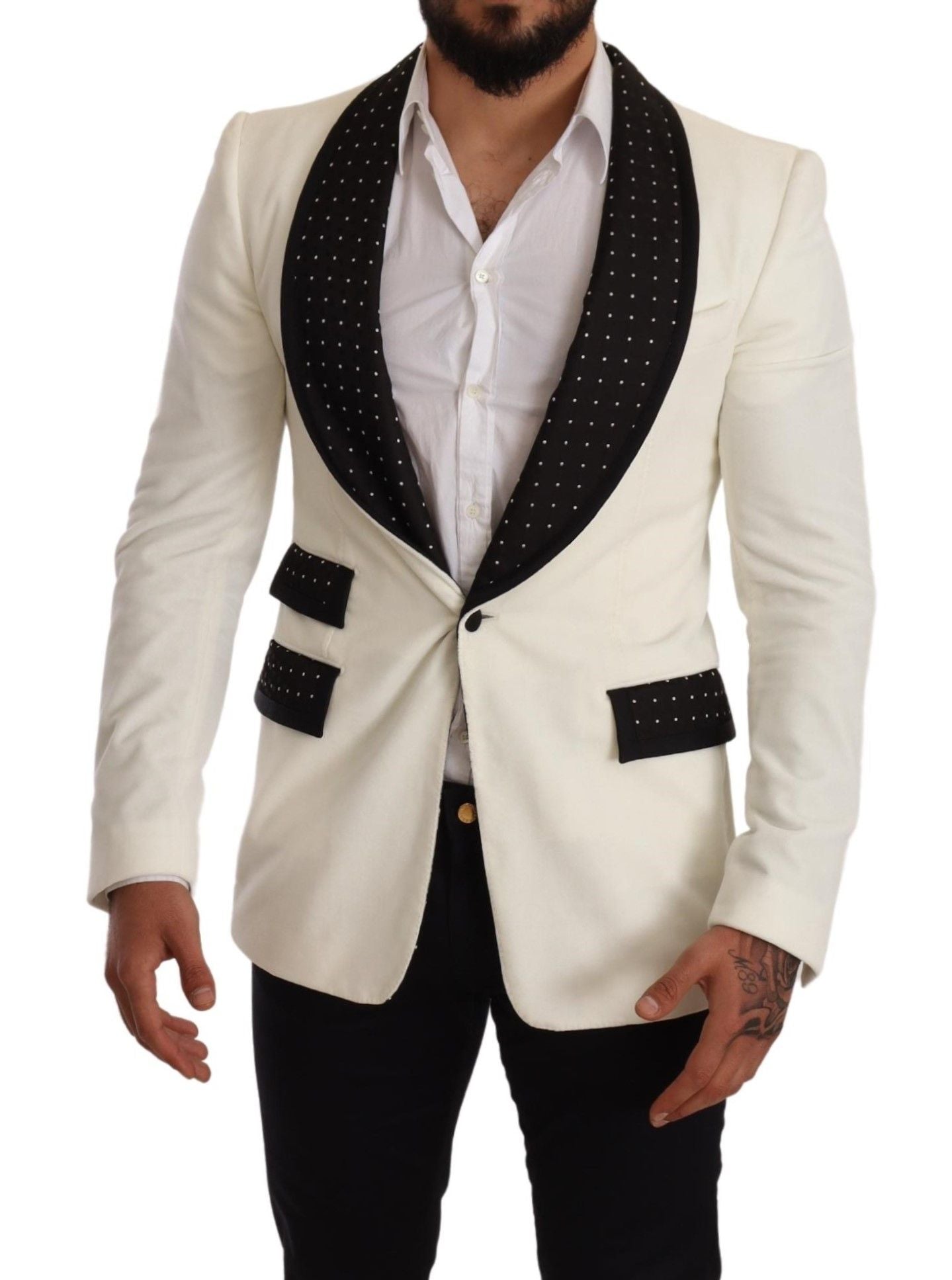 Exude sophistication with this stunning Dolce & Gabbana blazer, perfect for any formal occasion. Crafted with high-quality materials, this slim-fit blazer illustrates luxury with its distinctive dot pattern, shawl lapel style, and meticulous Italian craftsmanship. A must-have for the modern gentleman, this blazer is both timeless and contemporary.
